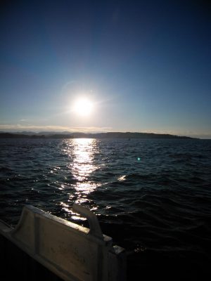 夕暮れ時は、投錨せず流し釣り。意外に流されるのが早く、投錨がよいとのことで、水深37m辺りのポイントへ移動しました。