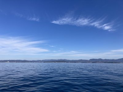 きょうは雨が降り、操船中も鴨居港から出て20km先の印南の光は見えるも40km先の日ノ岬の灯台は見えず、慎重に船を走らせました。