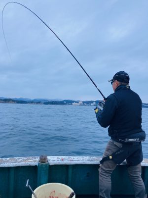 流れもちょくちょく変わり、止まったり緩い下り潮になったり、また止まったりと安定せずでしたが、頑張って釣ってくれました。お疲れさまでした。