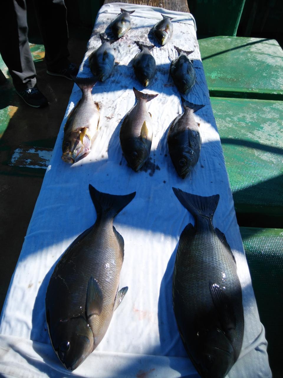 ジャンボ級イサギ、38㎝を頭に8匹、グレ38㎝を頭に2枚、シマアジ10分ぐらいやり取りしたのですがもう少しの所でブチ切られてしまいました。残念でした