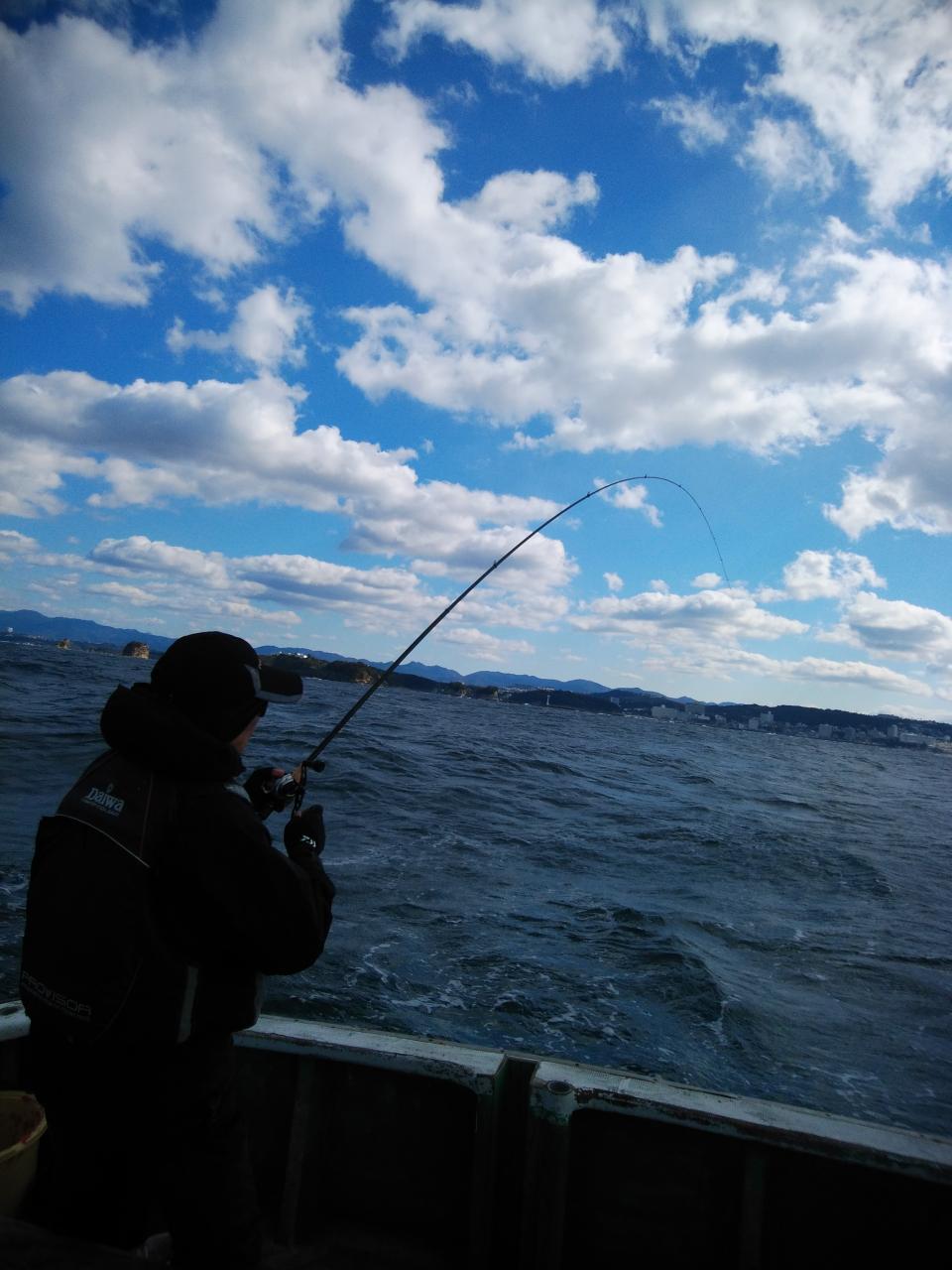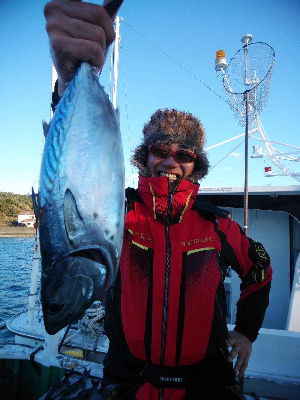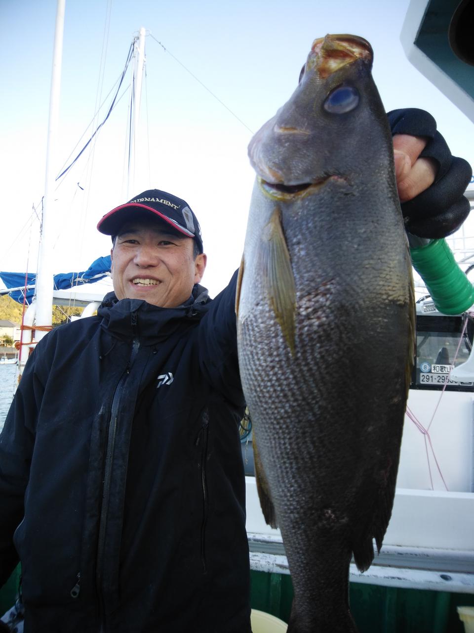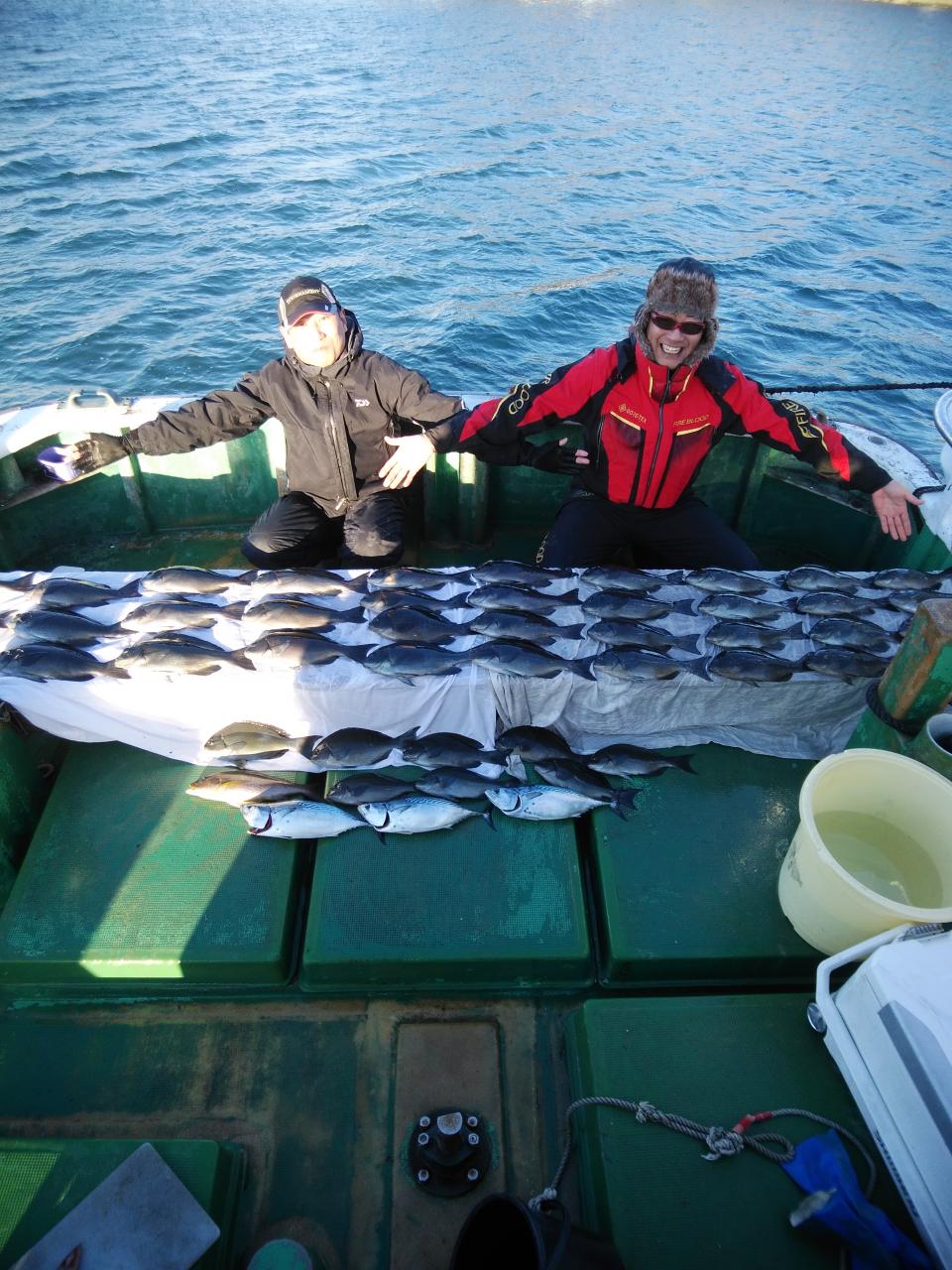 北西の風で下り潮が速すぎるぐらいの速さでしたが、熊取谷先生、小深田先生よく頑張ってくれて寒グレ、43㎝を頭に65枚の大漁、大釣りで、お昼には、先生方ガスコンロ使ってラーメンを美味しく頂いていました。