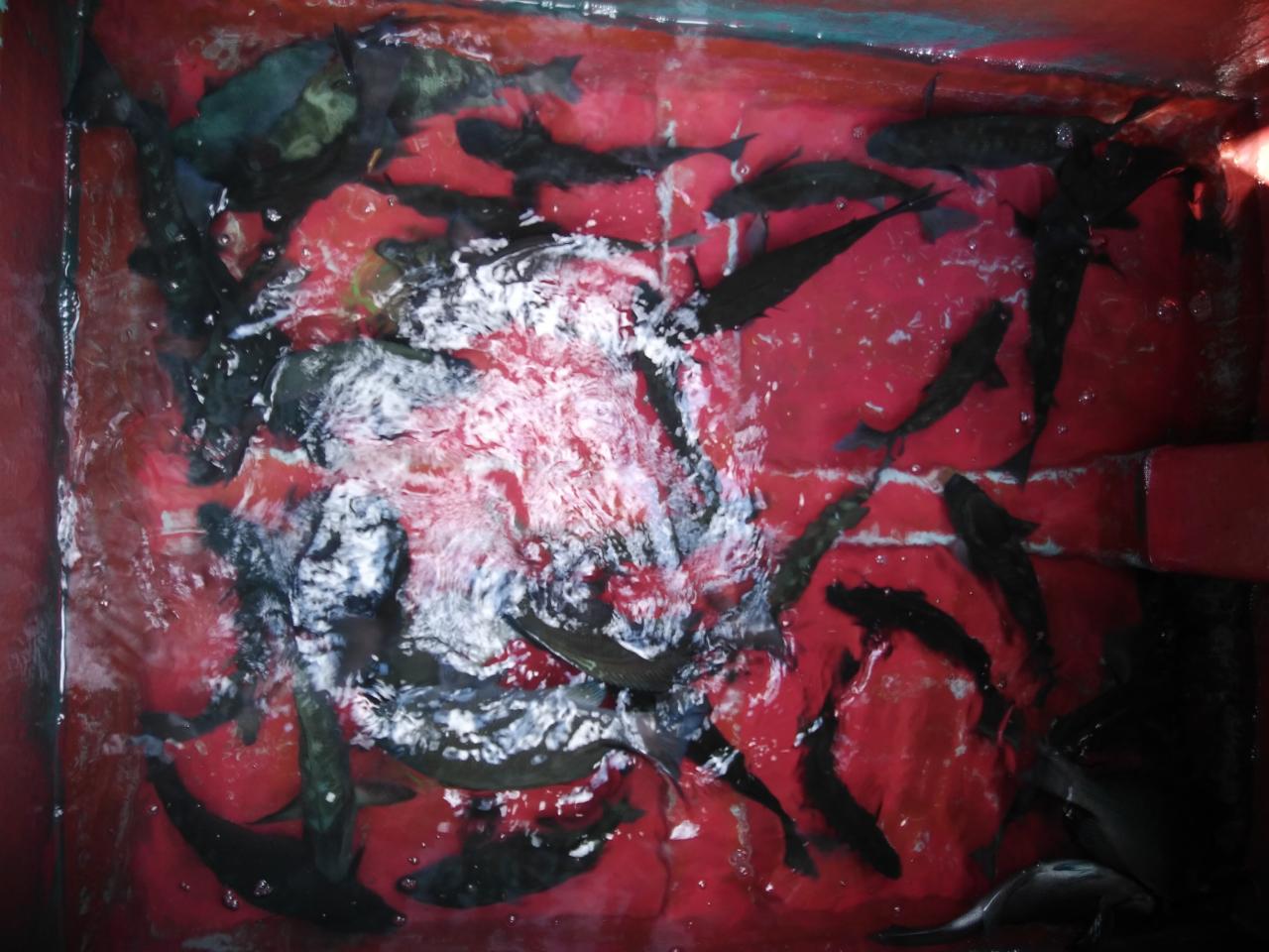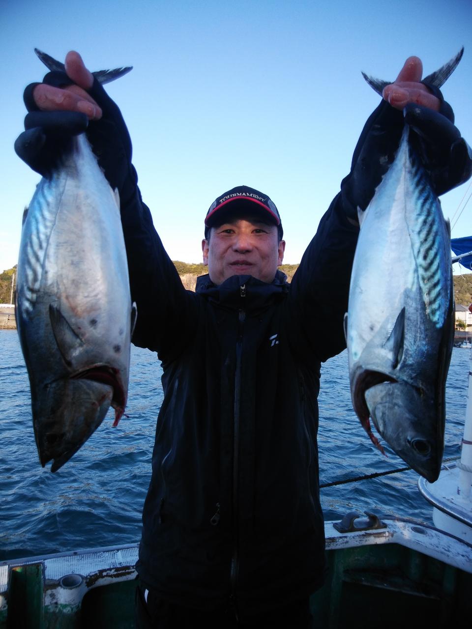 後にヤイトガツオ、48㎝を頭に3本とジャンボイサギ、40㎝交じり生簀の中はいっぱいになって来たので早帰りして港で、料理して帰られました。