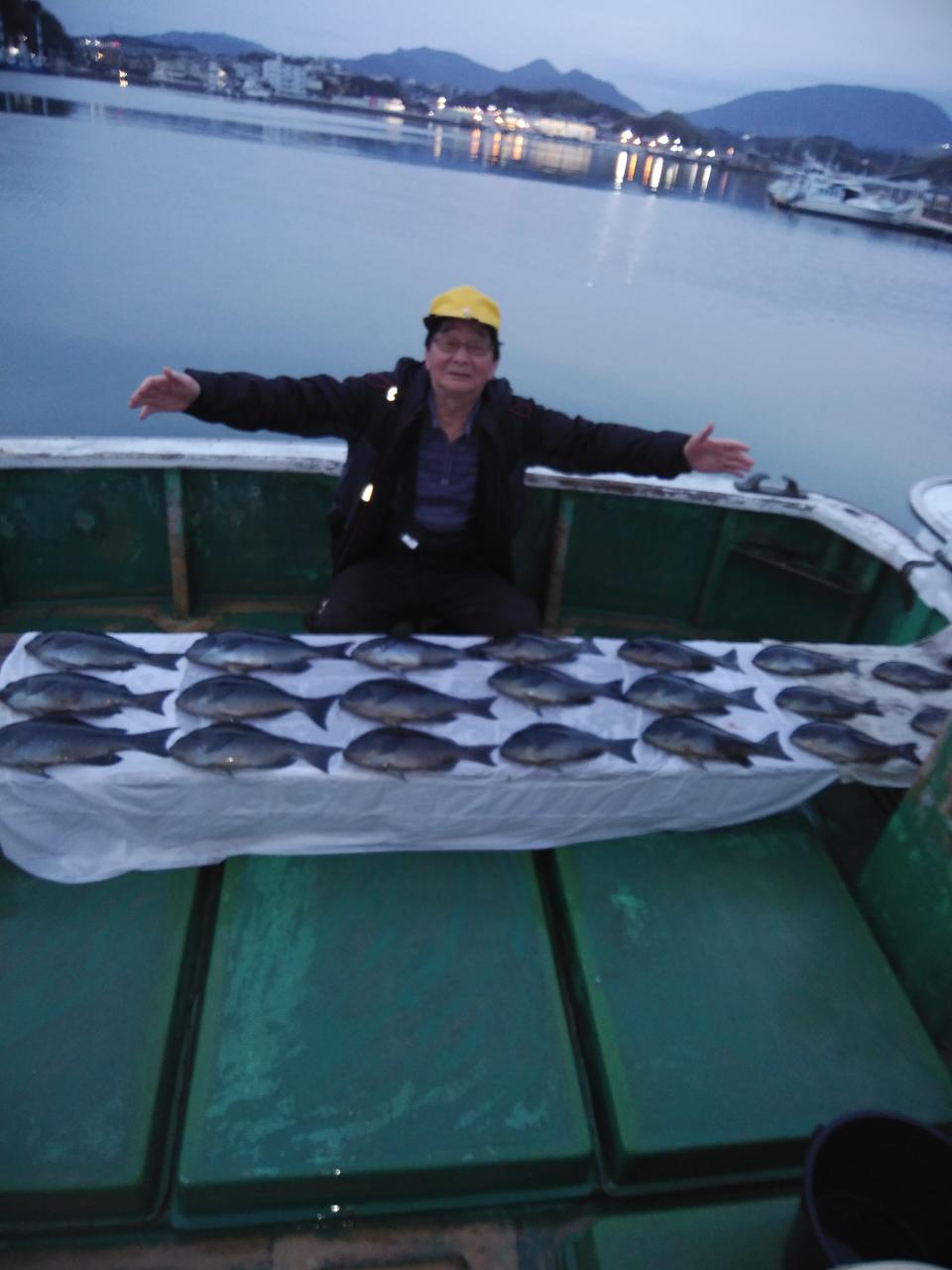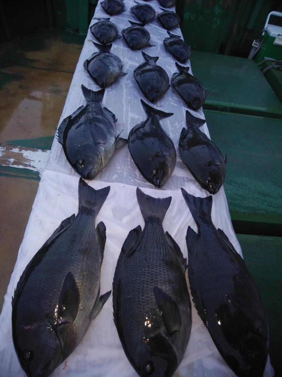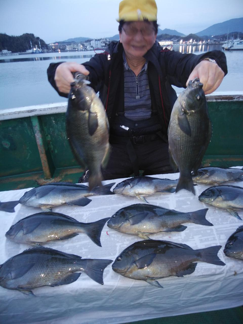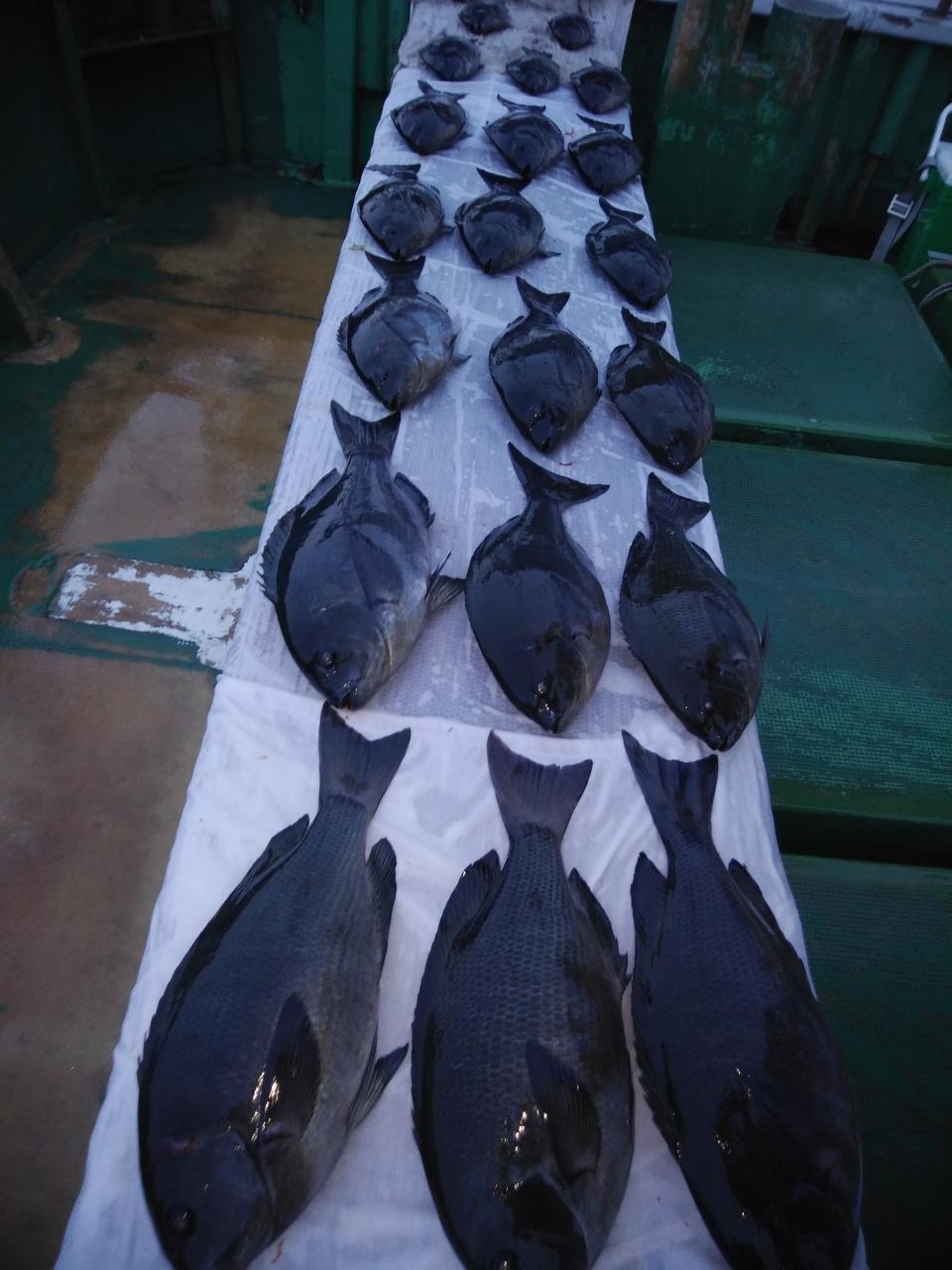 南の風で上り潮でした。沖出しの潮にも変化しましたが堀様らよく頑張ってくれて寒グレ、39㎝を頭に20枚の大釣りで『この潮で、20枚釣れたのは嬉しい。。。』と大変喜んでくれて良かったです。