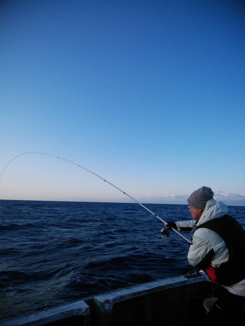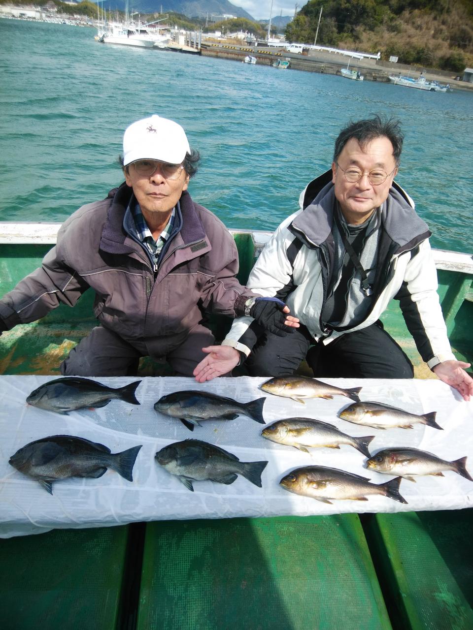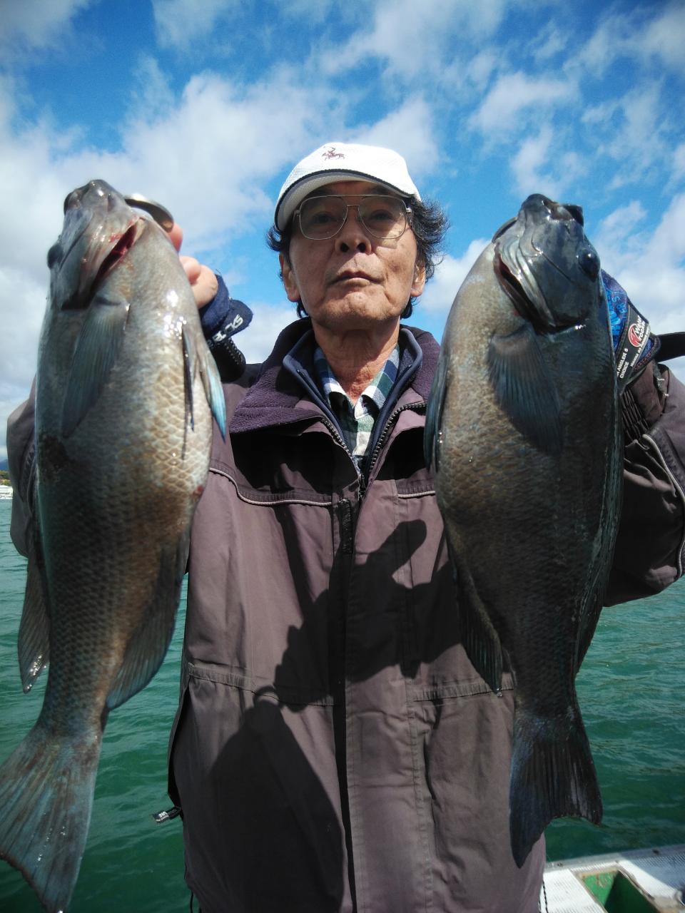 朝1番、北西の風で、上り潮でした。風と潮とが反対で釣りづらかったのですが、堀内様ら良型イサギ、バタバタと5匹釣ってくれました。後に潮が止まり喰い渋りが続きましたが後に下り潮に変わってよく変化しました。針外れやブチ切られも数回ありました。風と潮とが同調すれば今後楽しみです。ありがとうございました。またよろしくお願いします