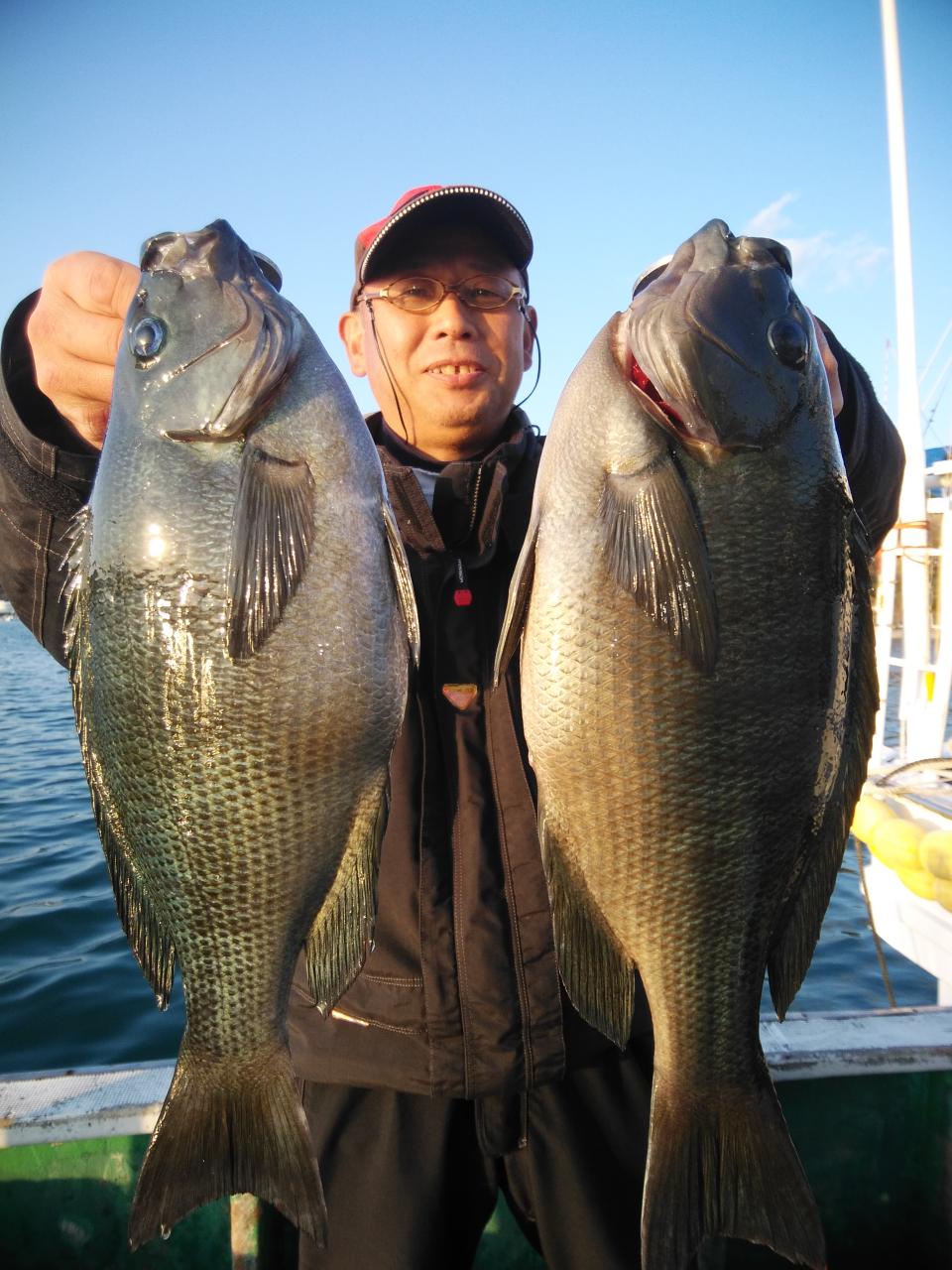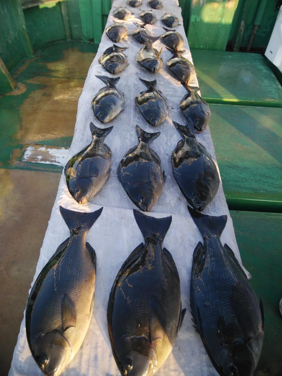 田岡様、寒グレ39㎝を頭に20枚釣ってくれました。船長も片手間に同型寒グレ、10枚と2人で30枚釣れました