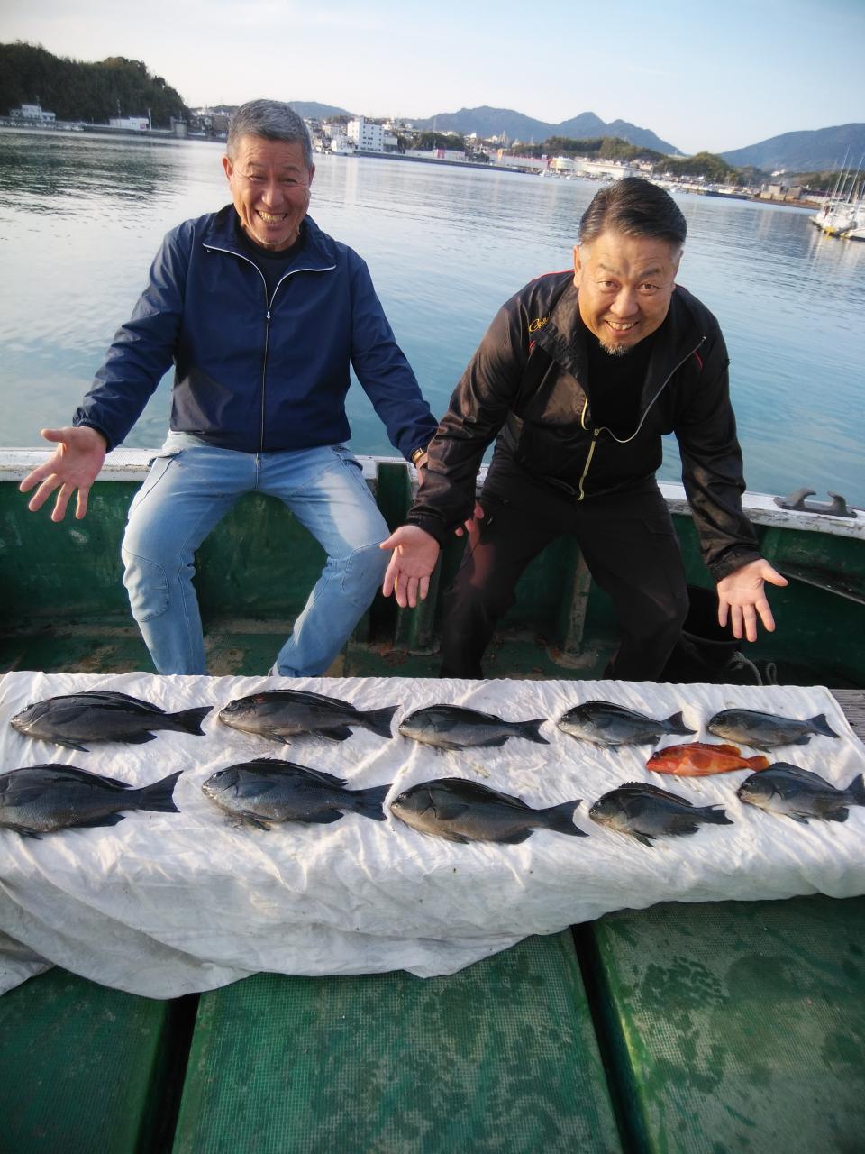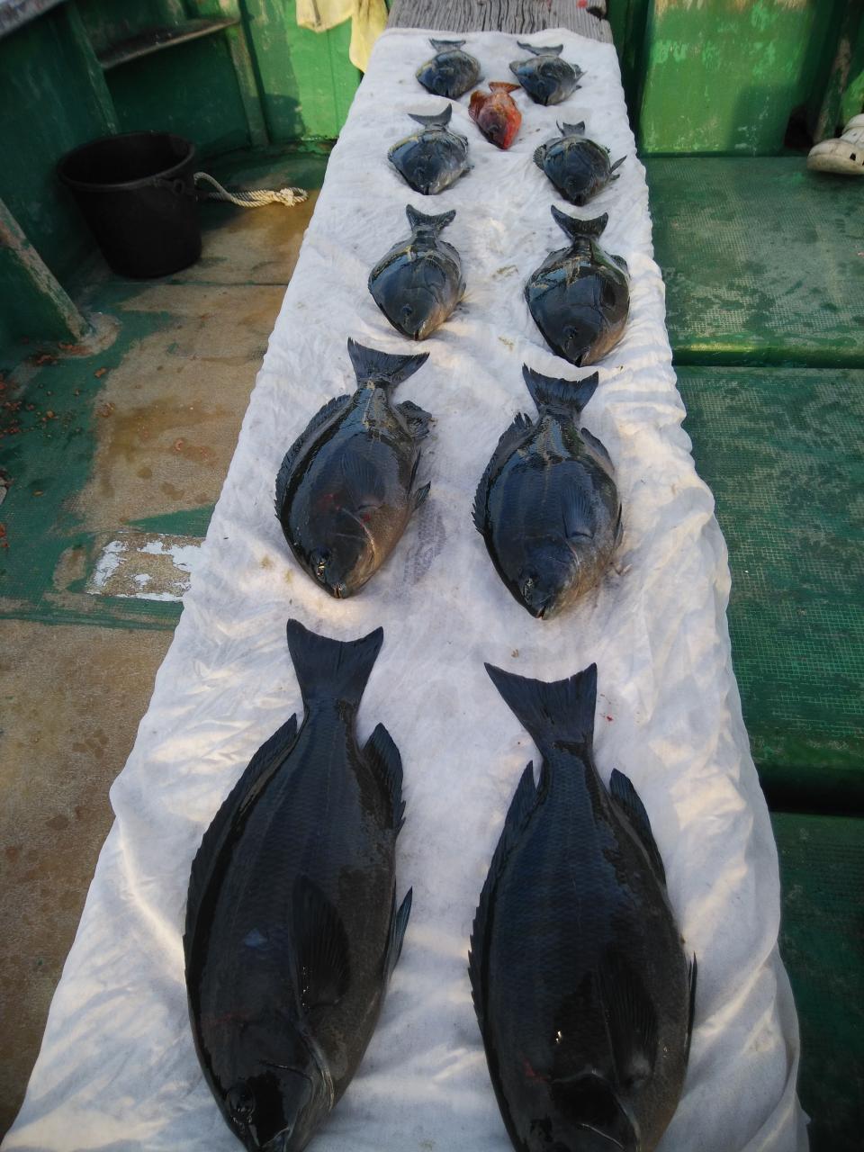 南西の風で、上り潮でした。上り潮がだんだん速くなって来て水温も20度まで上昇しましたが平床様らよく頑張ってくれて川のように速い上り潮で寒グレ、36㎝を頭に10枚釣ってくれてよかったです。『下り潮だったらだいぶ釣れるのになあ...』と喜んでくれて良かったです。