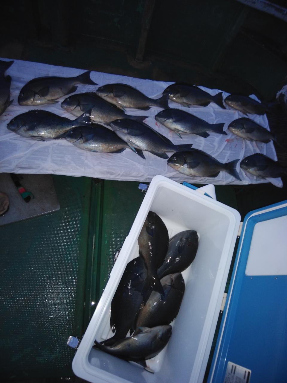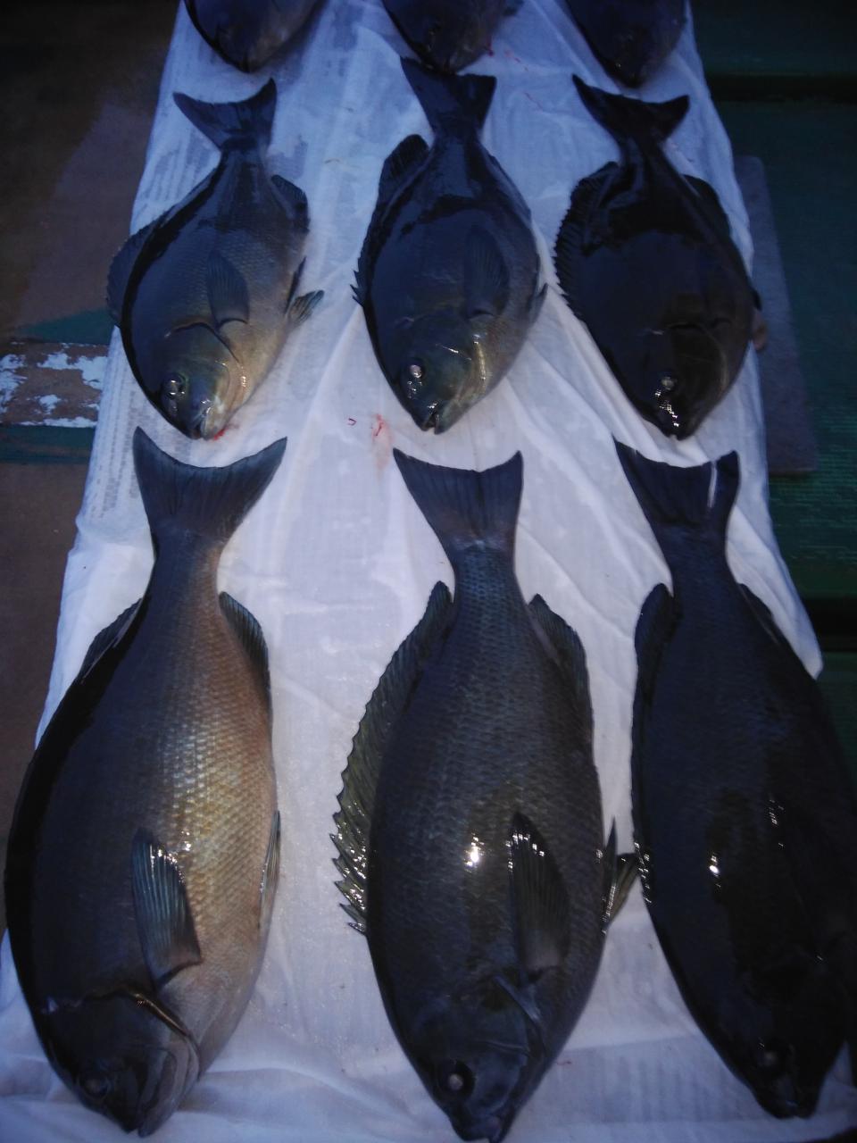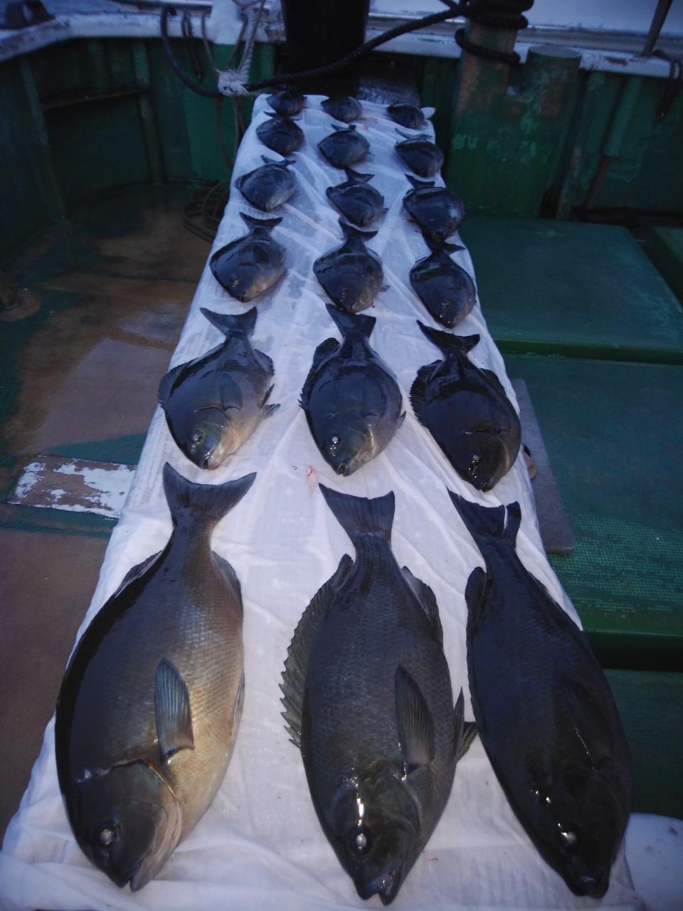 白松様親子よく頑張ってくれて寒グレ、39㎝を頭に18枚とよく釣ってくれて良かったです。寒グレ、39㎝白子出していました。これから楽しみです。