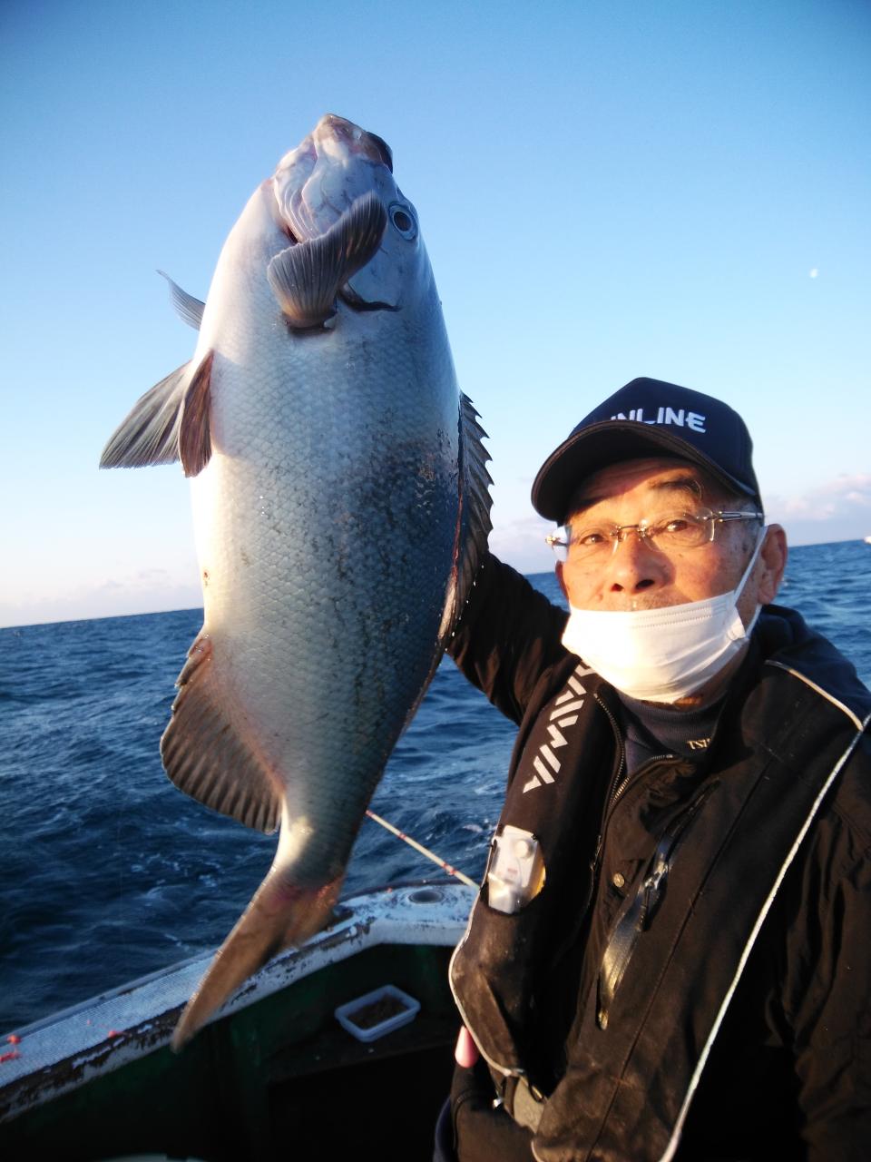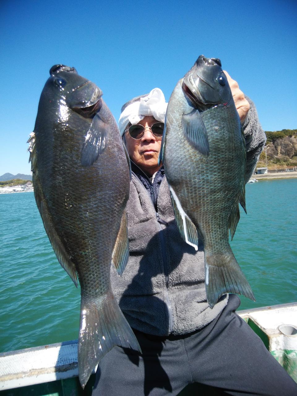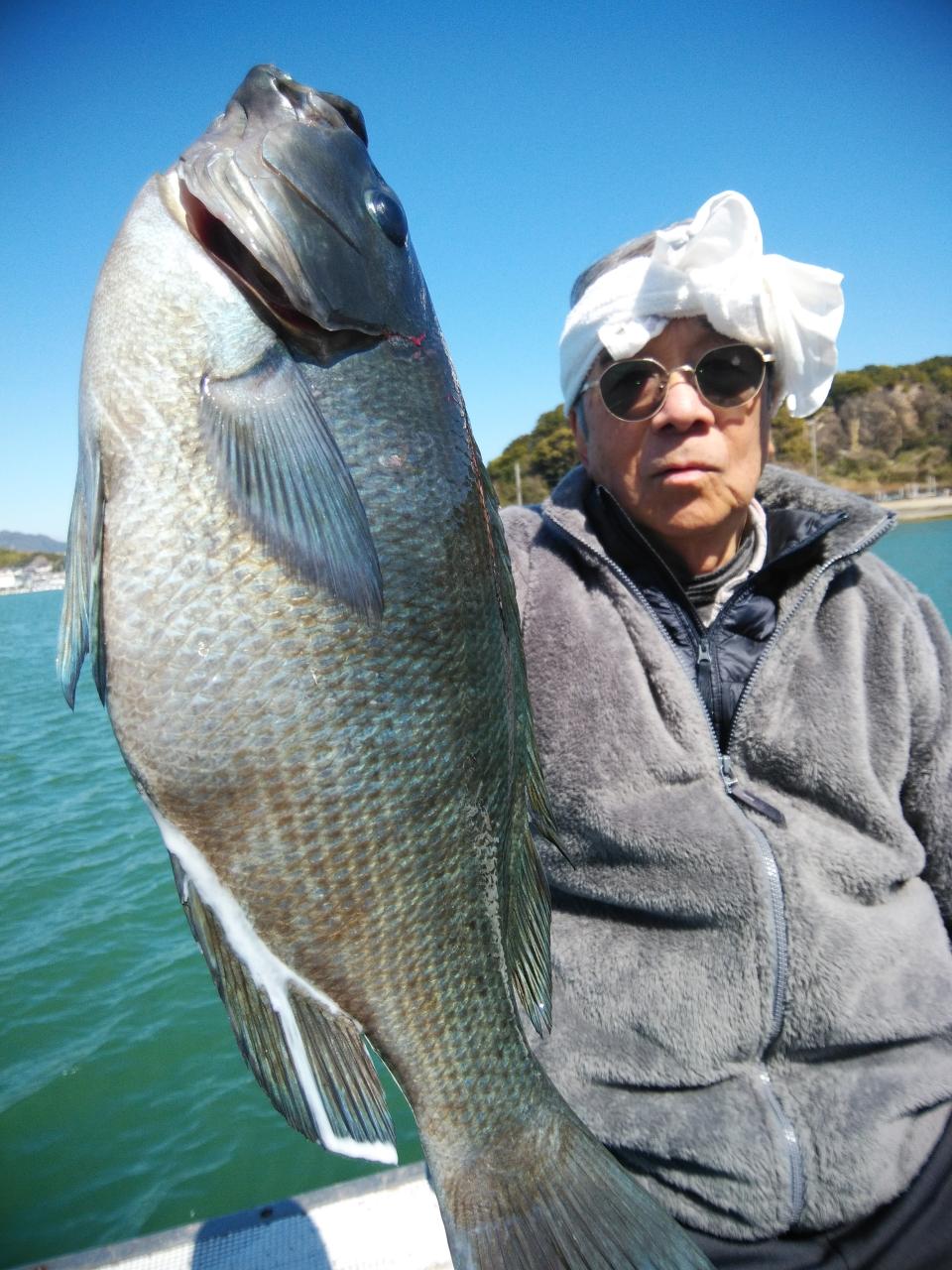 北西の風で、下り潮でした。風と潮とが同調していて田中様、石丸様、42㎝頭に27枚釣ってくれて良かったです。寒グレ、白子パンパンで吹き出していました。
