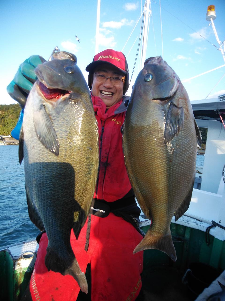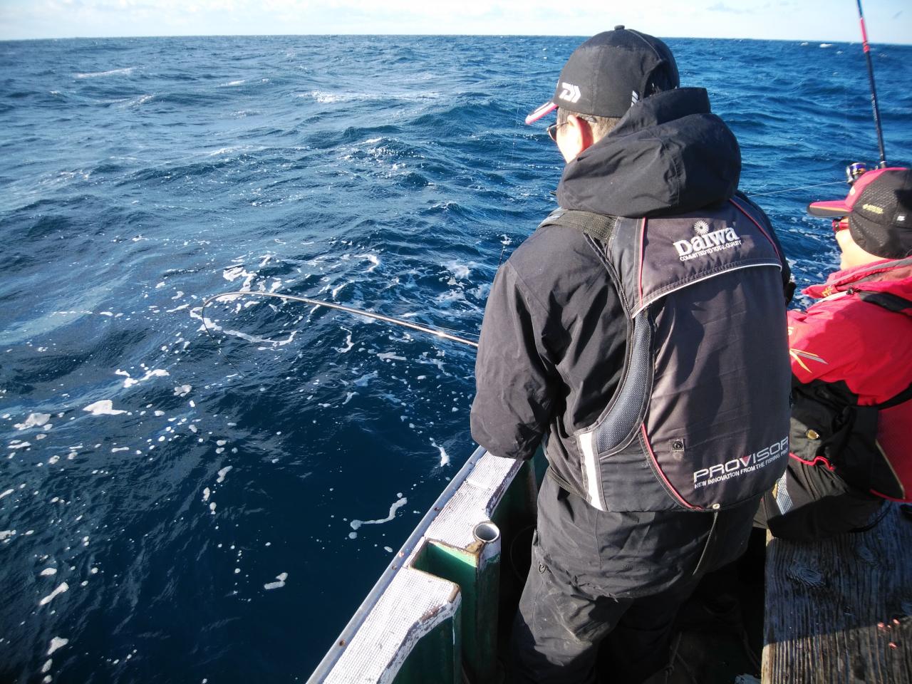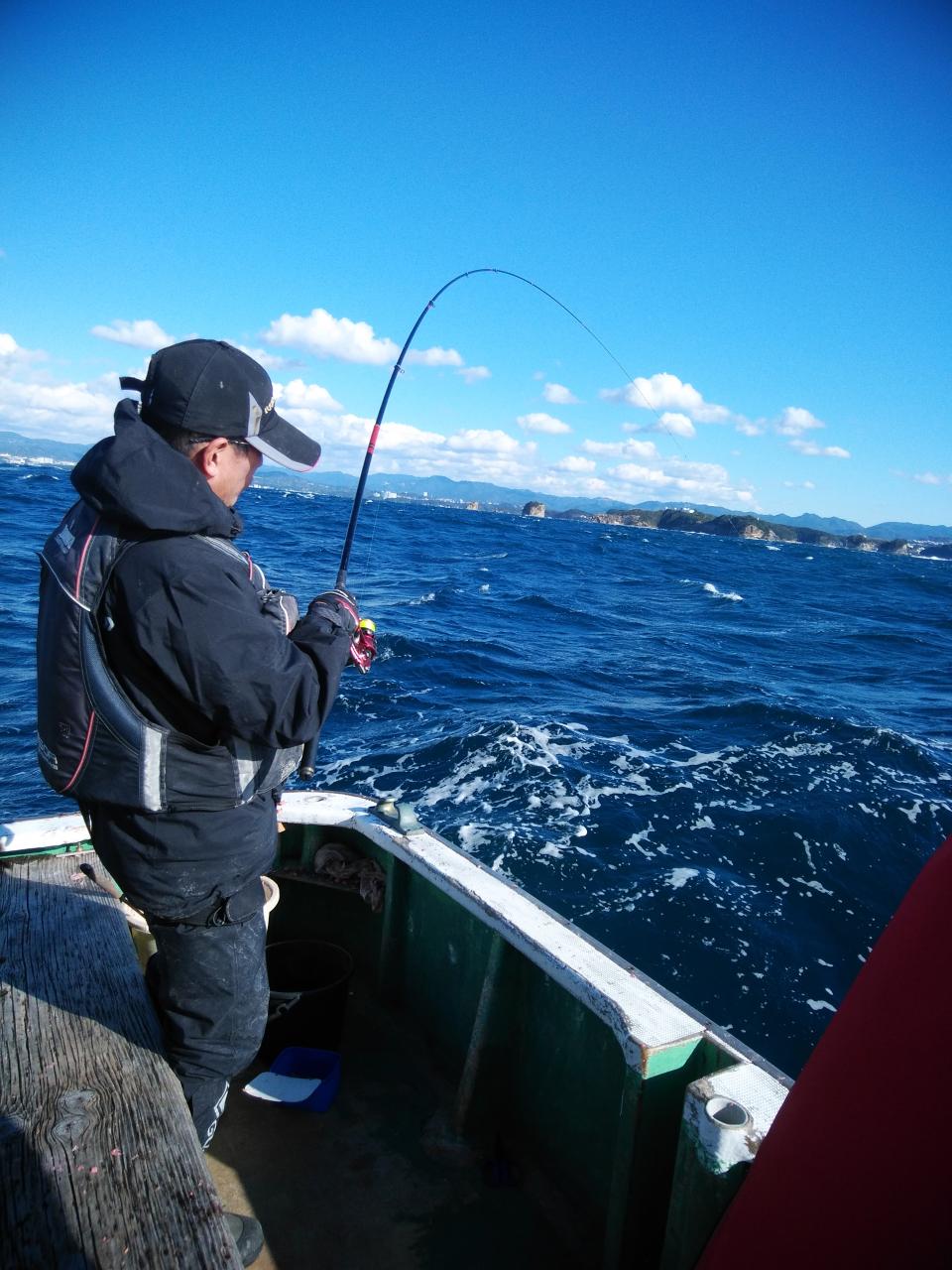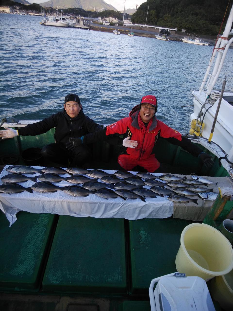 北西の風で、下り潮でした。風と潮とがマッチしていて喰いが活発で先生方良く釣ってくれました。『良く釣れた』と早上がりして港で料理して帰られました。