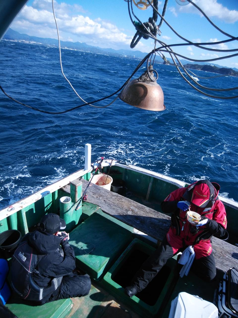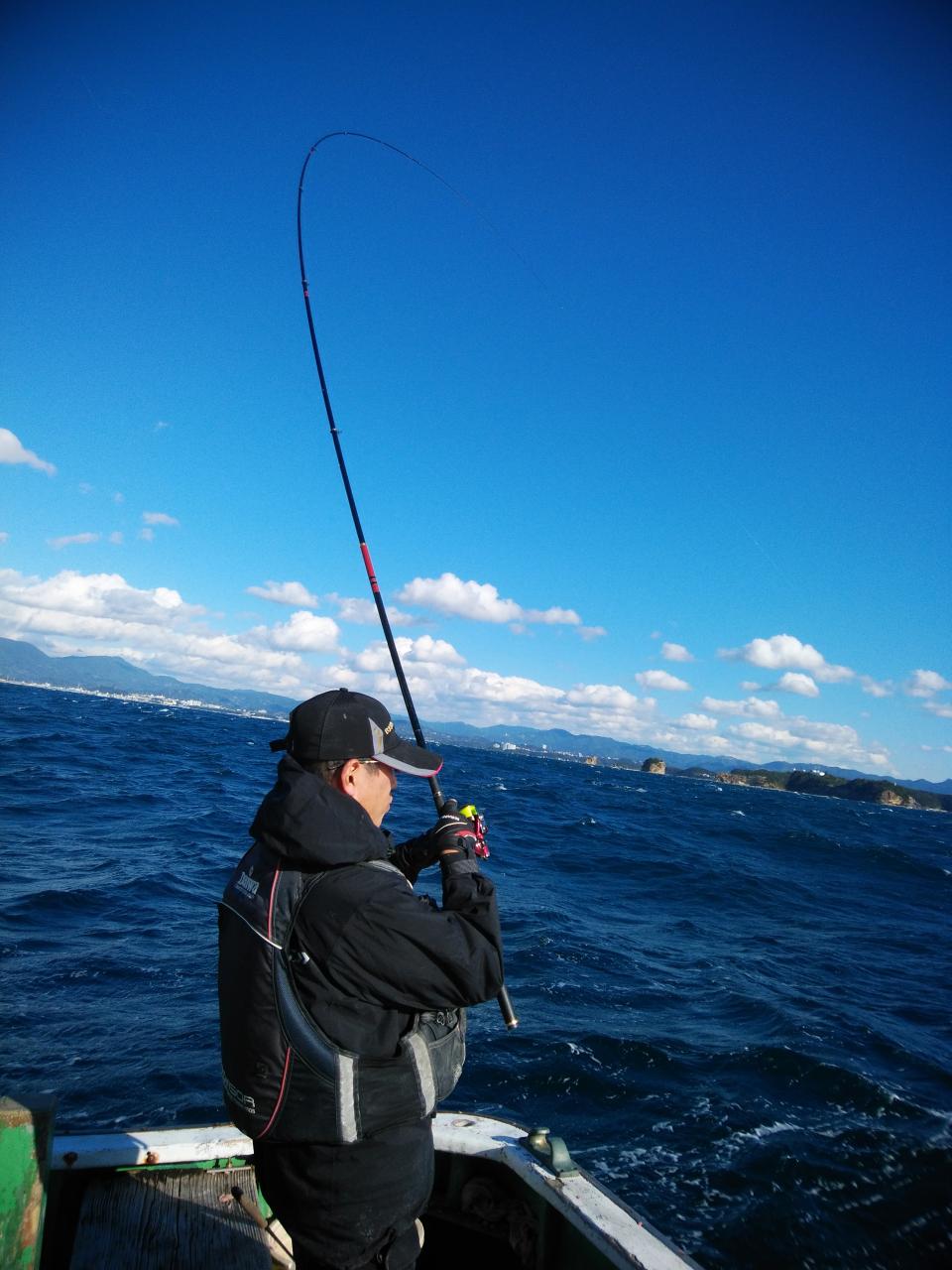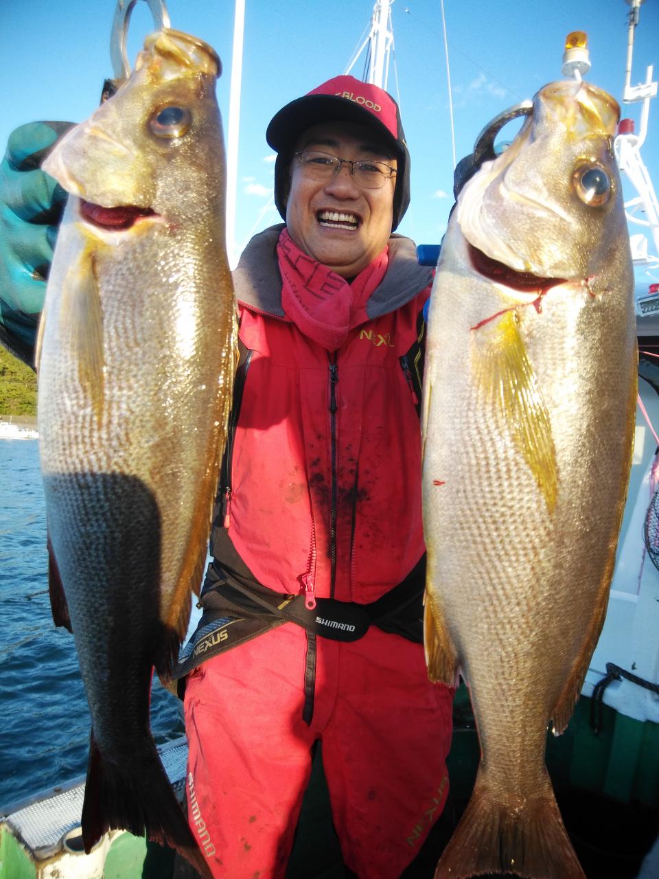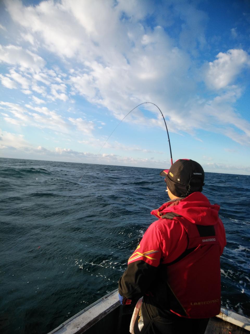 北西の風で、下り潮でした。風と潮とがマッチしていて喰いが活発で先生方良く釣ってくれました。『良く釣れた』と早上がりして港で料理して帰られました。