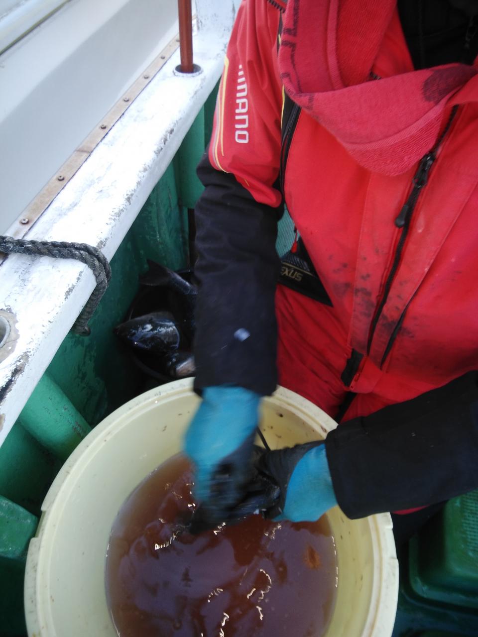 磯釣りスタイルの船からのフカセ釣り。