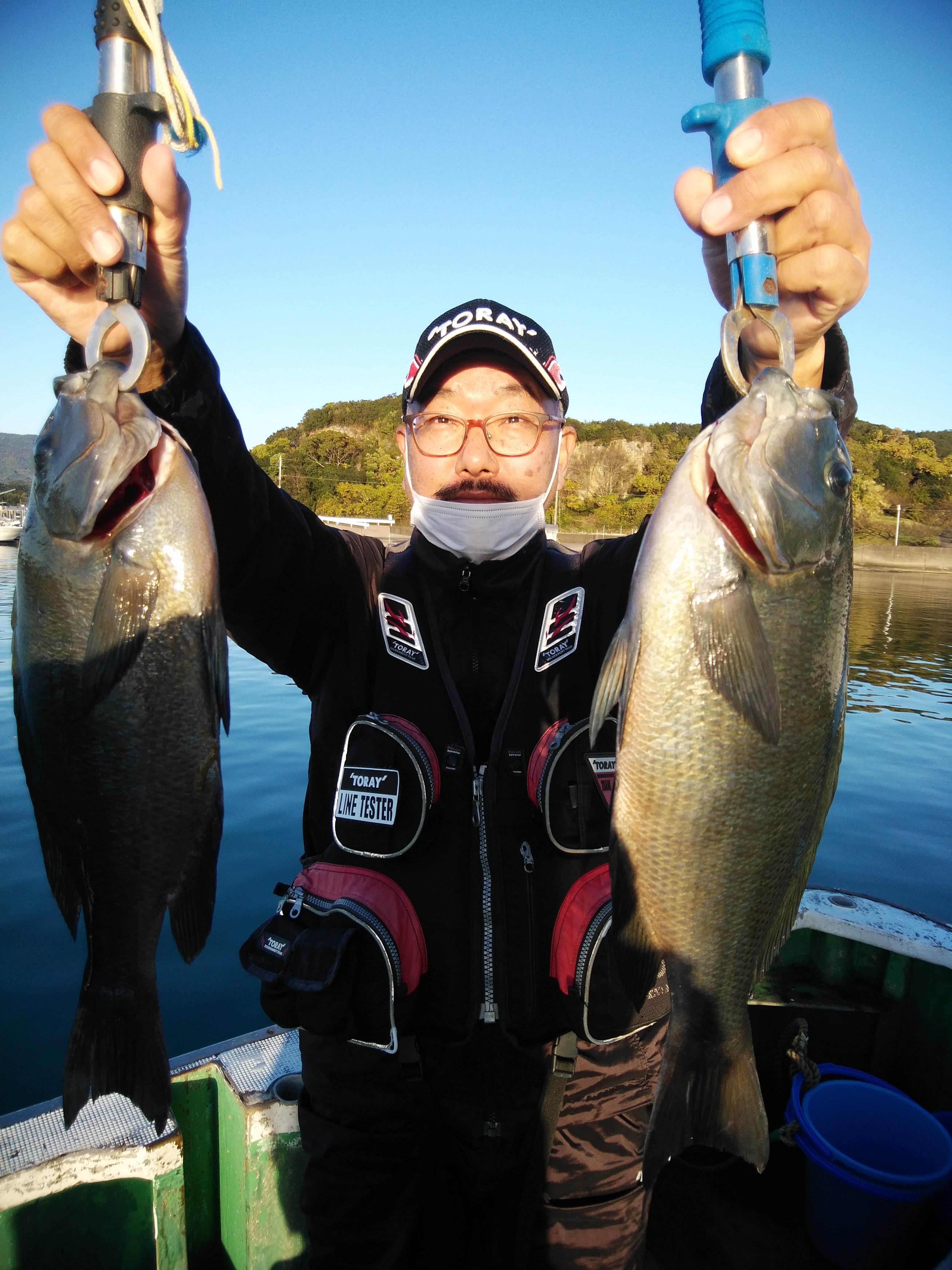 北西の風で、岡入れの下り気の潮でした。喰いが活発で松塚様ご夫婦よく頑張ってくれて大型グレ、40cm~42cm、8枚、合計29枚と大釣りで大変喜んでくれてよかったです。ありがとうございました。またお願いします。