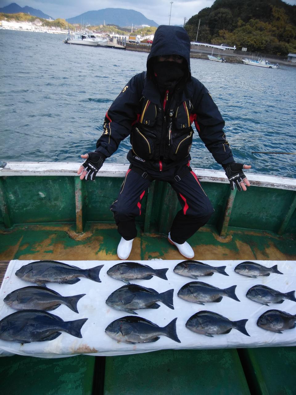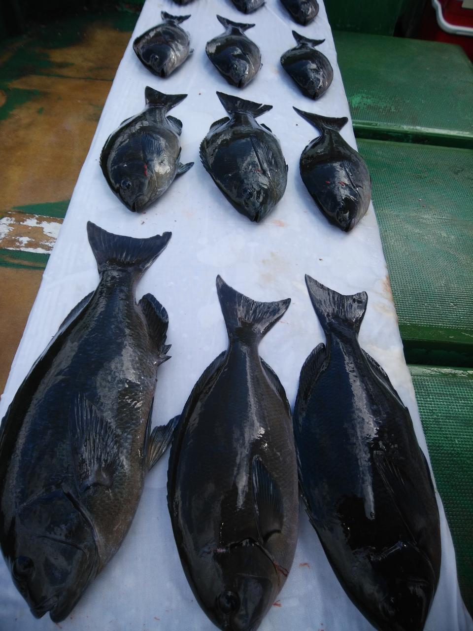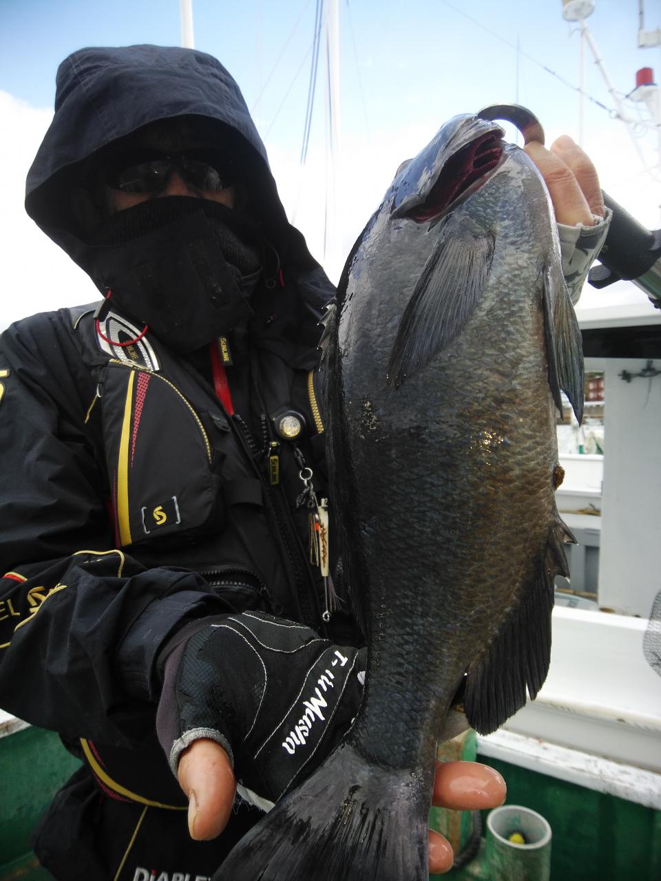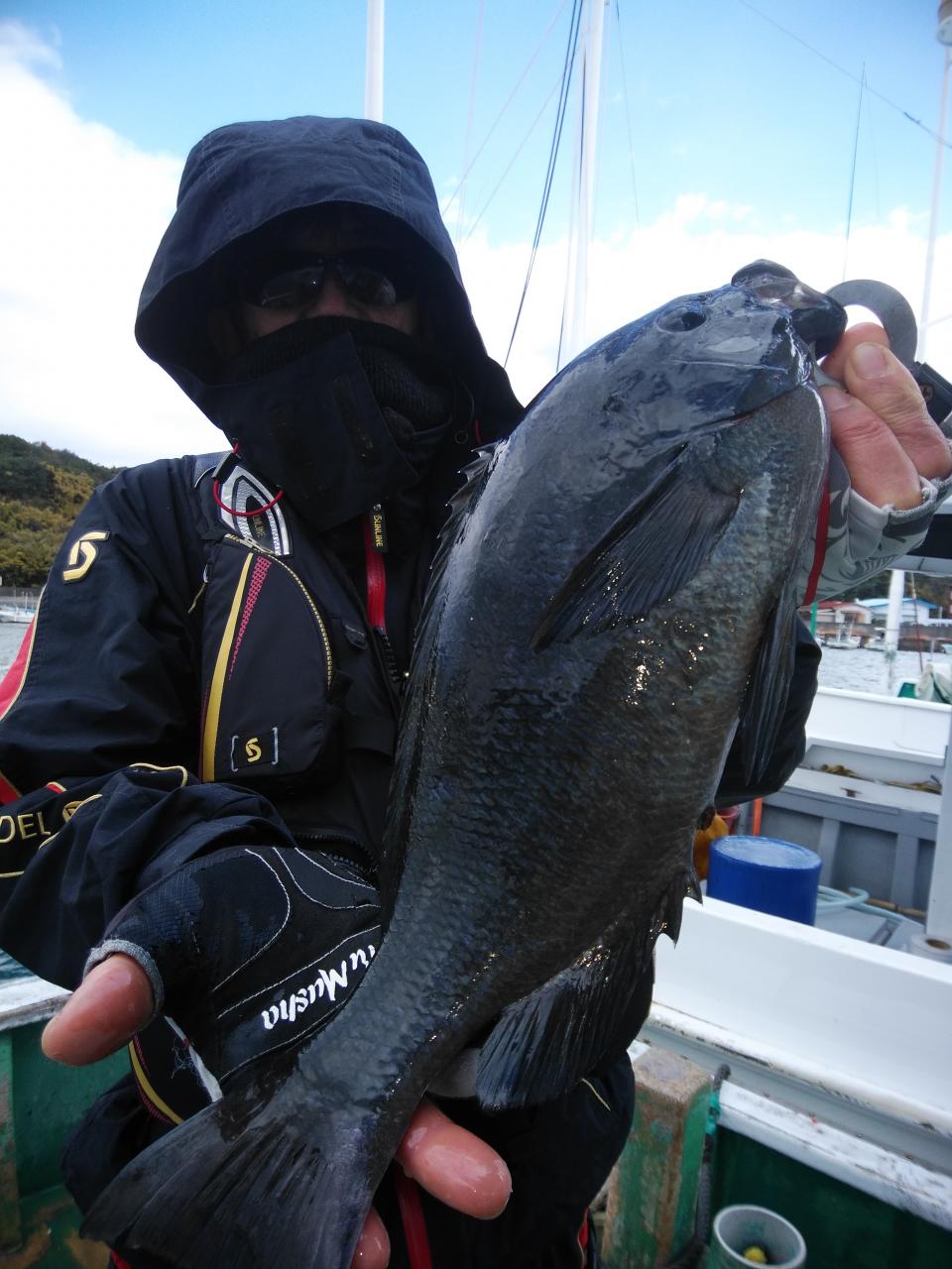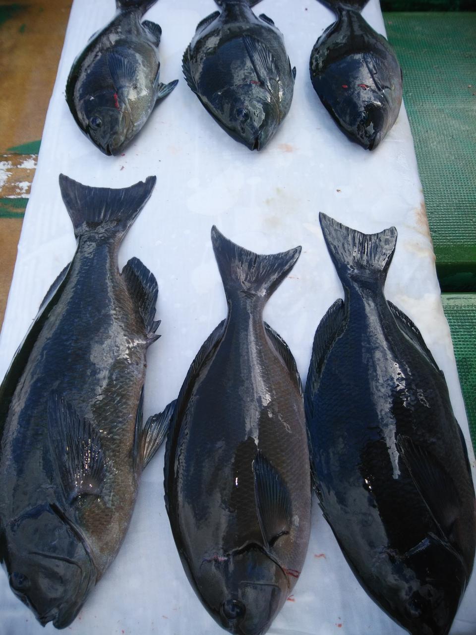 北西の風で、下り潮でした。最初は喰いが渋りましたが、後半喰いが立って来て最長43㎝の口太グレが釣れました