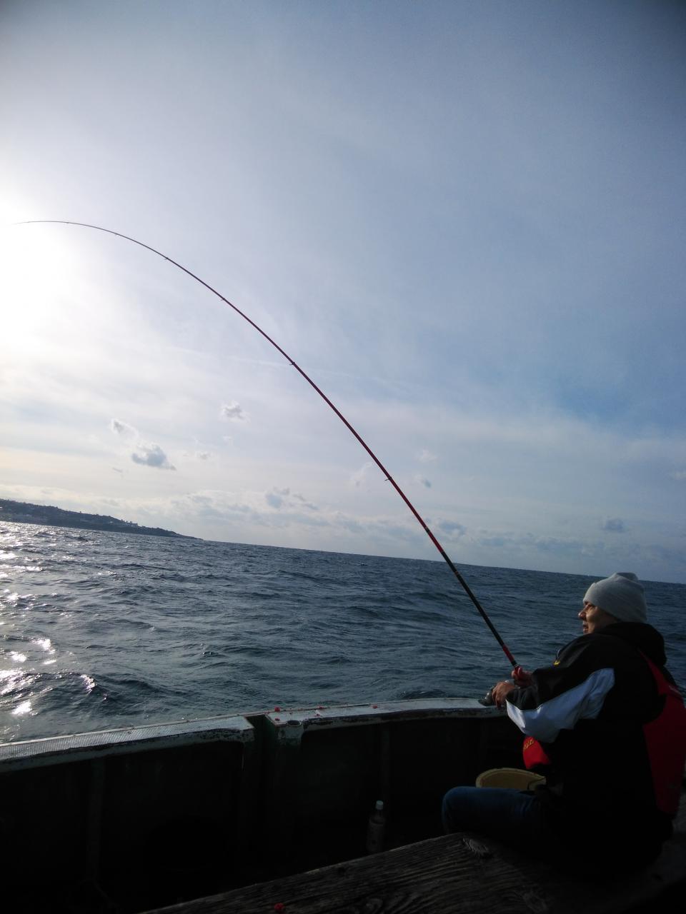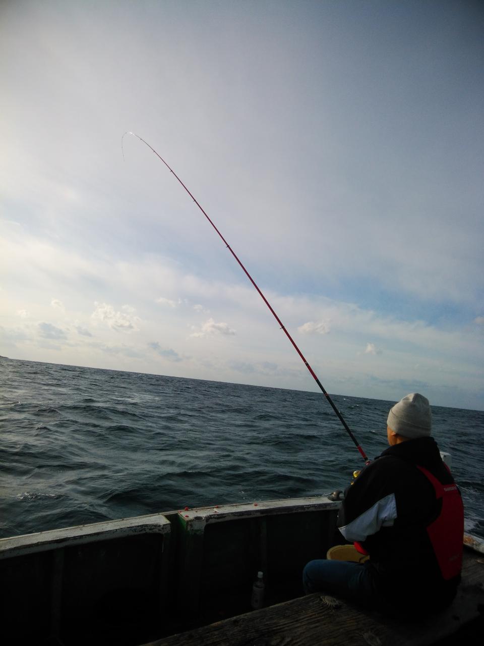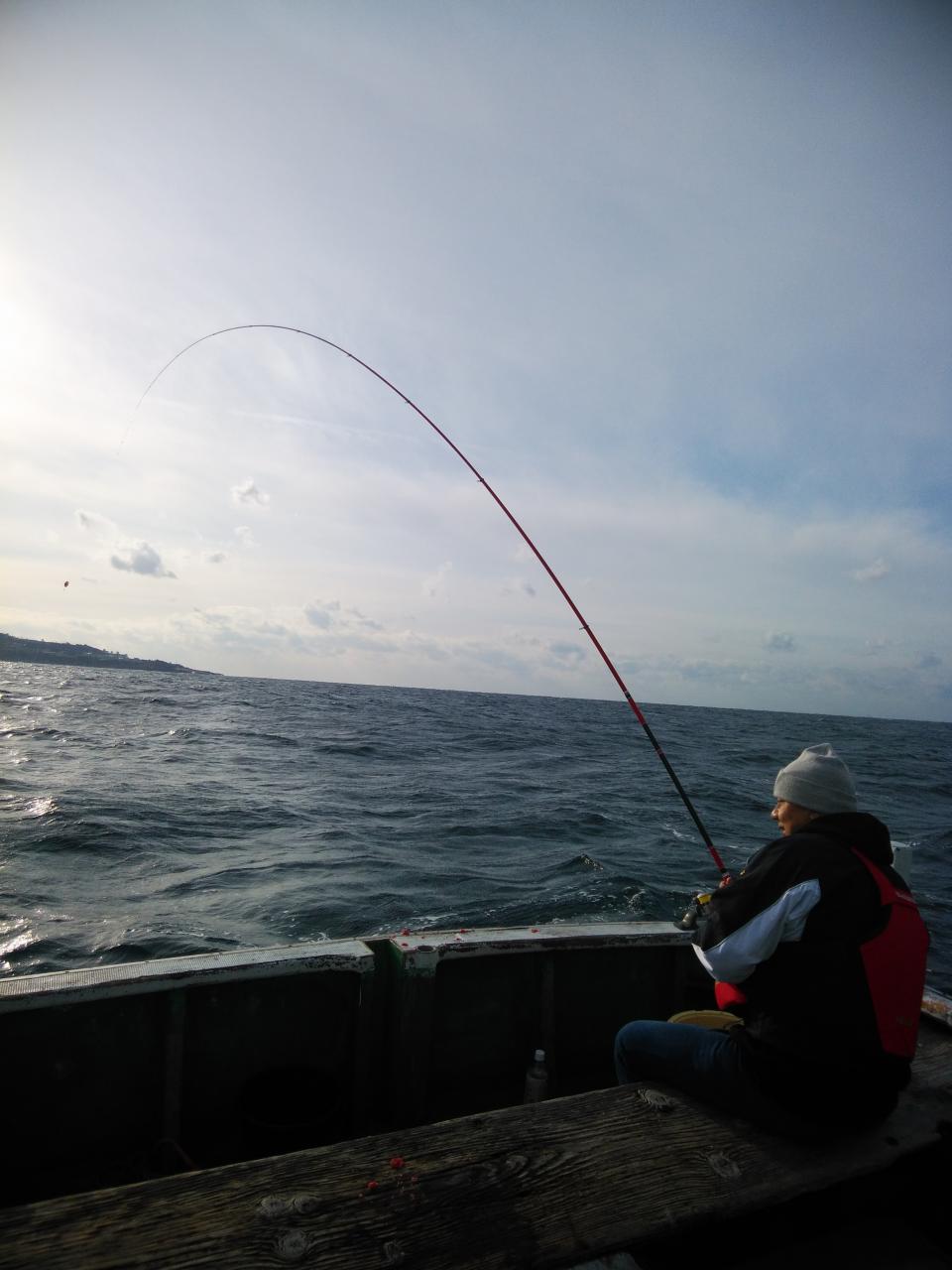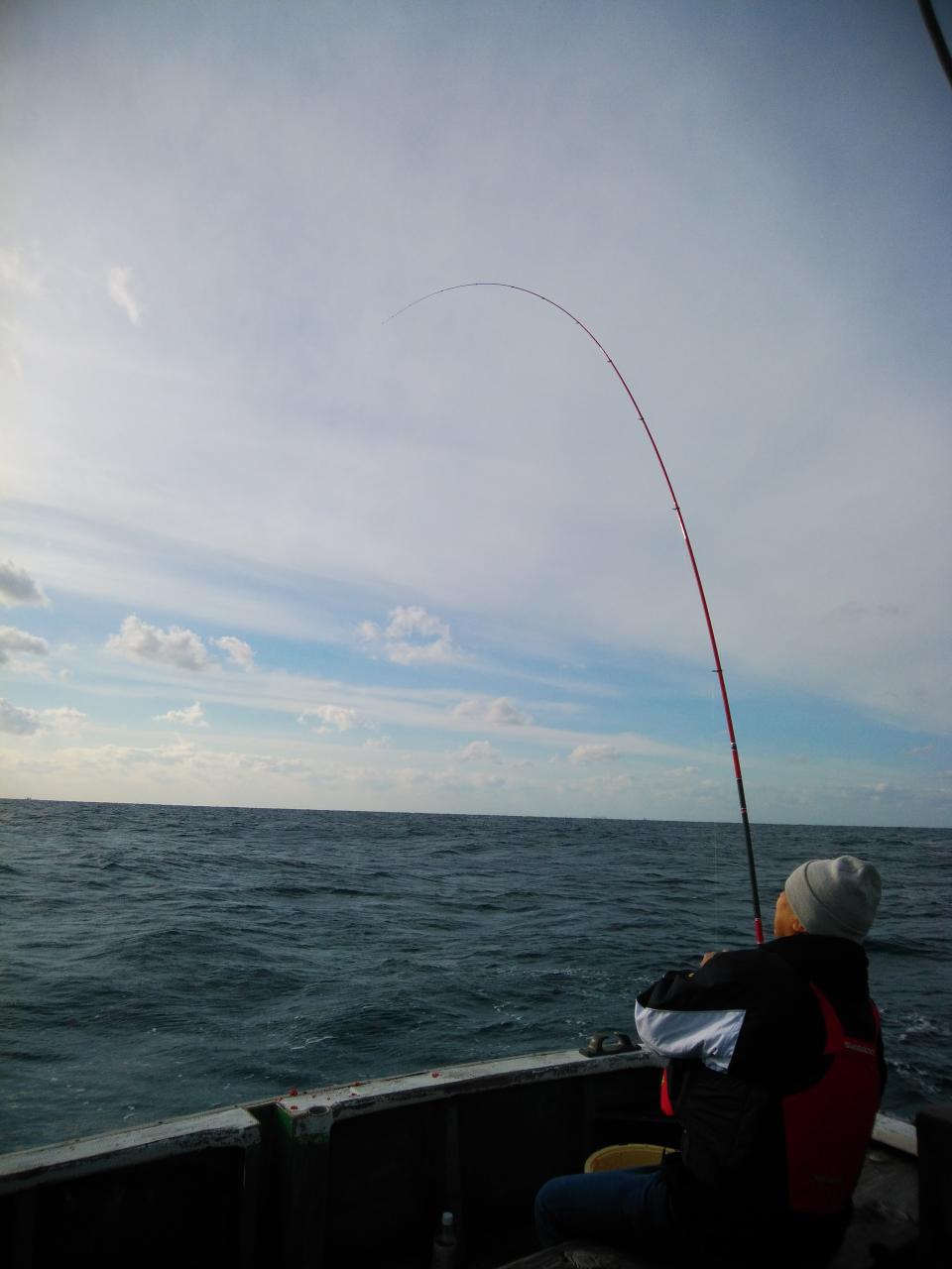 北西の風で、下り潮でした。初めての船釣りのことでしたが良く釣ってくれました