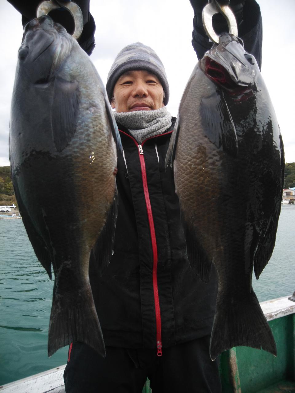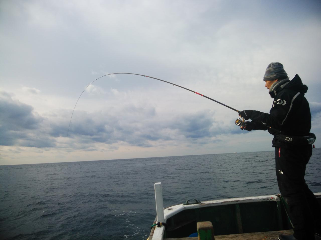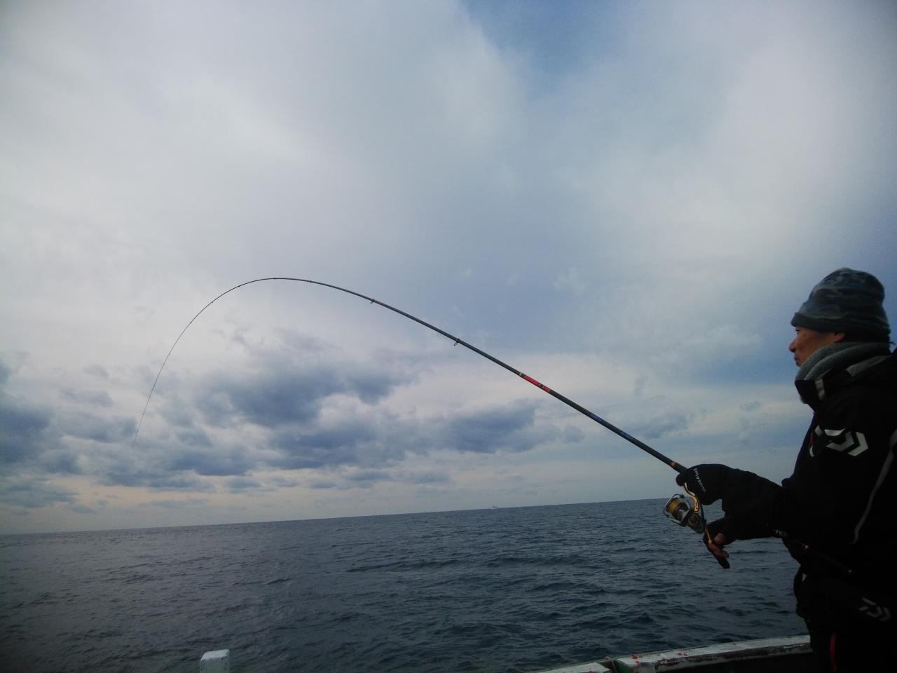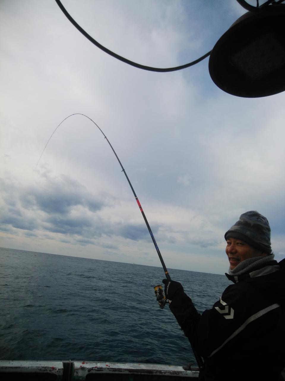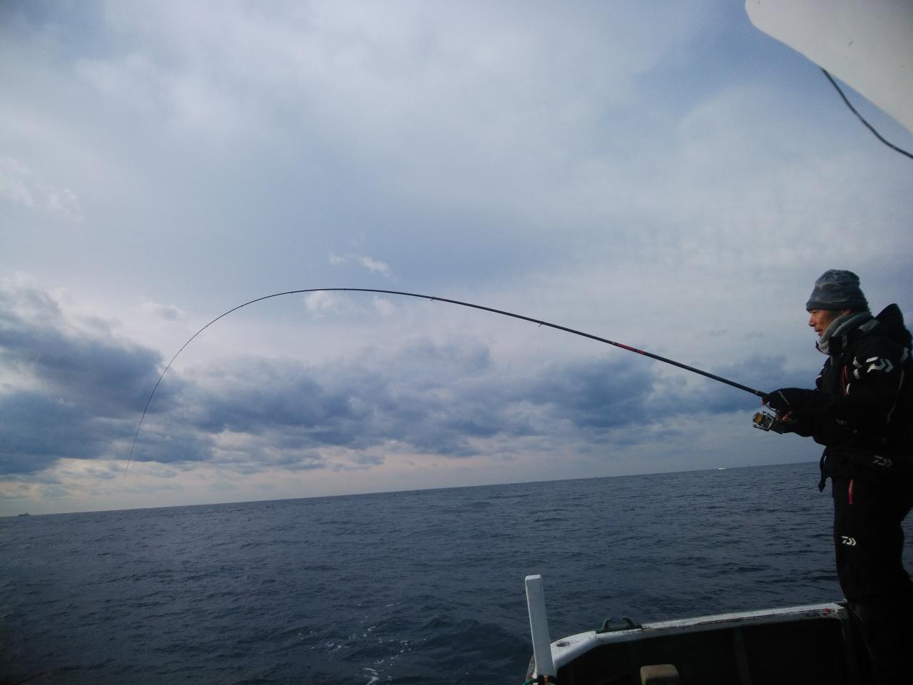 北東の風で、速い下り潮でした。速すぎて苦戦しましたが中井先生よく頑張ってくれて