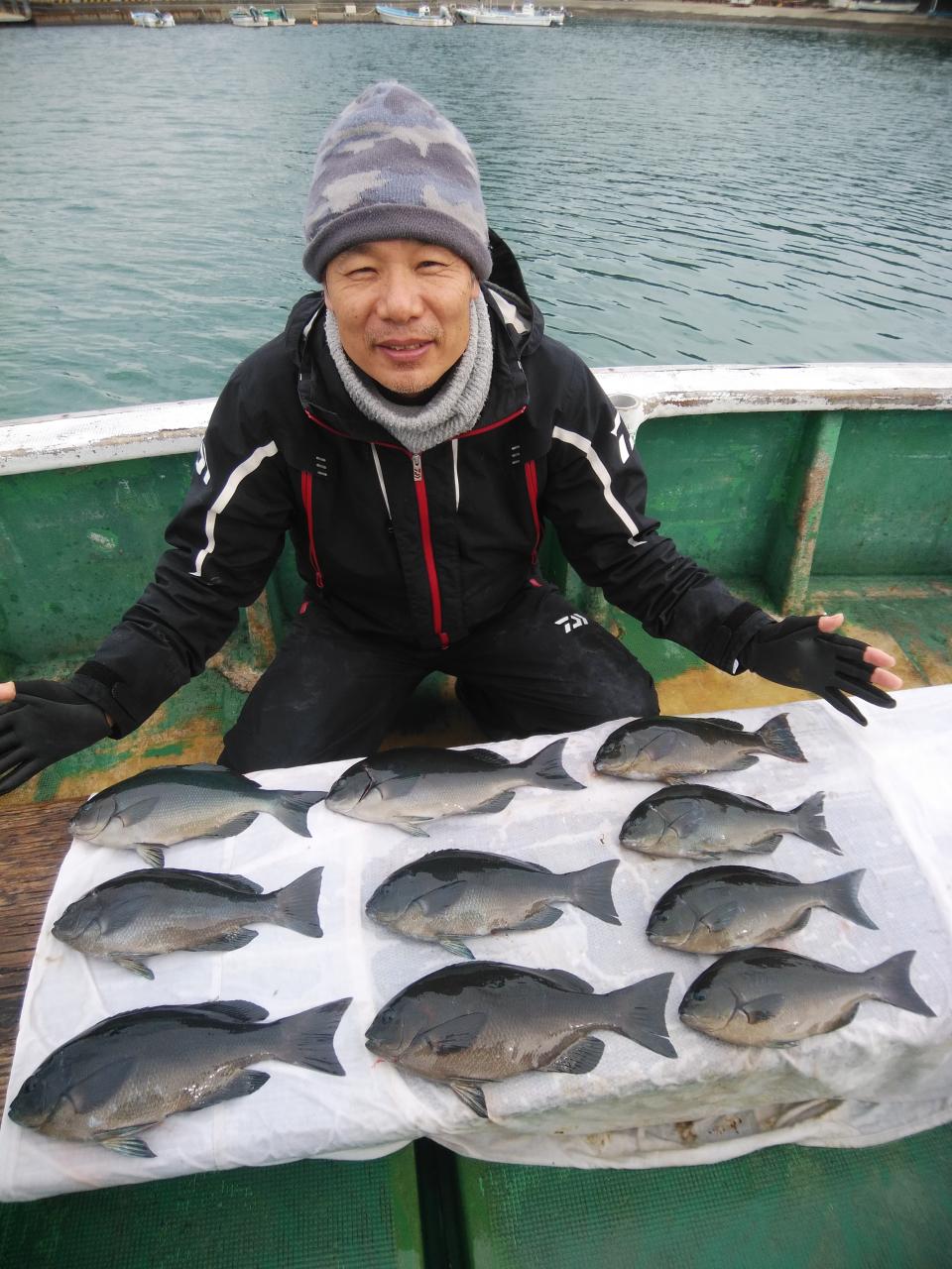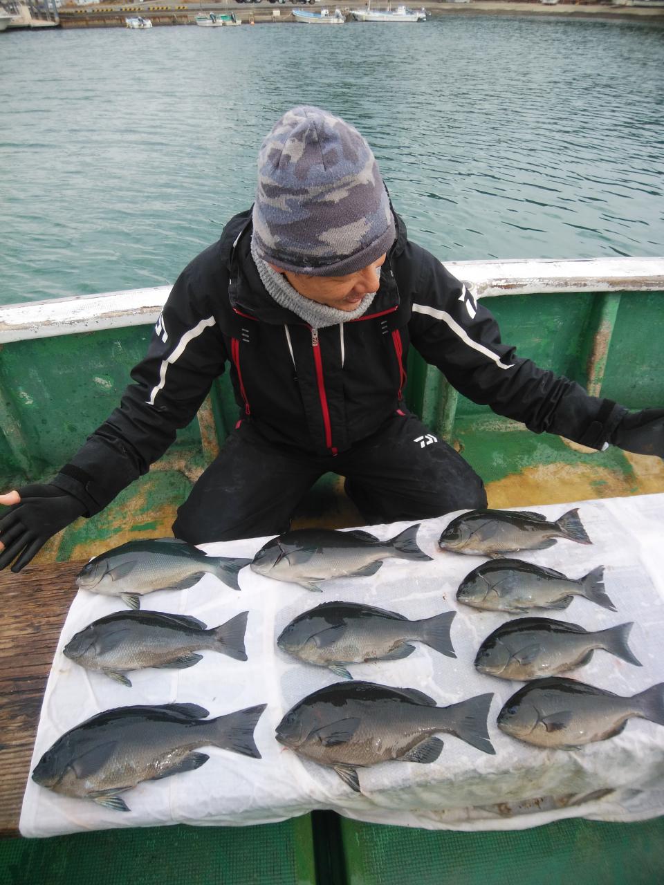 寒グレ、39㎝を頭に10枚釣ってくれて良かったです。帰港後、料理しました。真子、白子入っていました。脂のりのりでした。これからが楽しみです。