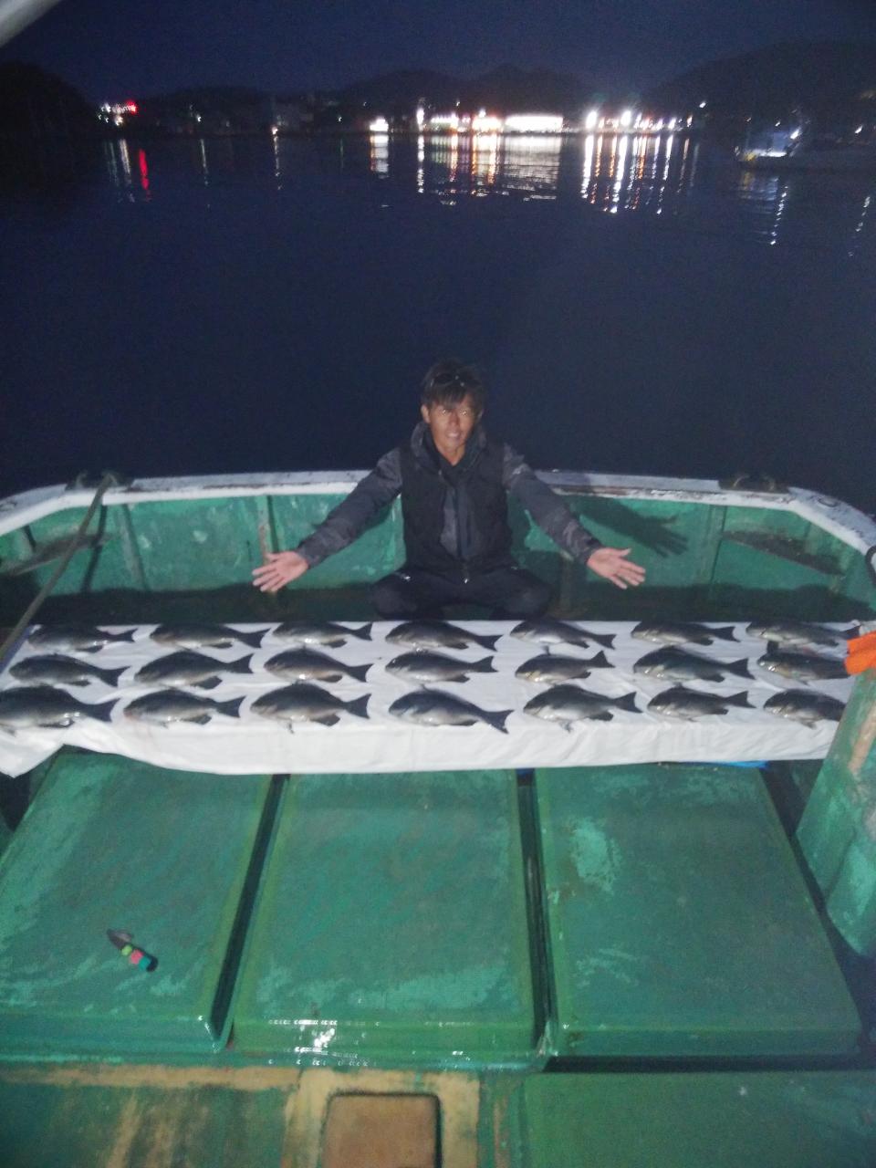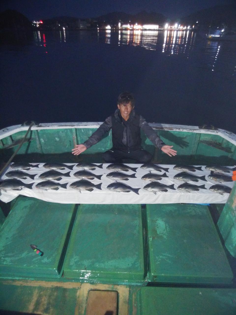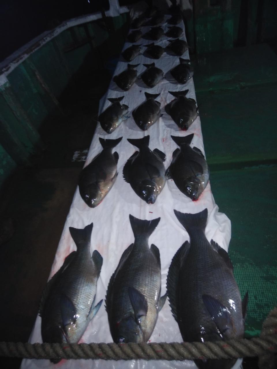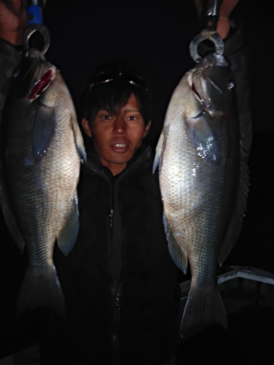 北西の風で、下り潮でした。昼からは、喰いが活発で和田様、2人で良型揃いの寒グレ、33㎝~41,5cmを合計、41枚の大釣りでした。