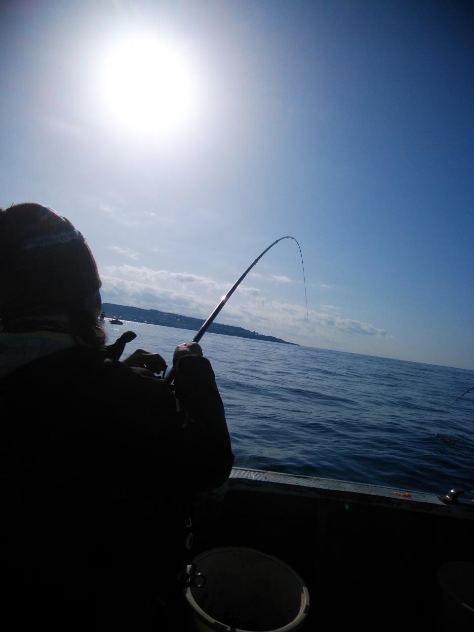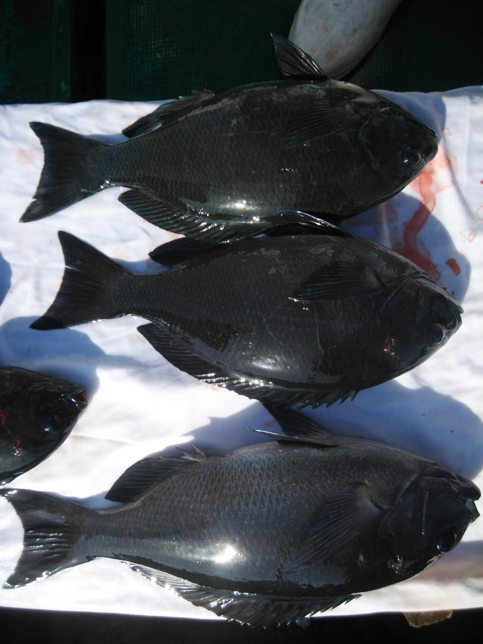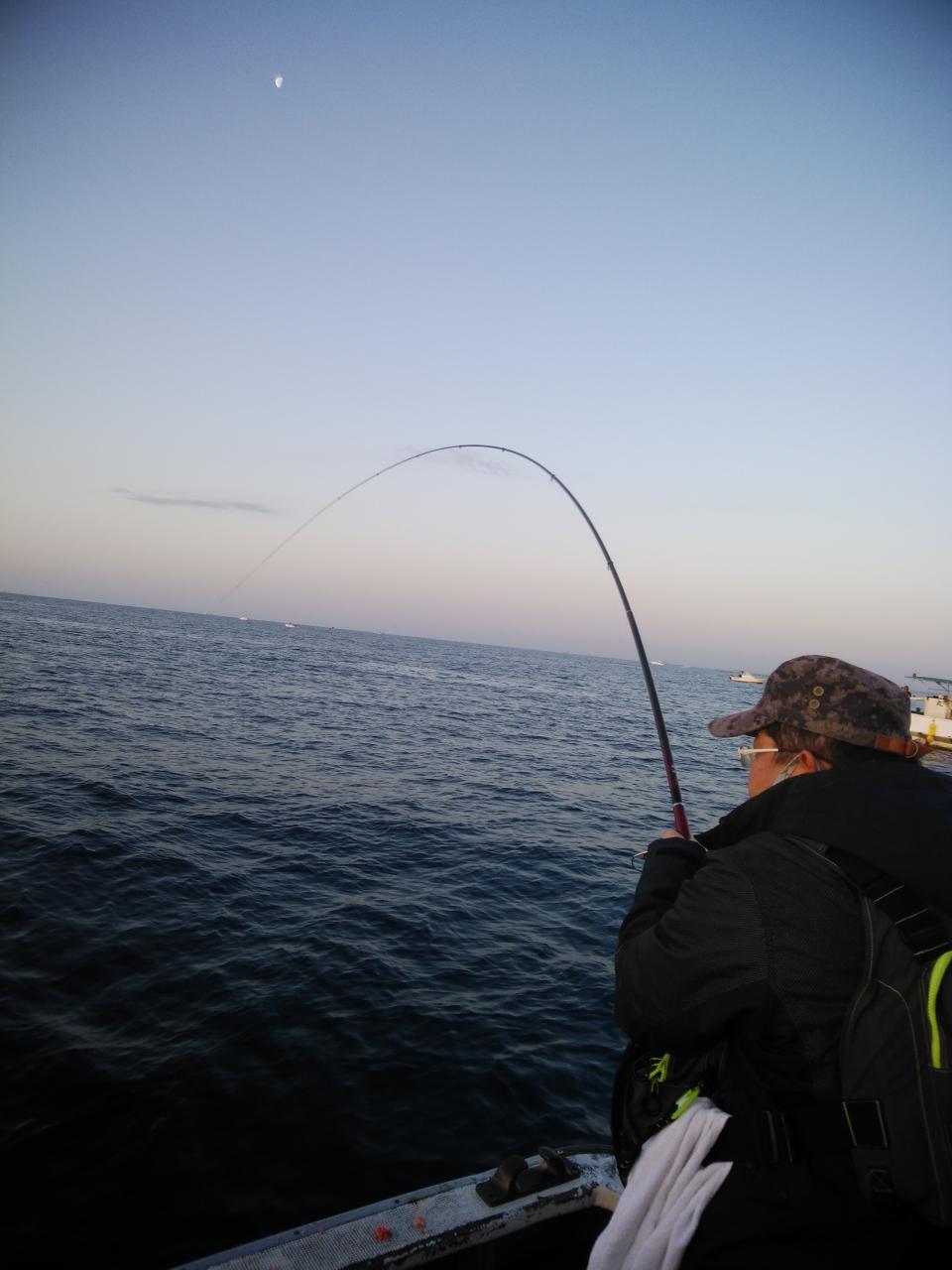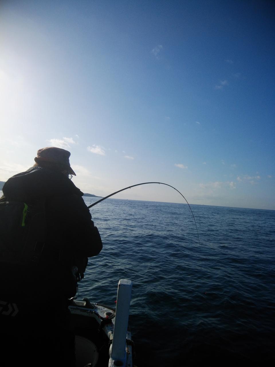 北東の風で、ベタナギで潮が遅くて苦戦しましたがよく頑張ってくれて寒グレ、40㎝を頭に7枚とイサギも交じり4目上がりました。