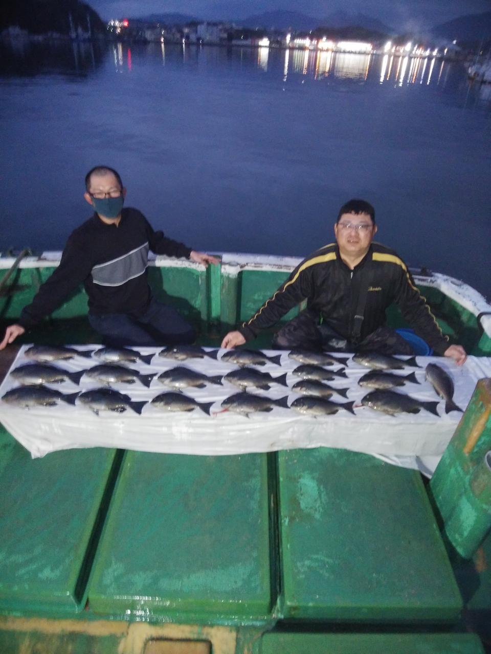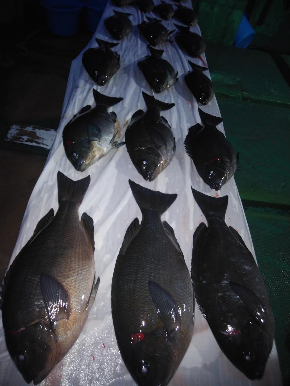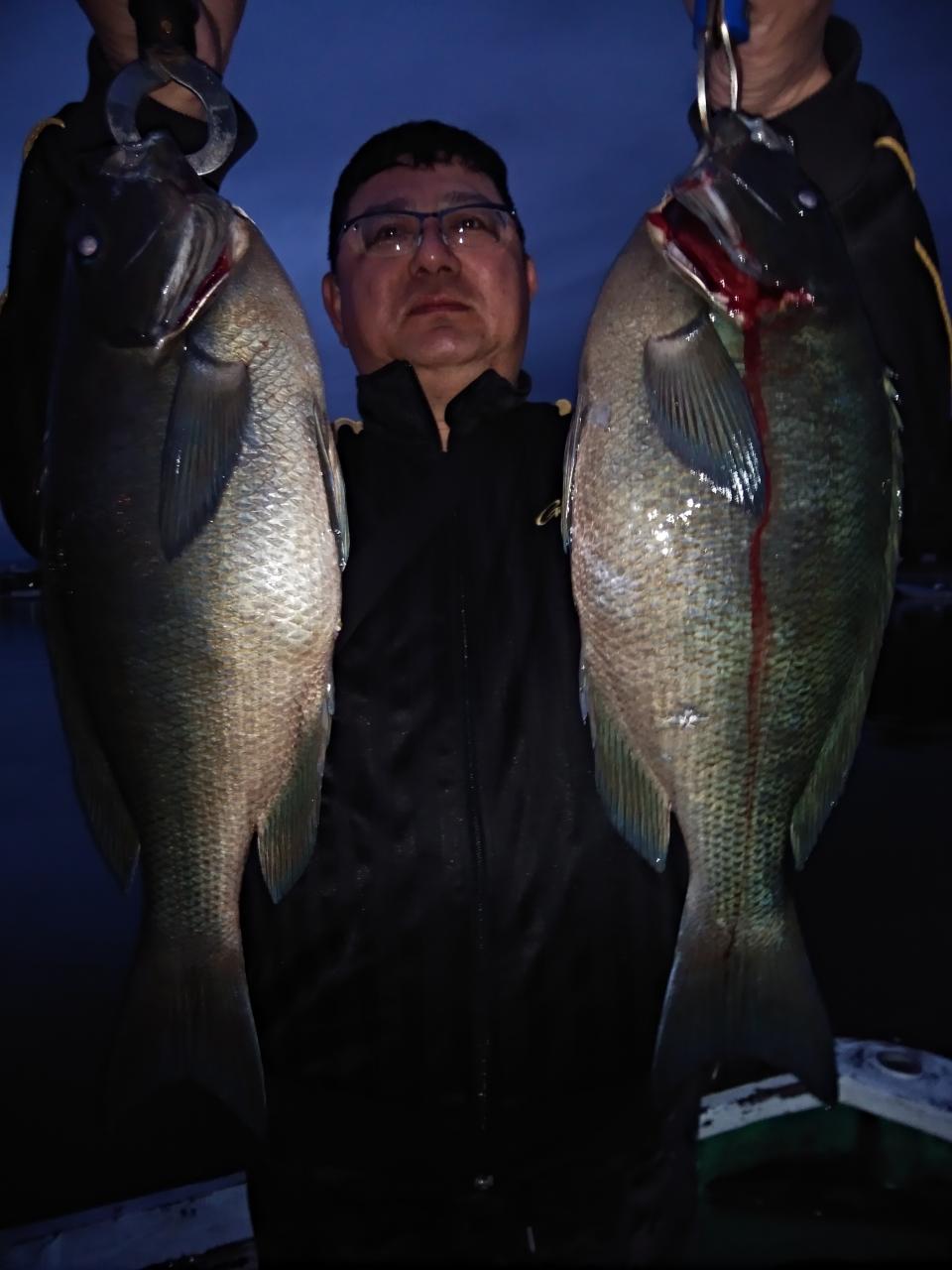午前便は、北東の風で、岡入れの潮で、風と潮とが反対で苦戦しましたが午後からは南西の風で、上り潮でした。風と潮とマッチしていて一投目から寒グレ釣れました。流れが速く釣りづらかったですが谷川様らよく頑張ってくれて寒グレ、40㎝を頭に20枚の大釣りで良かったです。ありがとうございました。またよろしくお願いします。