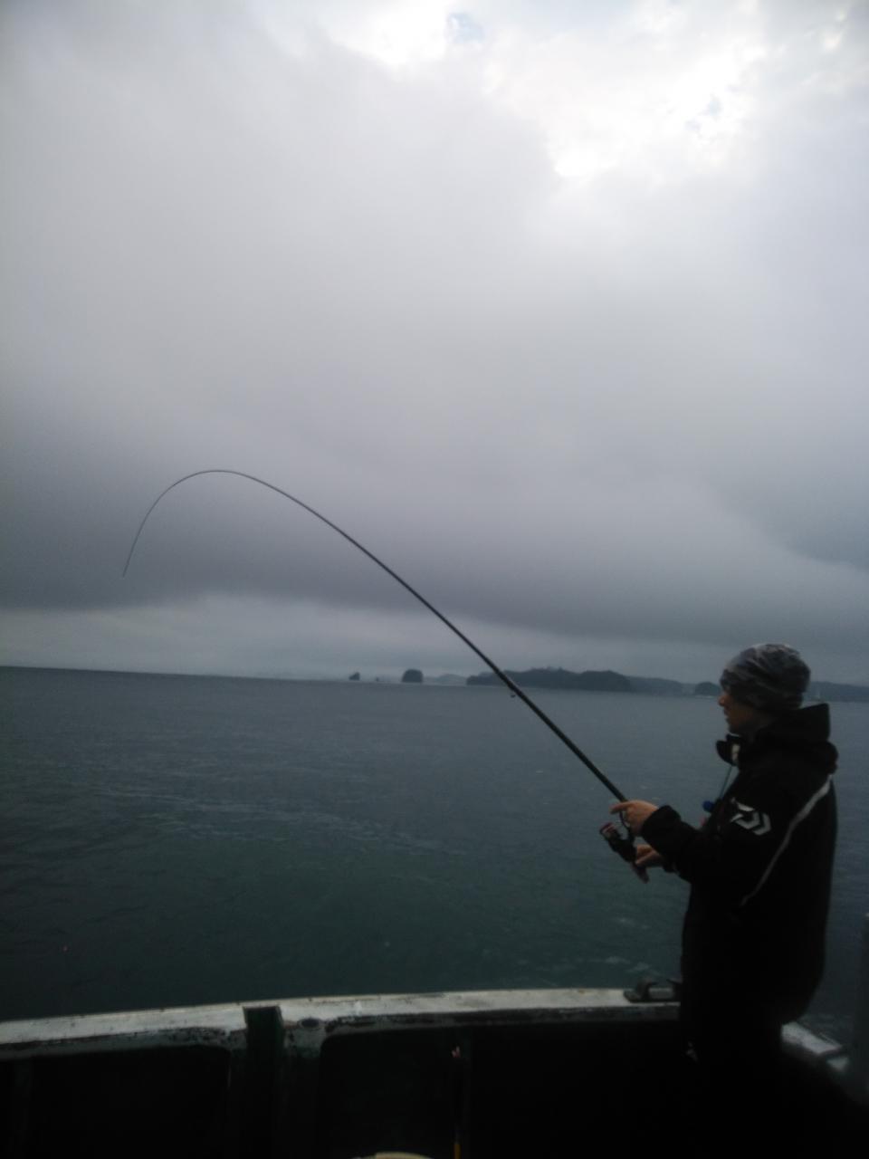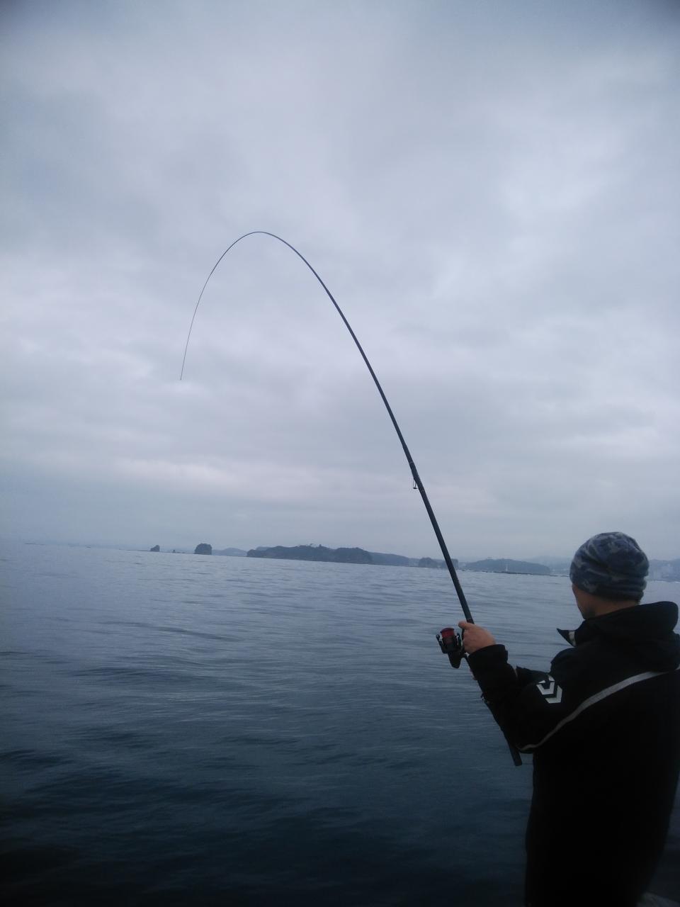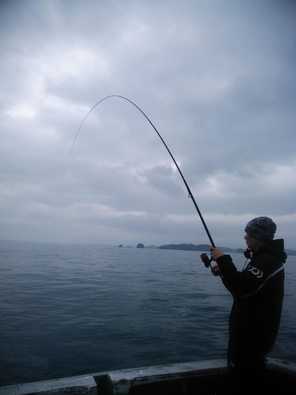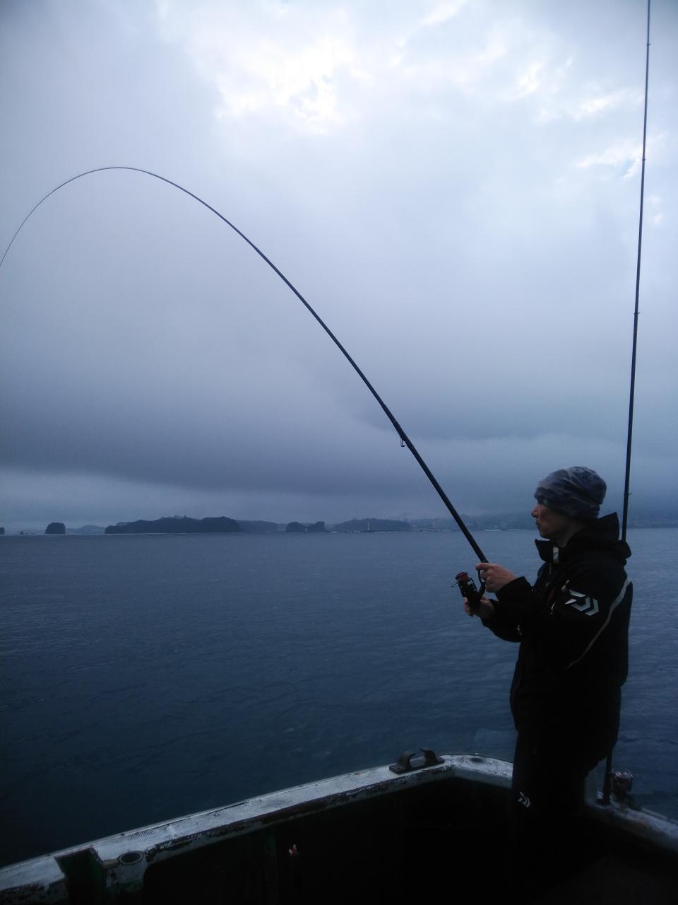 北西の風で、流れは止まっていました。潮が動かない為苦戦しましたが後に上り潮に変わって来ました。中井先生よく頑張ってくれて寒グレ、38㎝を頭に25枚の大釣りで