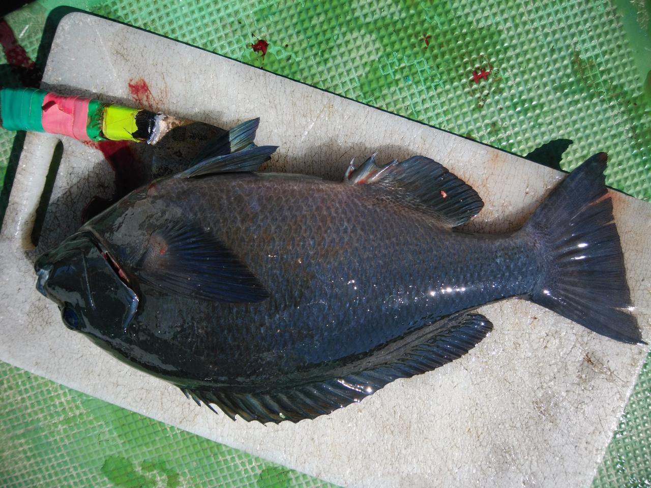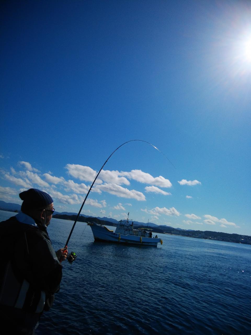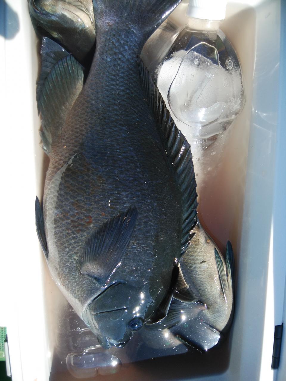 北東の風で、潮は止まっていました。海上は、ベタナギで風も無風状態の中で稲本様、よく頑張ってくれて寒グレ、38㎝を頭に5枚と写真撮影後37㎝の寒グレ釣れました。合計、6枚釣れて良かったです。ありがとうございました。またよろしくお願いします。