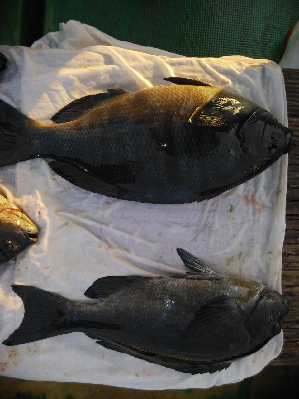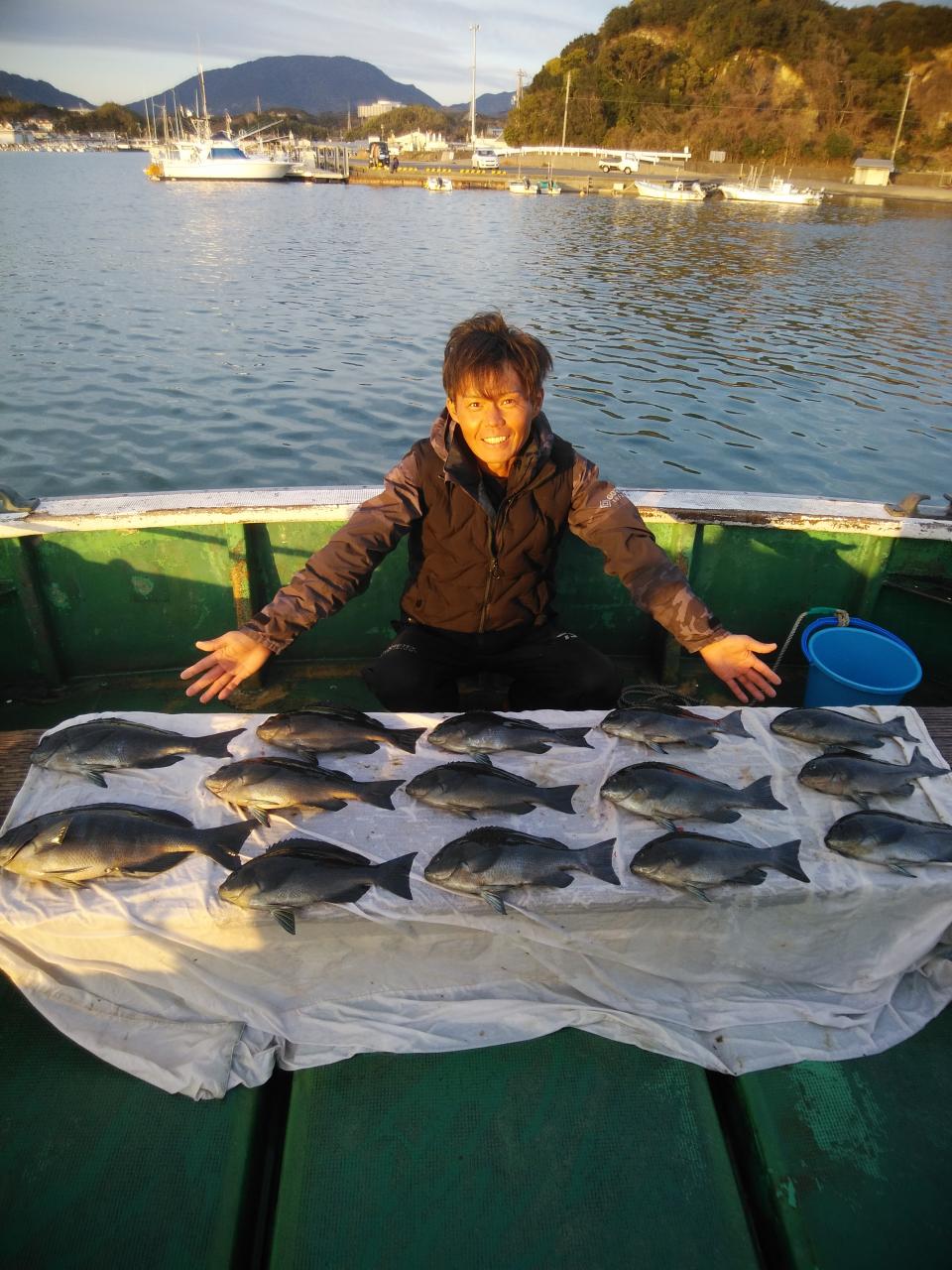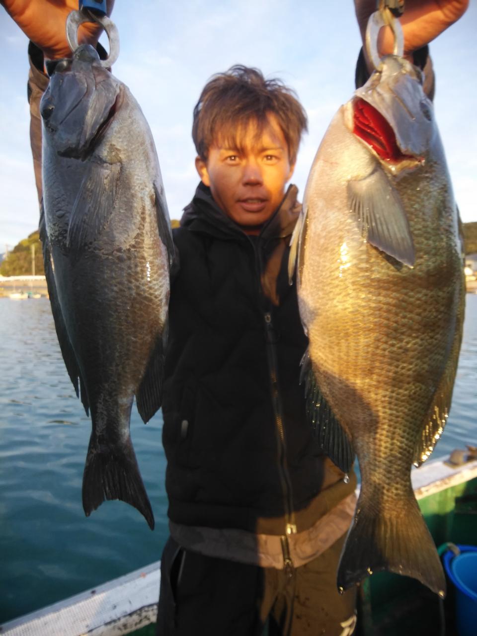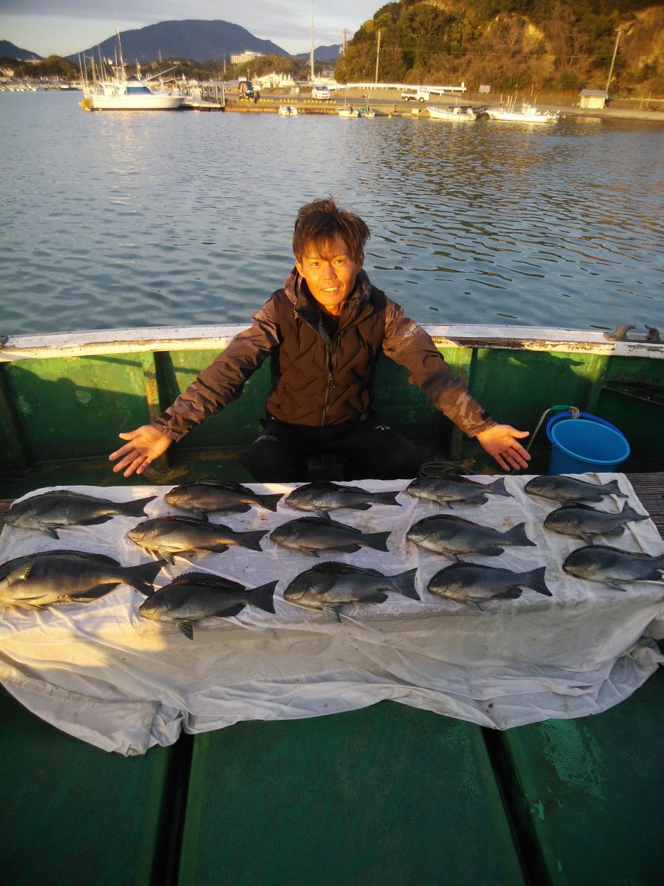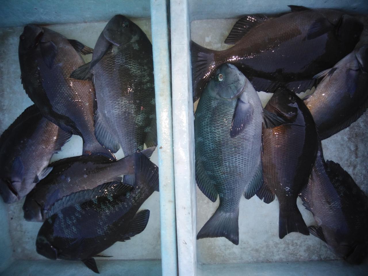 昼からは、北西の風で、岡入れの下り気の潮でした。浮きグレがたくさんありましたが喰い渋りが続きましたが和田様ら、よく頑張ってくれて大型寒グレ、43cmを頭に14枚と10枚は活かしました。合計、24枚釣れて良かったです。ありがとうございました。またよろしくお願いします。