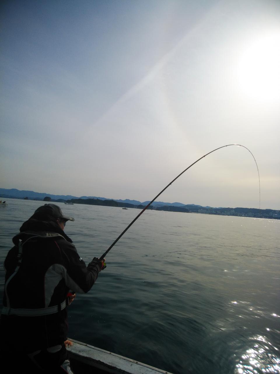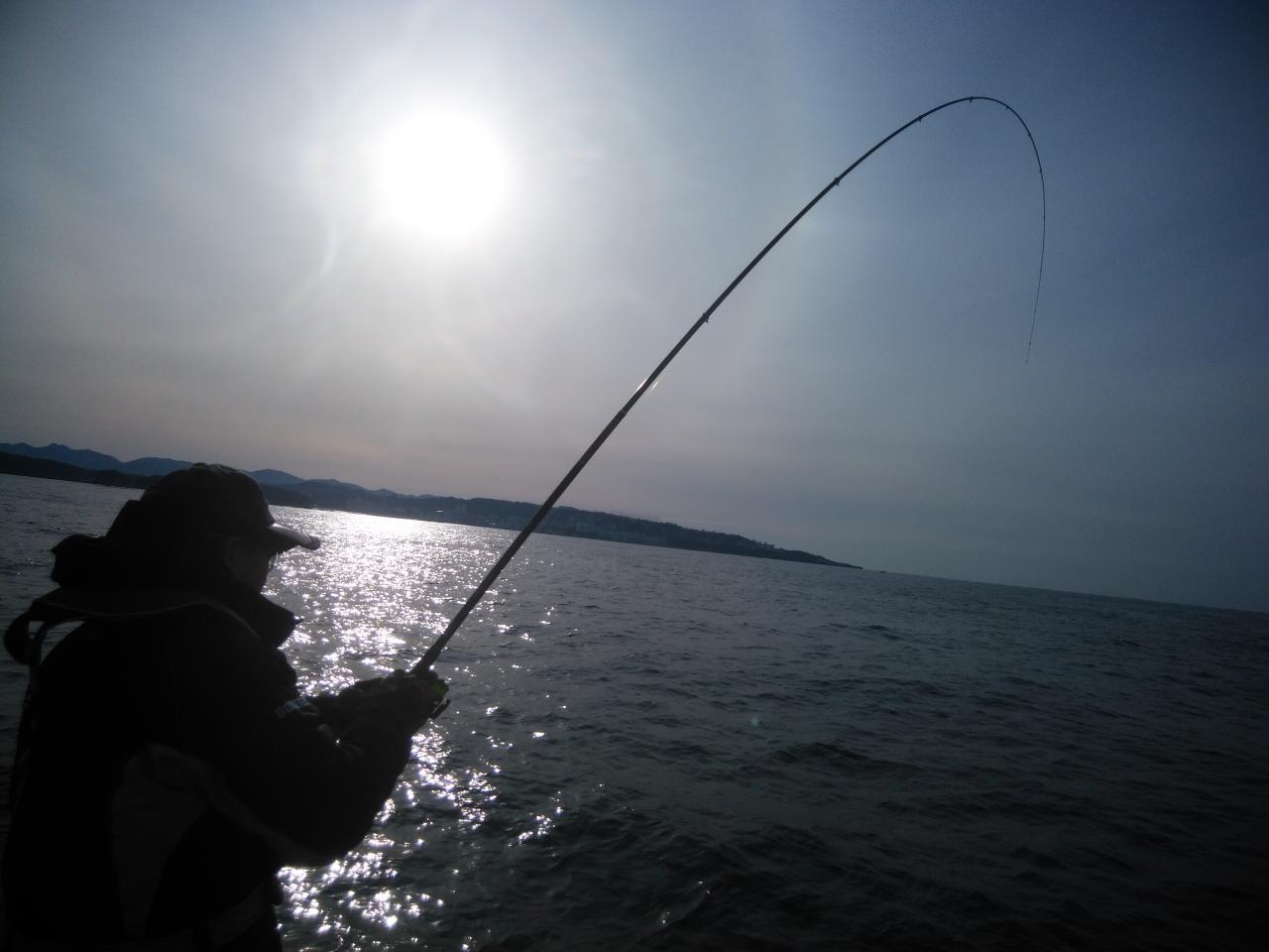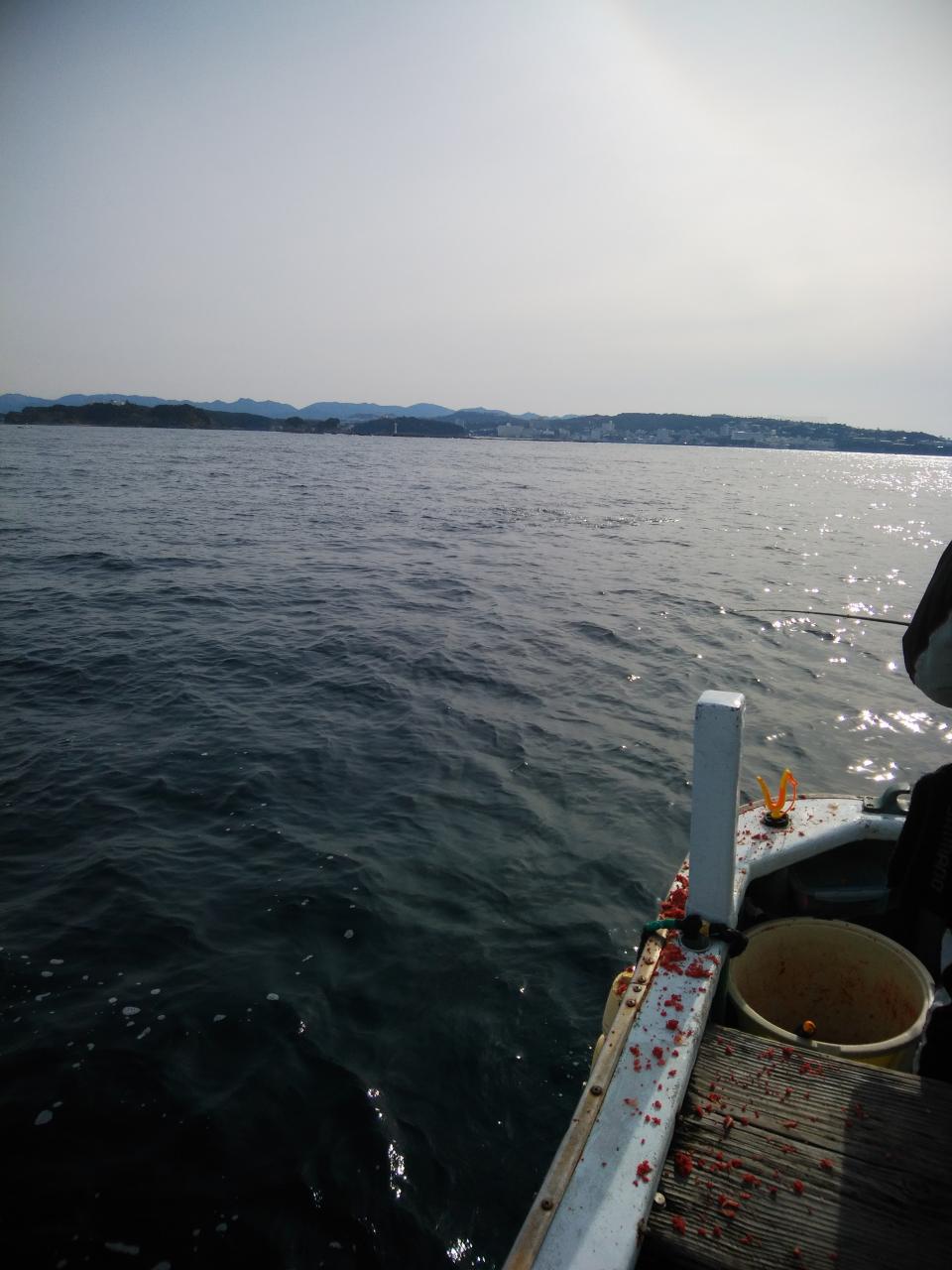 北の風で、岡入れの下り気の潮でした。流れが遅く、浮きグレもたくさん見えていながら、喰い渋りで、波高も0,5mもないぐらいのベタナギでした。