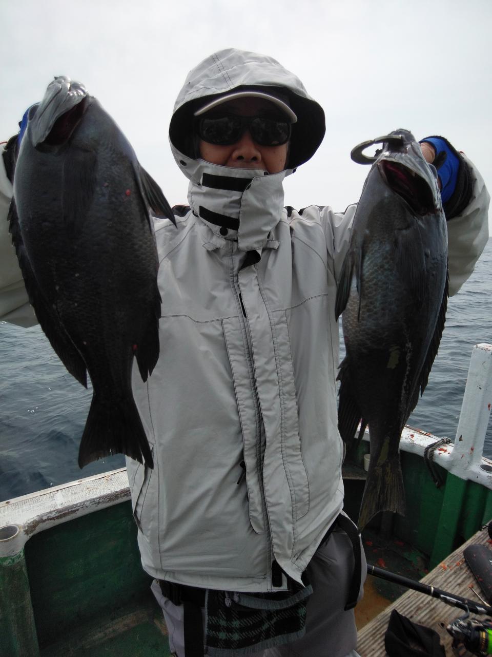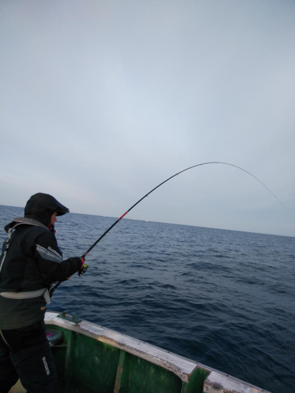 北東の風で、上り潮でした。のちに北の風に変わり釣りづらい状態が続きましたが腕を振り絞ってくれて風と潮とが反対の中、頑張って釣ってくれました。