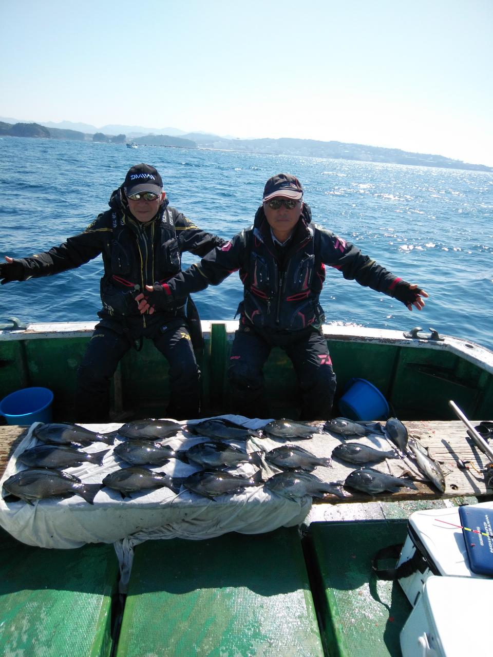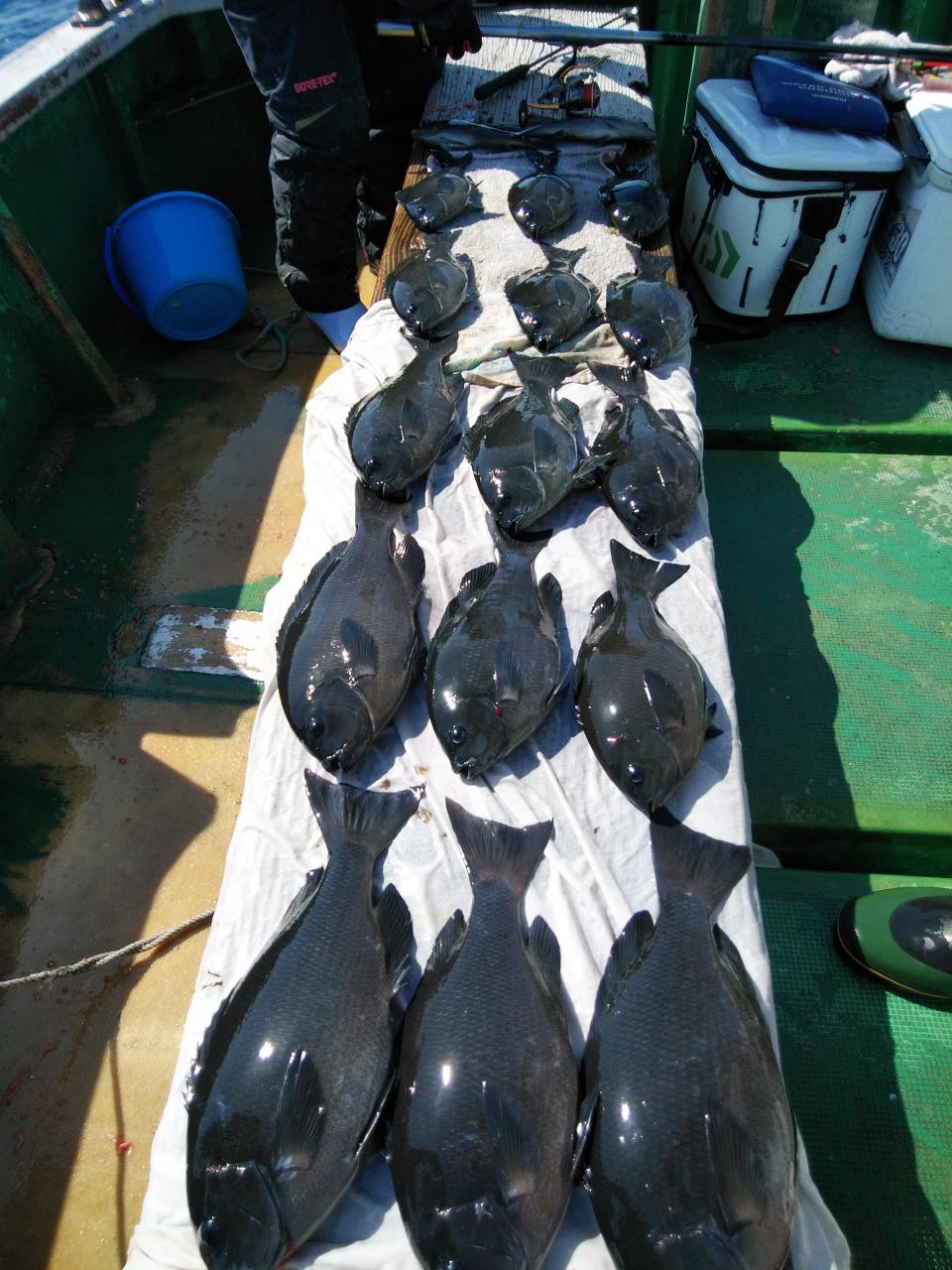 北の風で上り潮でした。風と潮とが反対で釣りづらかったですが小田様らよく頑張ってくれて寒グレ、41㎝を頭に16枚とイサギも交じり大変喜んでくれて良かったです。