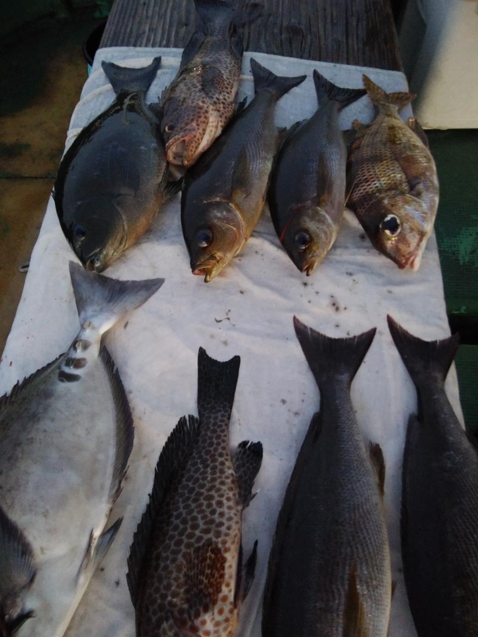 西の風で上り潮に変わって来ましたが石丸様、田中様、よく頑張ってくれて寒グレ6枚、良型イサギ、5匹、メイチダイ、オオモンハタなど5目釣れました。
