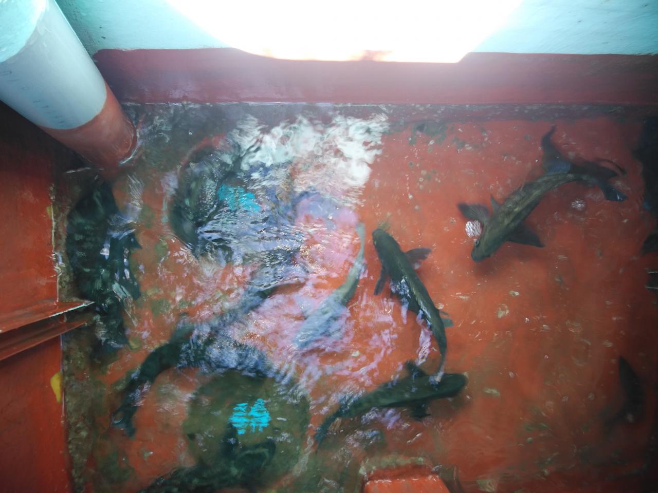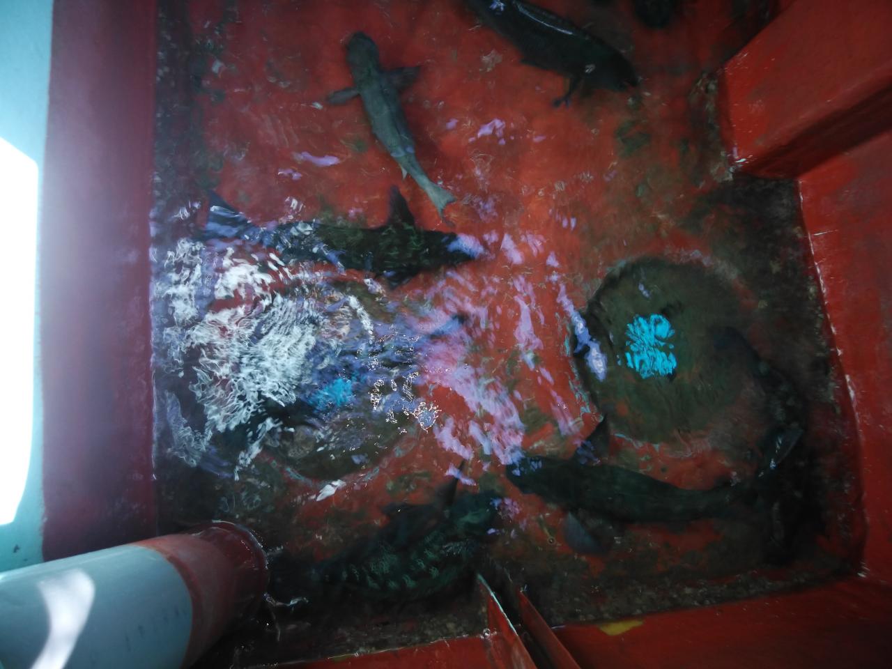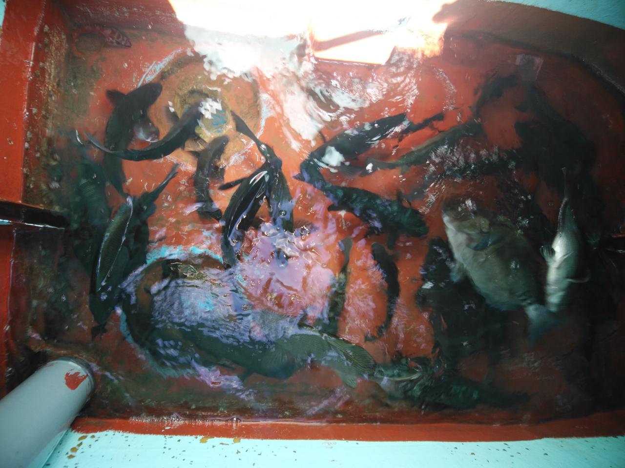 今日は、北の風で、下り潮でした。風と潮とがマッチしていて喰いが活発で、入れ喰い状態で、寒グレ、40㎝を頭に43枚の大釣りでした。那須様、『釣り過ぎた、14枚だけ持って帰る』と『残り活かしといて。。。』と大変よく釣れて良かったです。ありがとうございました。