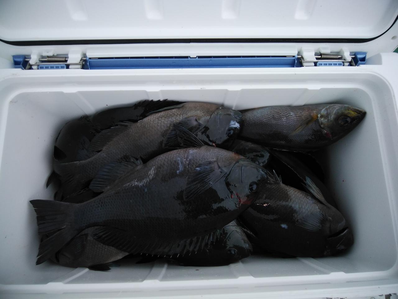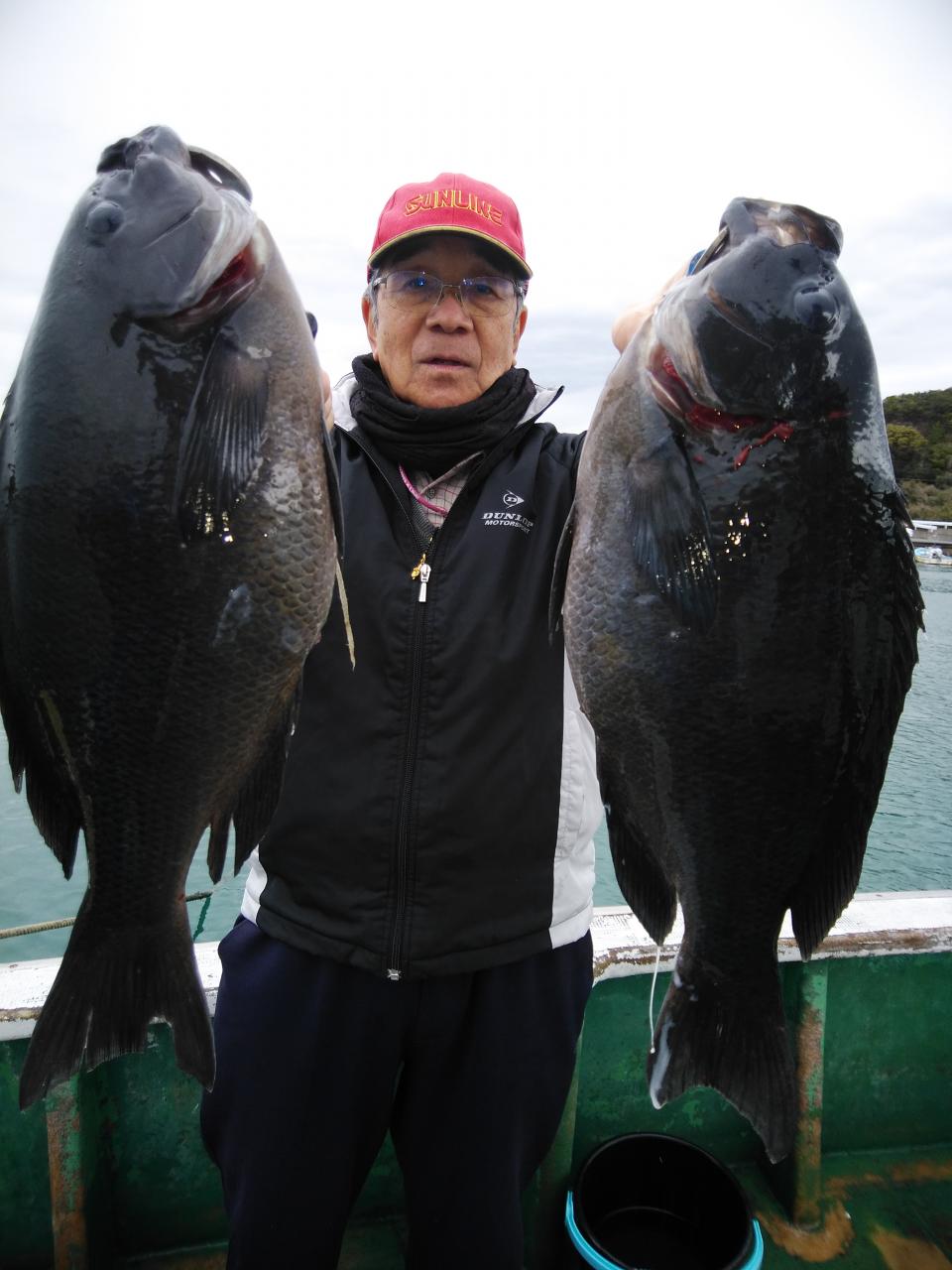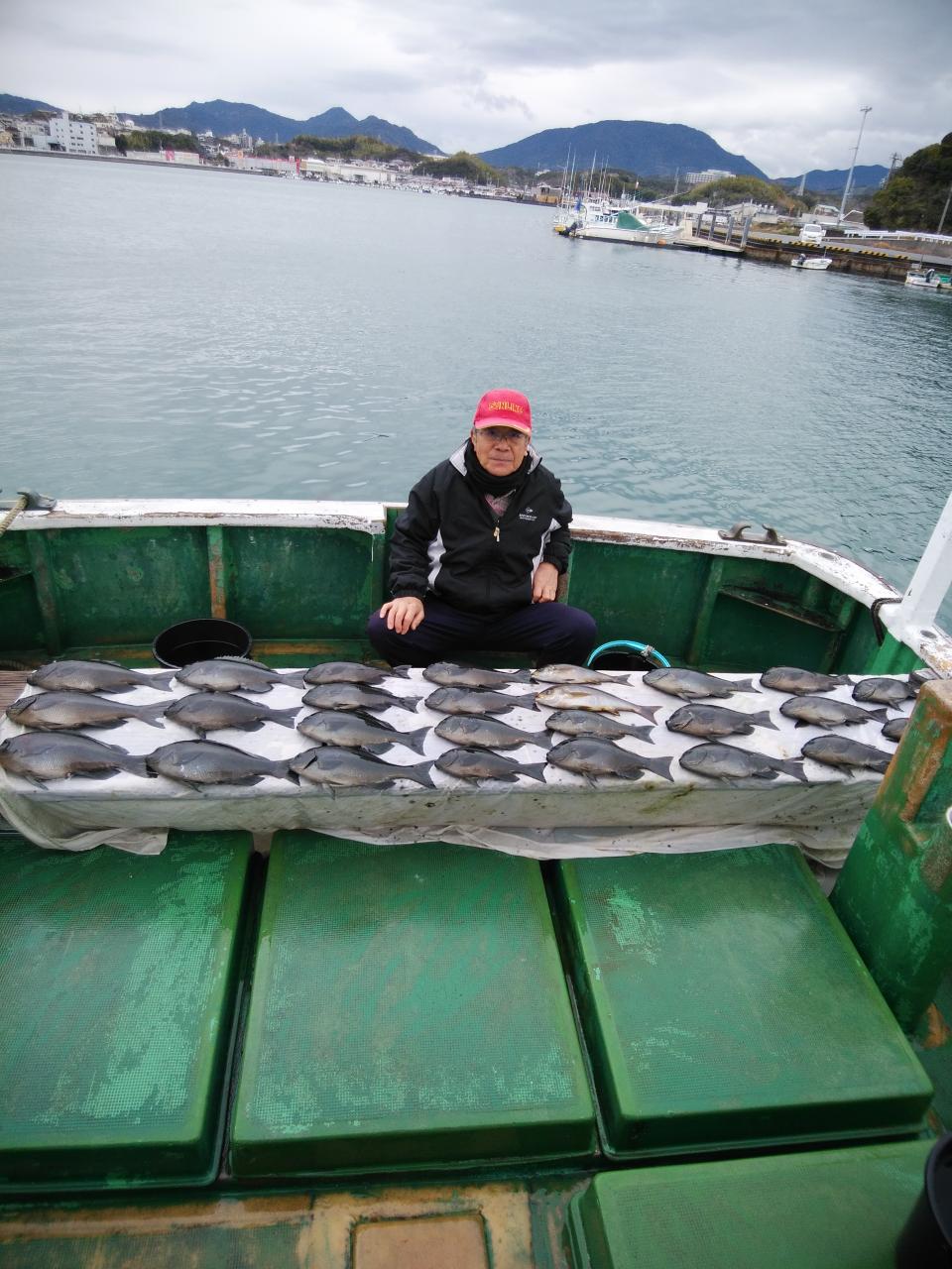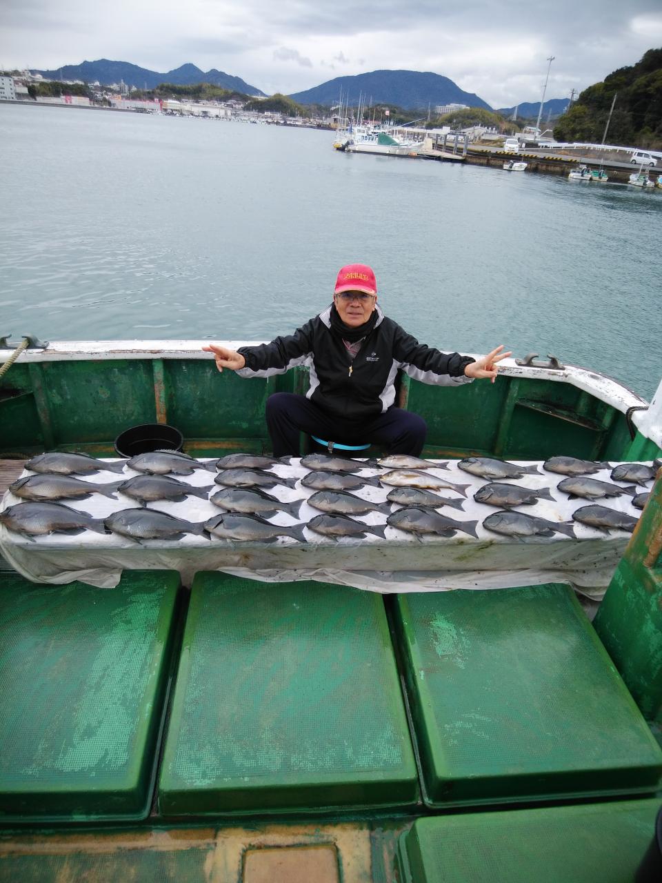 朝1番、潮が止まっていました。最初は苦戦しましたが後半、下り潮に変わり田中様らよく頑張ってくれて寒グレ、42㎝を頭に24枚、腹パンパンで釣った瞬間でも白子出し続け船中真っ白になるぐらいの勢いでした。イサギも交じり大変喜んでくれて良かったです。
