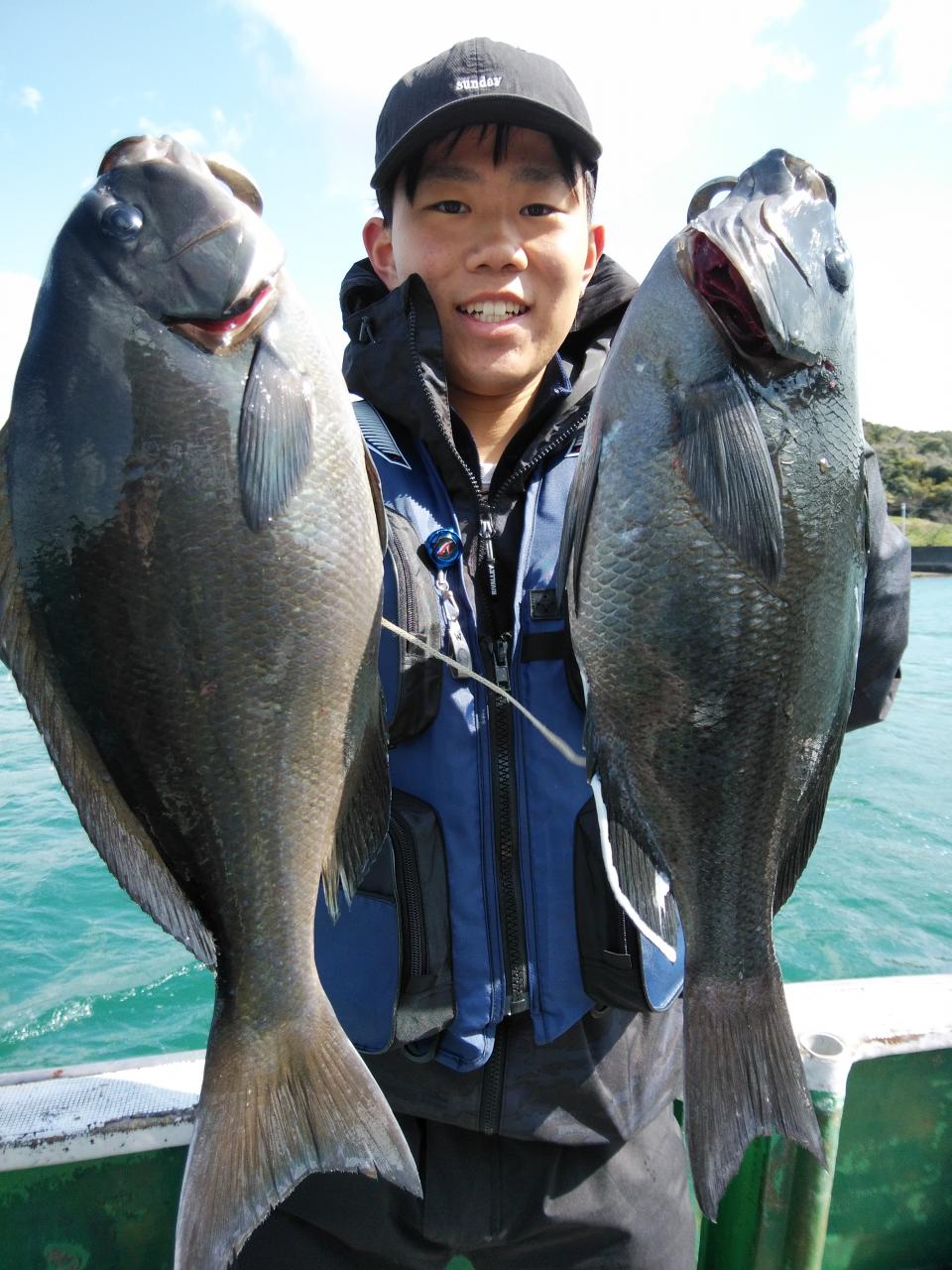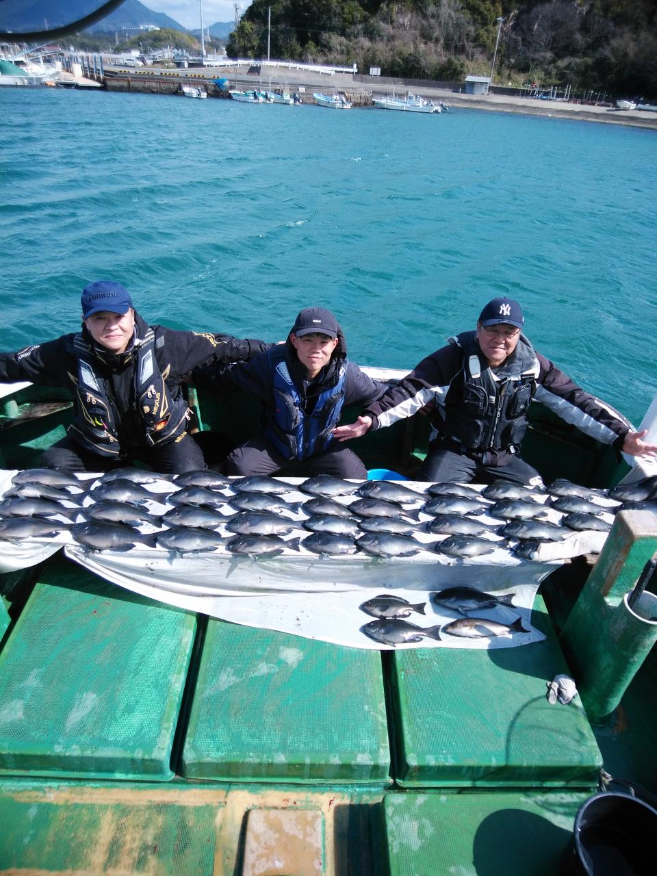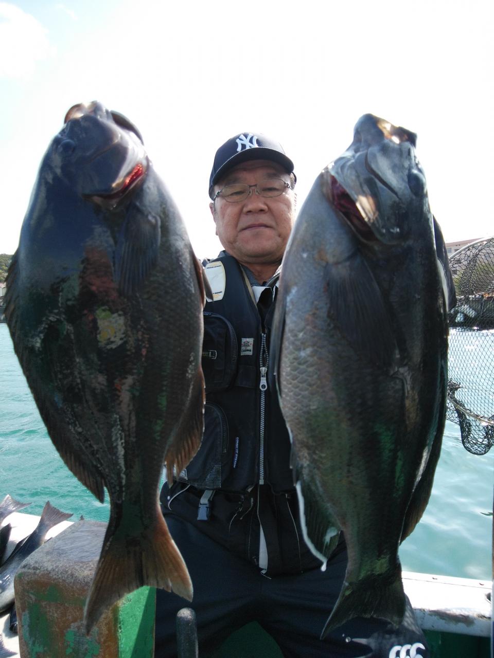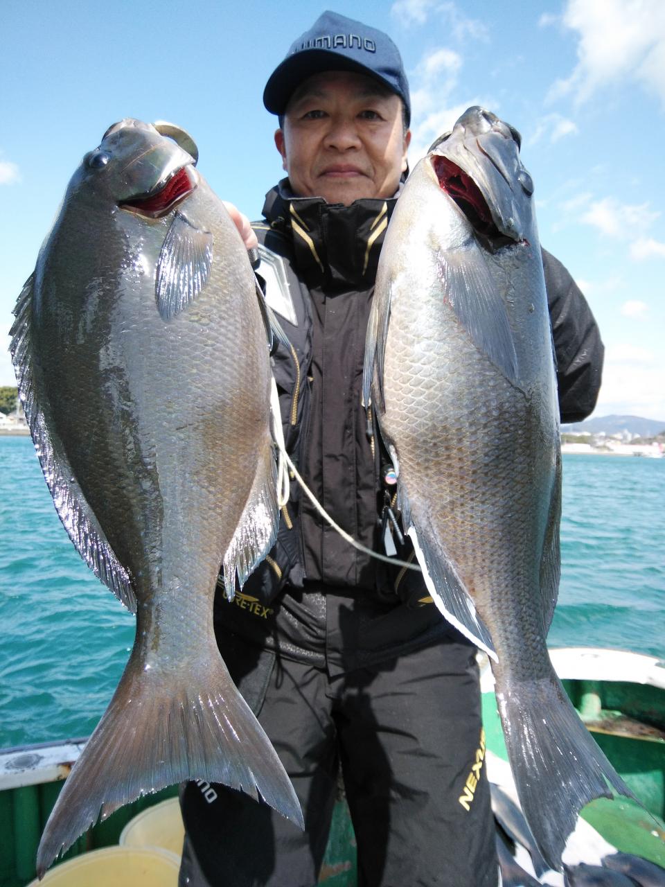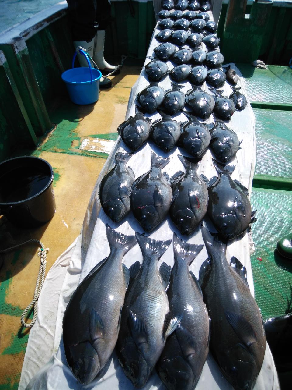 薄井様『25年前にも大瀬丸に来て大釣りでした。。。。』と今回も寒グレ、42㎝を頭に67枚の大漁でした。『よく釣れた。。。』と船長にも24枚頂きました。
