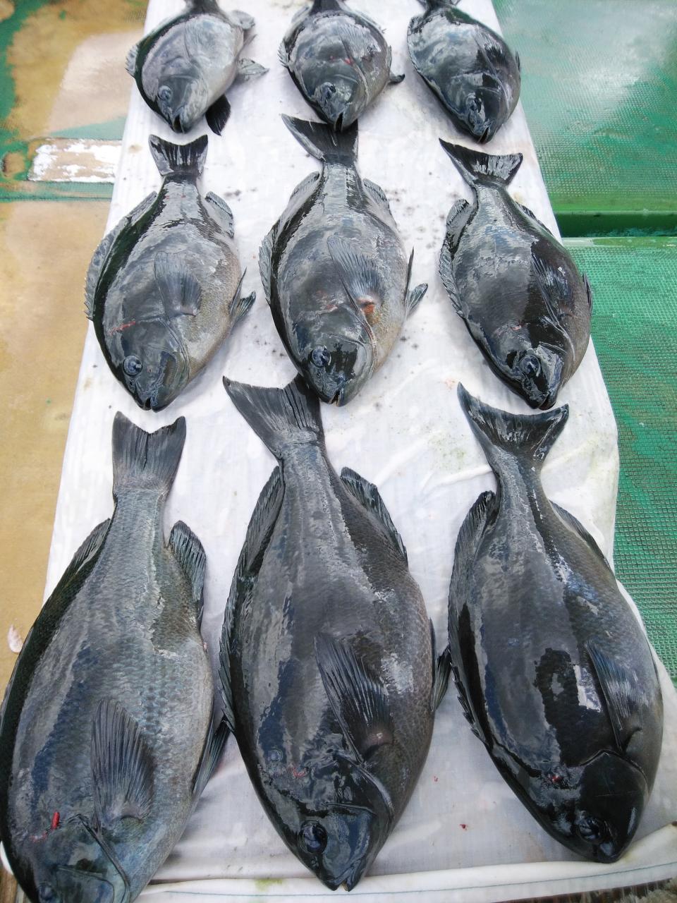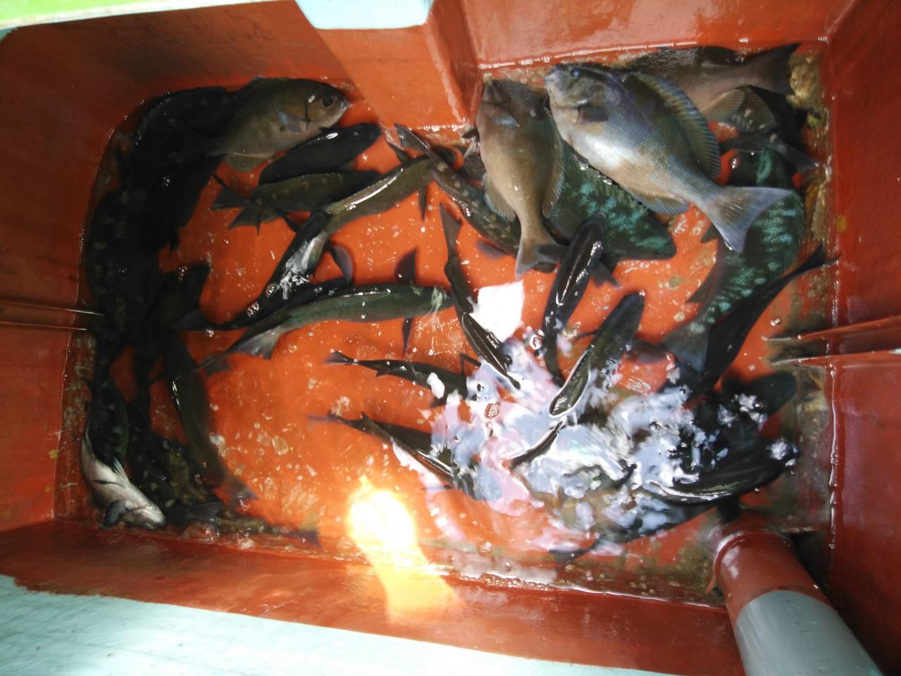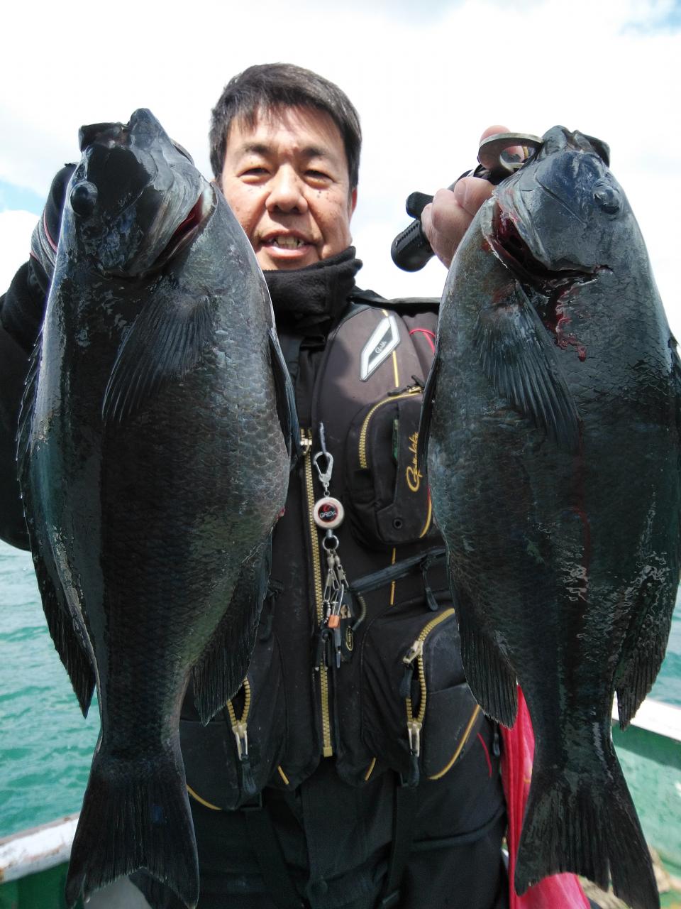 北西の風で、下り潮でした。風と潮とがマッチしていて喰いが活発でした。下尾様29枚と活かした寒グレ22枚。2名様で51枚の大釣りで大変喜んでくれて良かったです。
