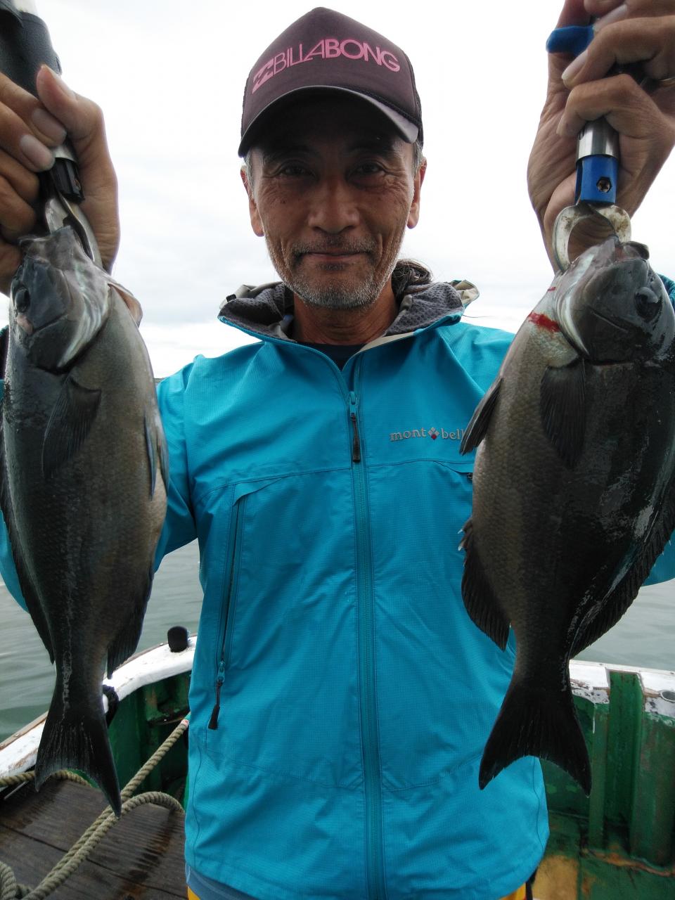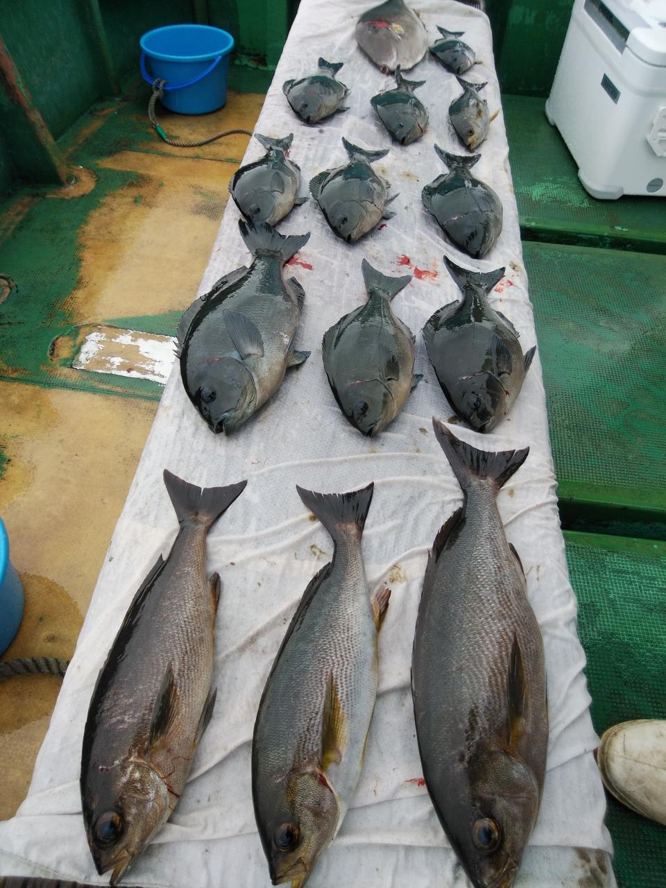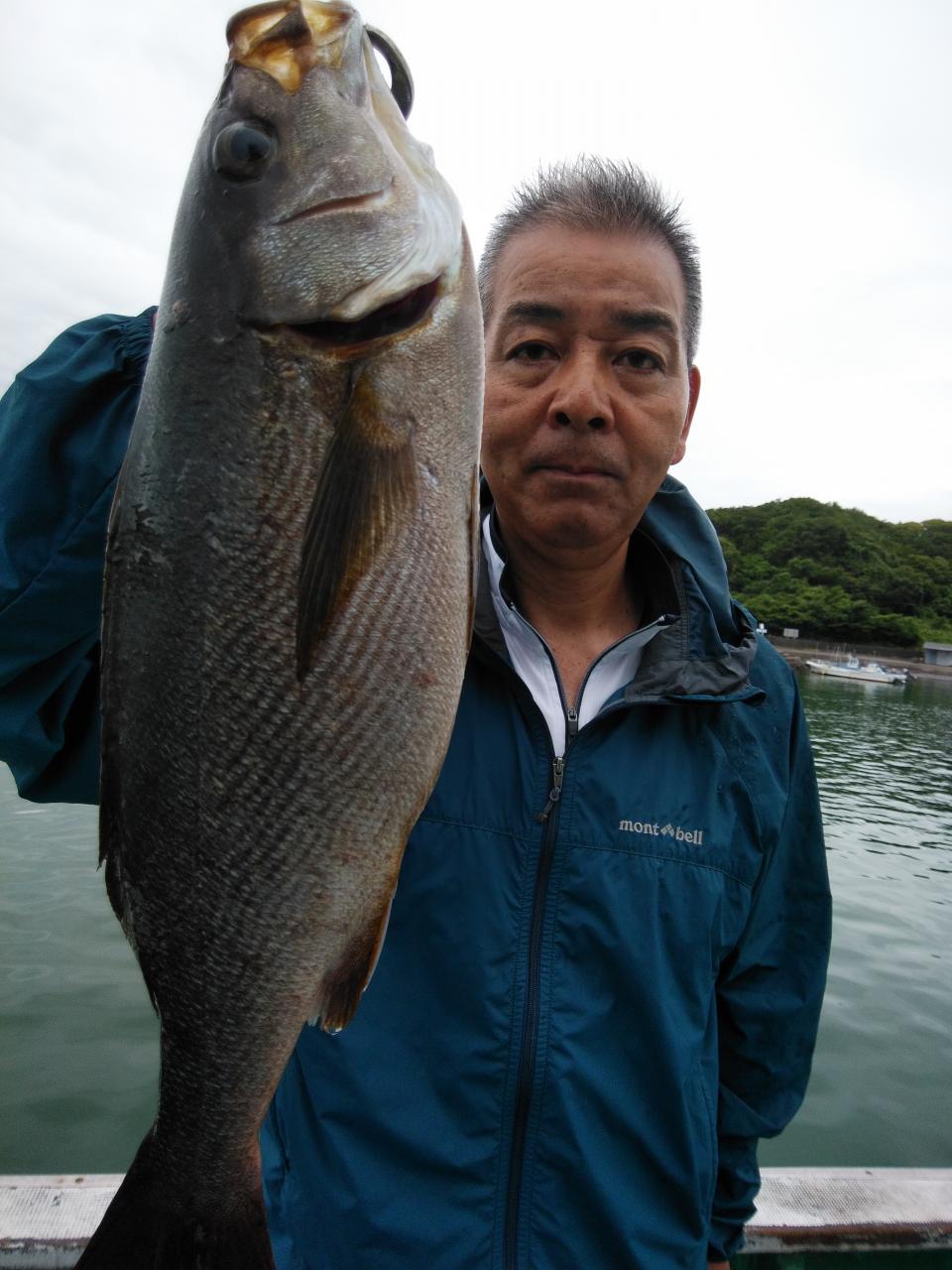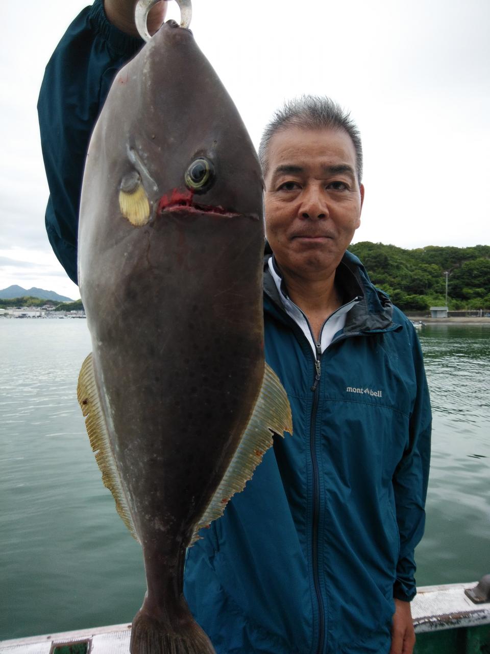 朝1番、北東の風で、沖出しの上り気のゆっくりとした潮でした。いきなり抱卵腹ボテ、イサギ44㎝今年最長寸が釣れました。その後ブチ切られが多く、ウスバハギ、55㎝等々3目釣れて良かったです。