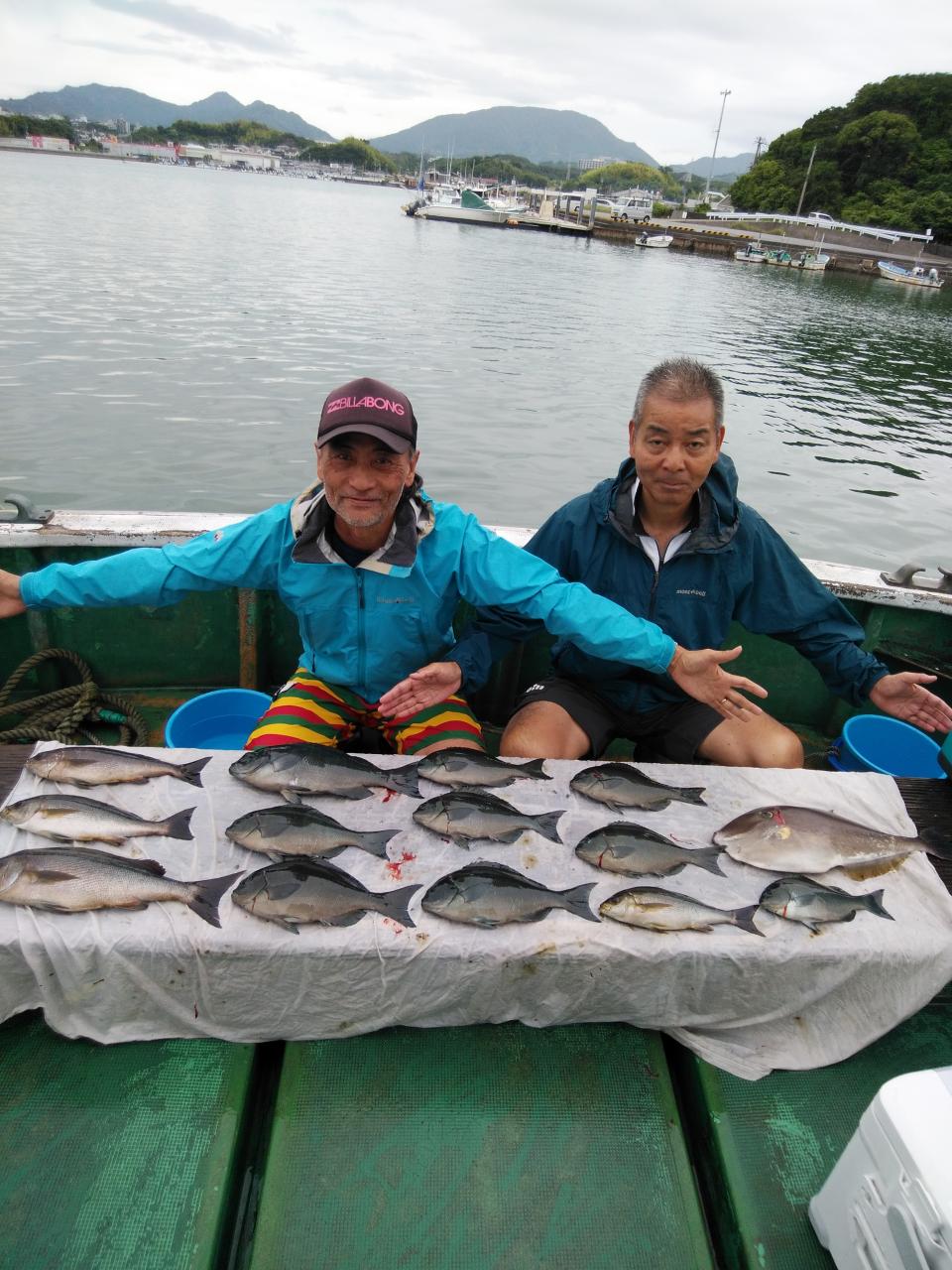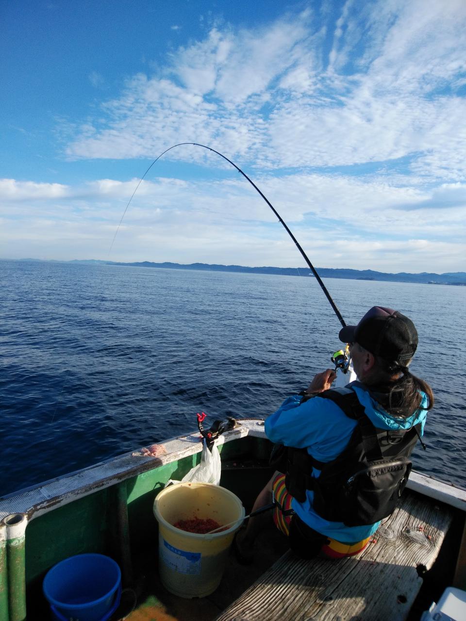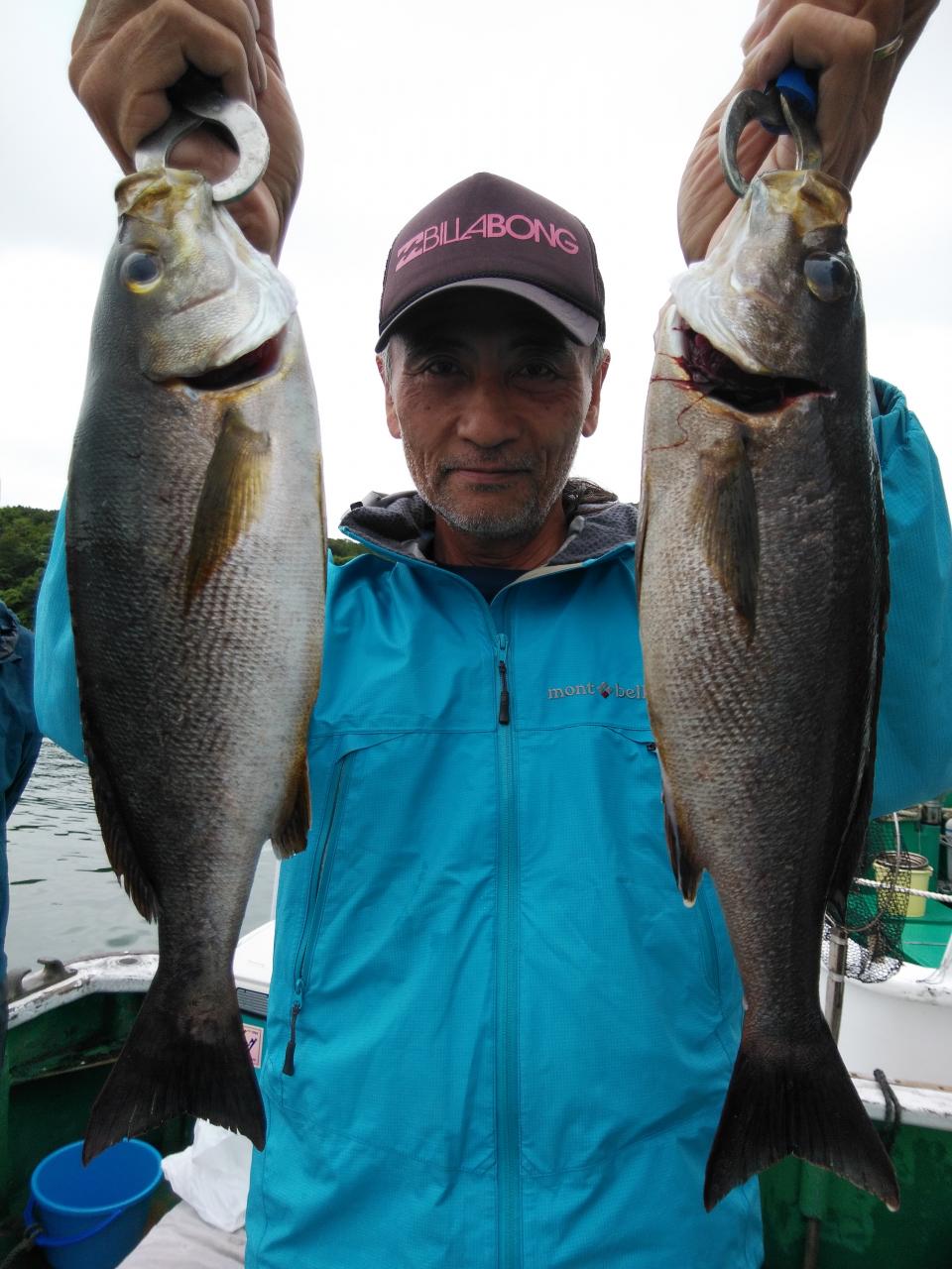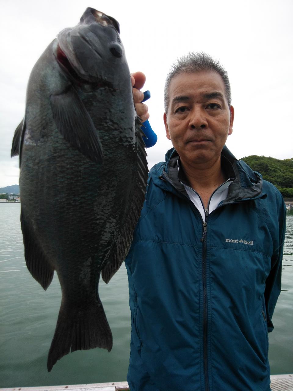 朝1番、北東の風で、沖出しの上り気のゆっくりとした潮でした。いきなり抱卵腹ボテ、イサギ44㎝今年最長寸が釣れました。その後ブチ切られが多く、ウスバハギ、55㎝等々3目釣れて良かったです。