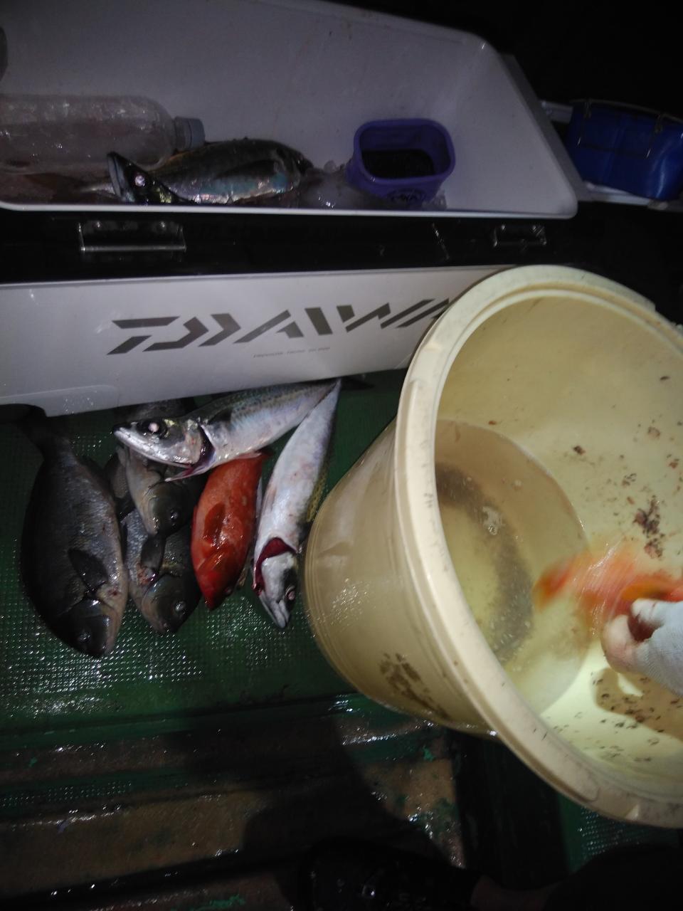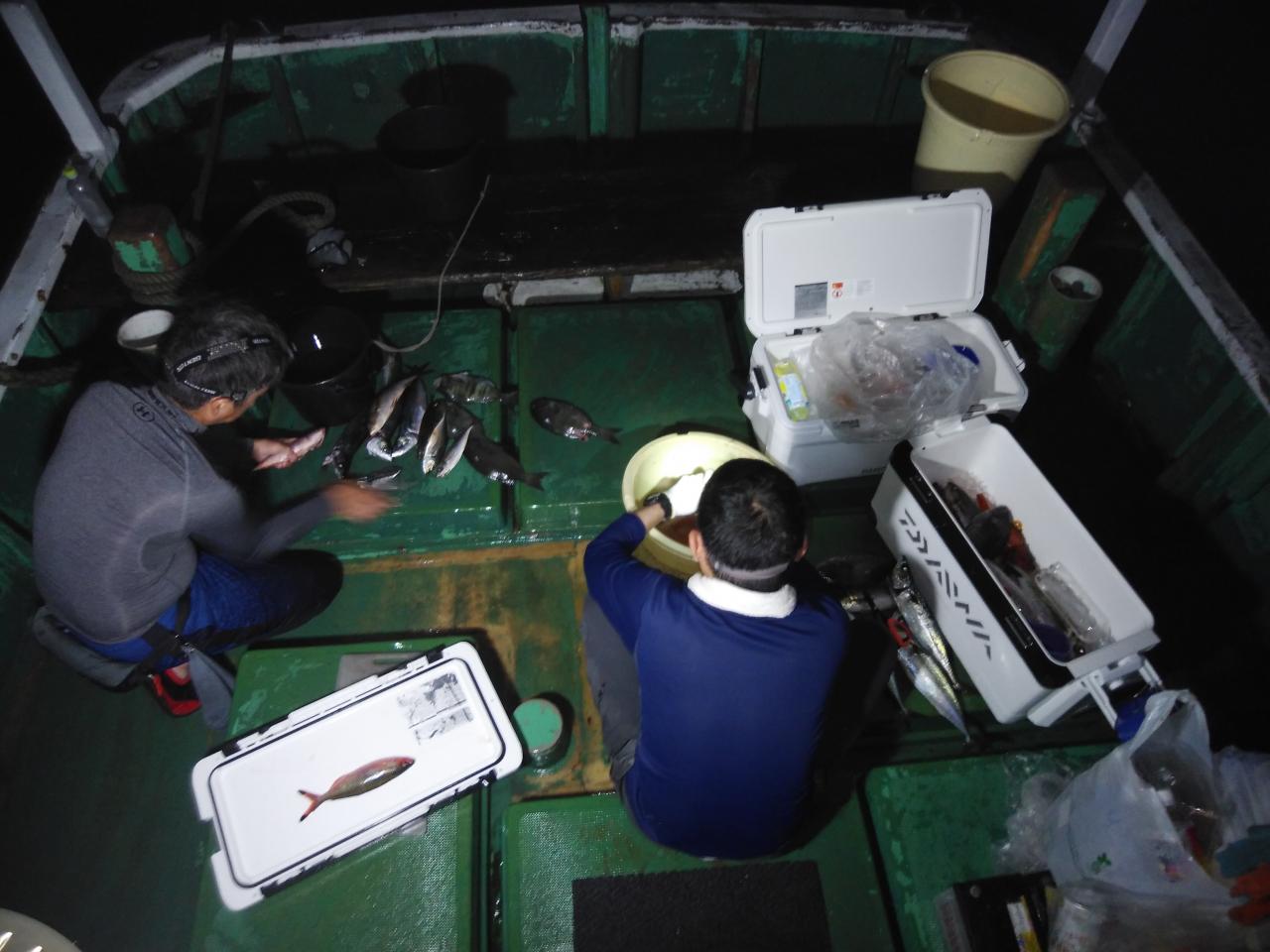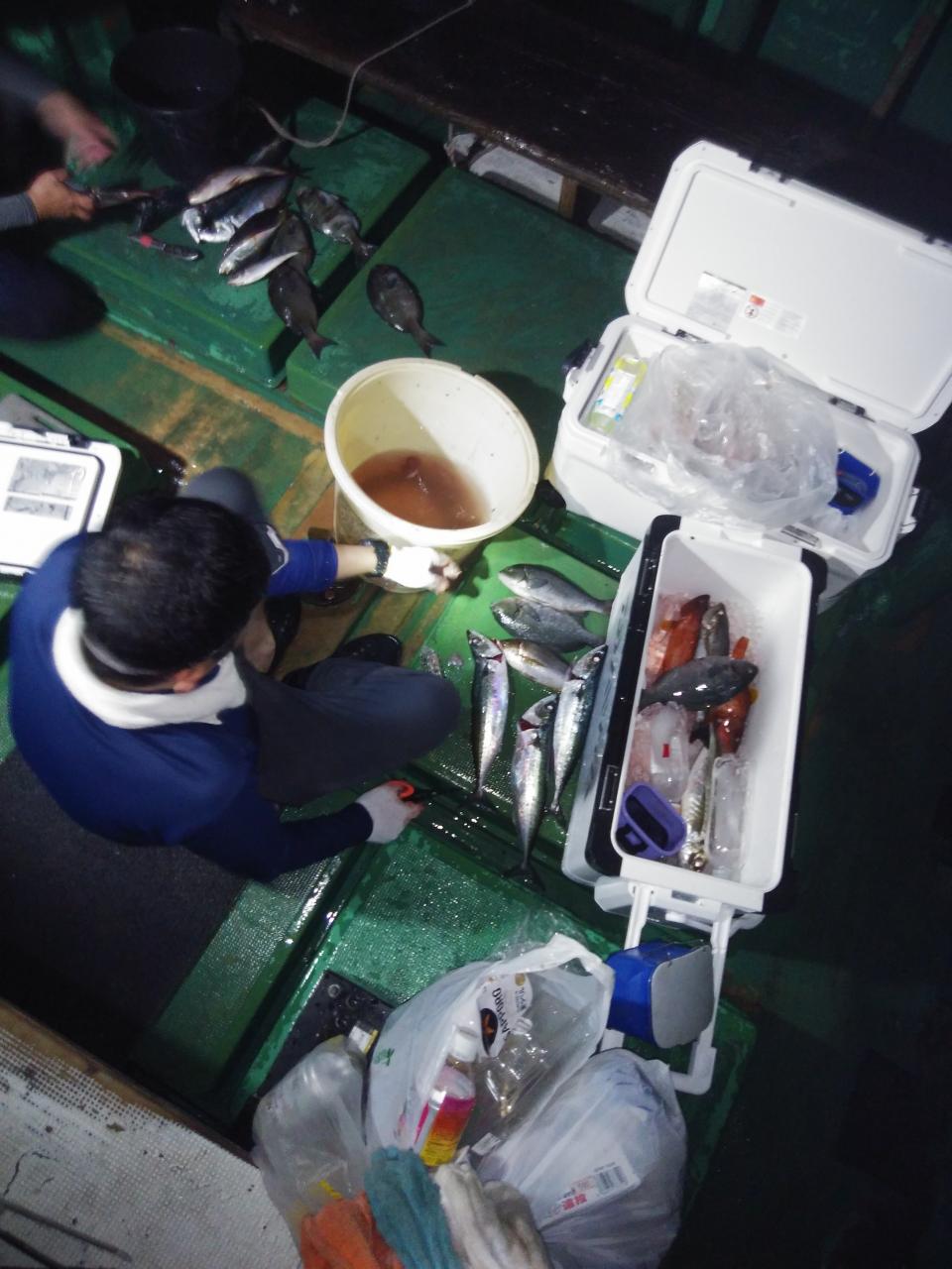 北西の風で、下り潮でした。今が旬の尾長グレ25匹釣れて先生方、大変喜んでくれて良かったです。帰港して料理しました。脂ノリノリでした。他に平アジも交じりで6目釣れて良かったです。