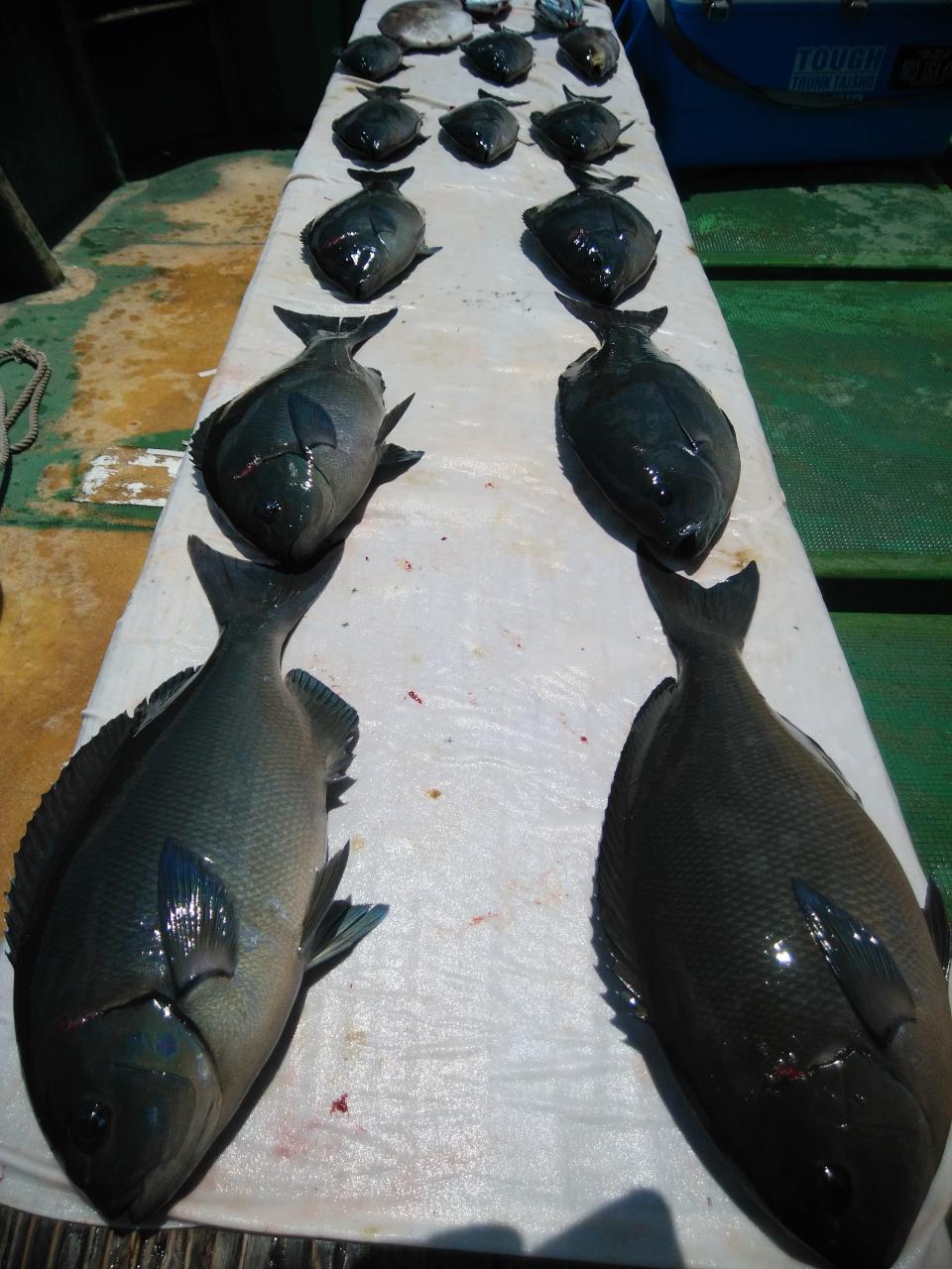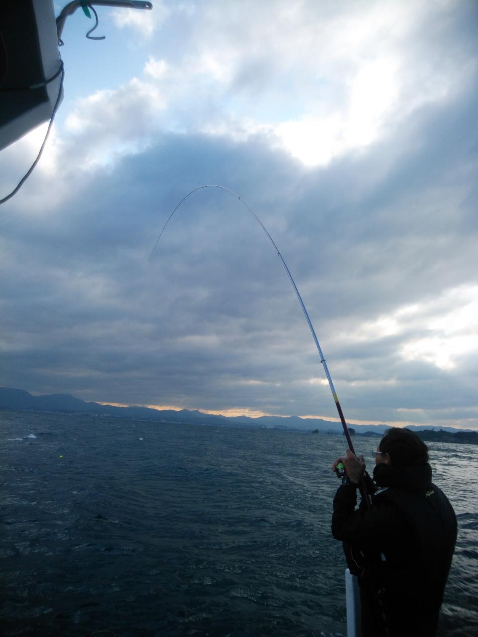 北西の風で、沖出しの下り気の潮でした。久留様、よく頑張ってくれて今が旬の尾長グレ、43㎝を頭に11枚とイサギ交じりで4目頑張ってくれて大変喜んでくれて良かったです。