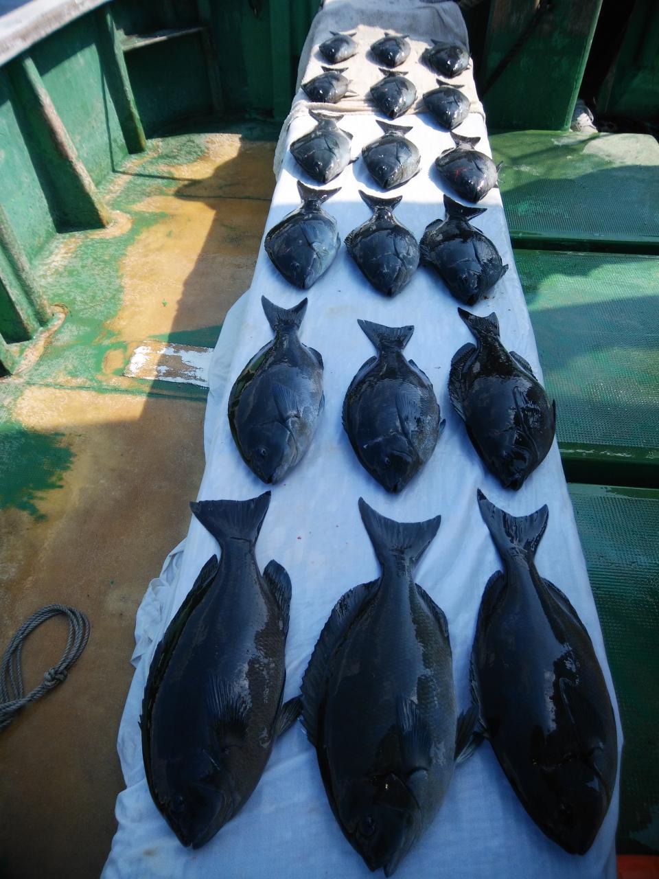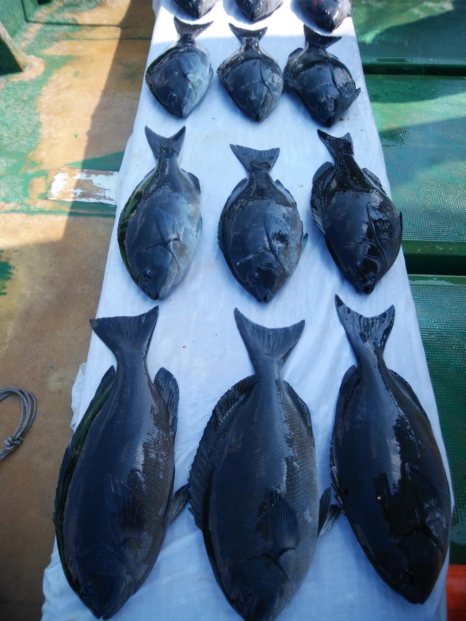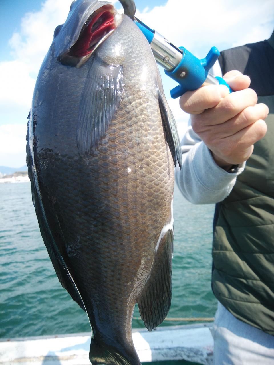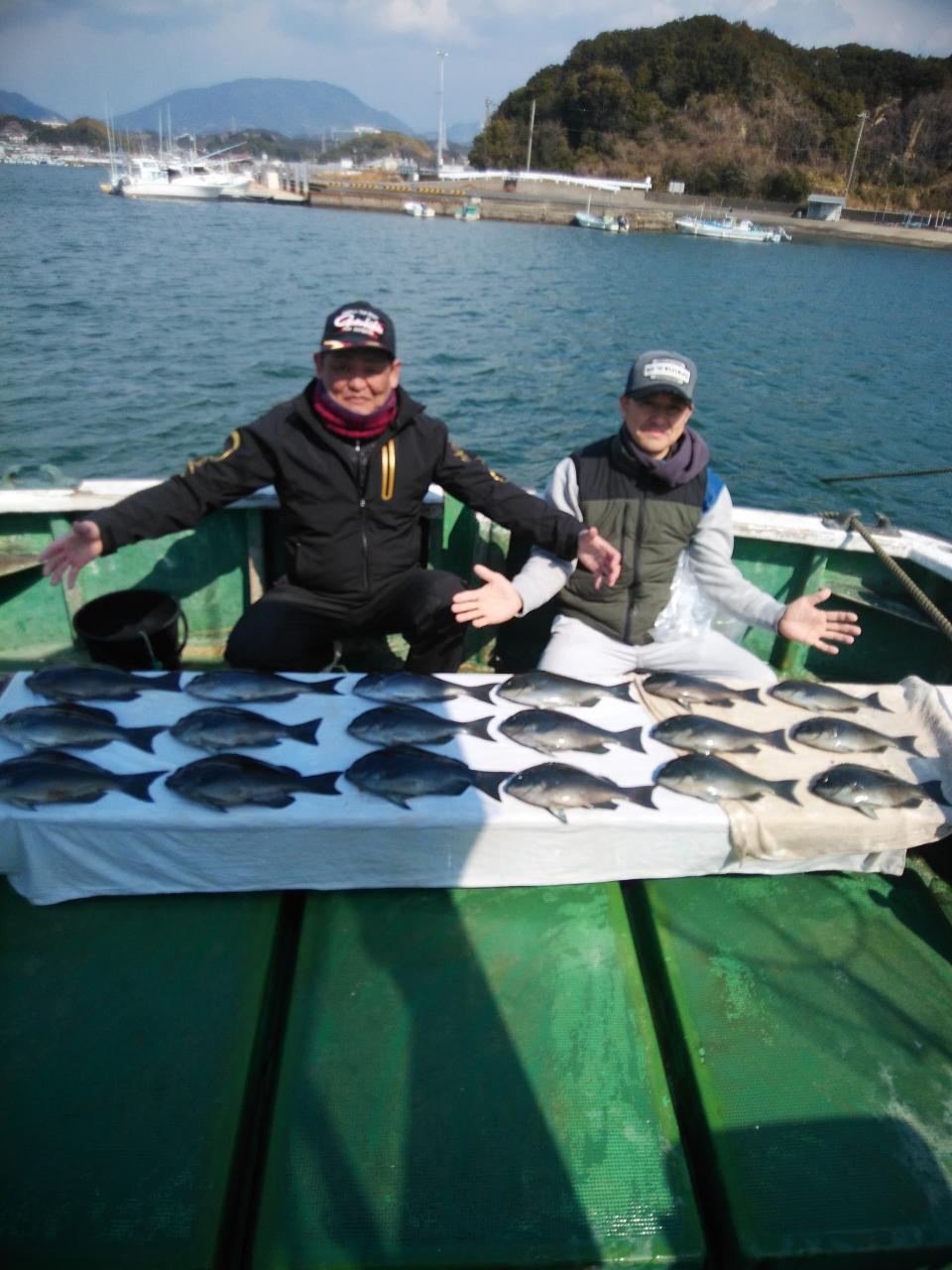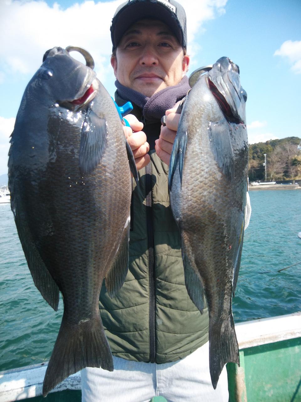 北西の風で、下り潮でした。船からのグレ釣りは、初めてのことでしたが頑張って釣ってくれました。針はずれやブチ切られなど数回ありましたが寒グレ、39㎝を頭に18枚の良い釣果で西浦様ら『良く釣れた』『良かった。。。』と大変喜んでくれて良かったです。