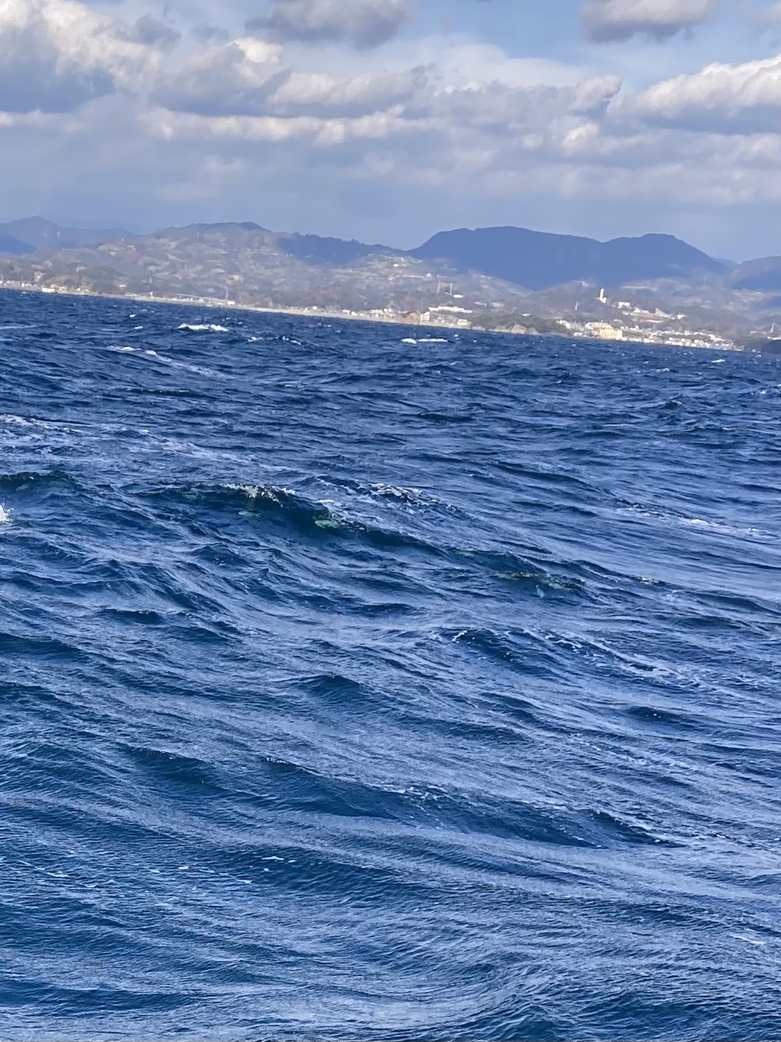 船がシャクシに着き、投錨前に潮の流れを感覚的に得るため、船を流すと岡に入るような感じ。風向は北北西と風の強さも程よい感じでしたが、仕掛けを投入すると強烈なってぐらい岡入れの潮で悪いコンディションでした。