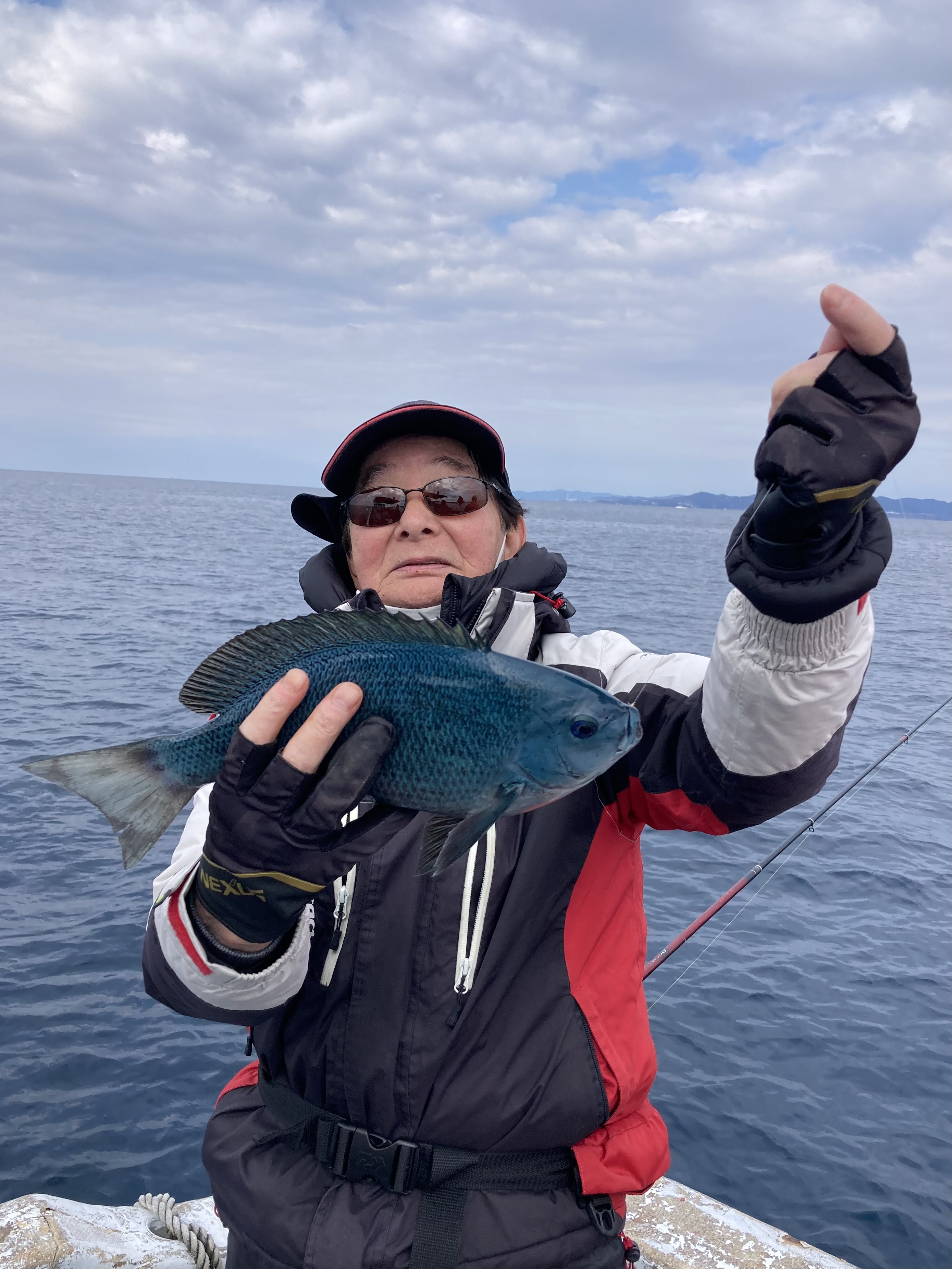 ウキを棒ウキにしてサルカンの上に鉛とハリスにガン玉と、仕掛けが早く馴染む段シズ状態で、2ヒロ半(岡入れ潮)〜5ヒロ(岡入れ潮)〜8ヒロ(入れ上り潮)といろいろ探りながら狙い、頑張って釣ってくれました。