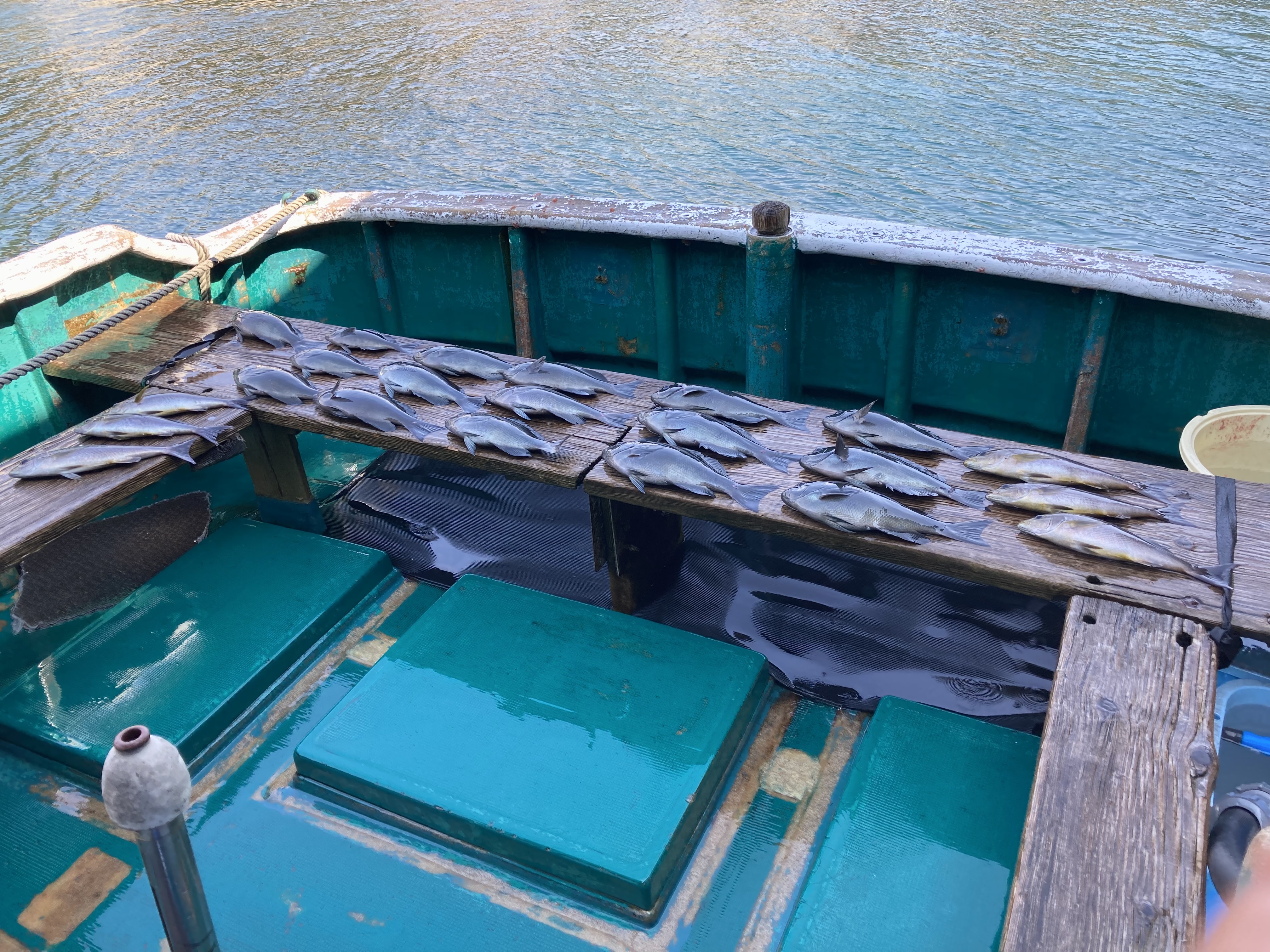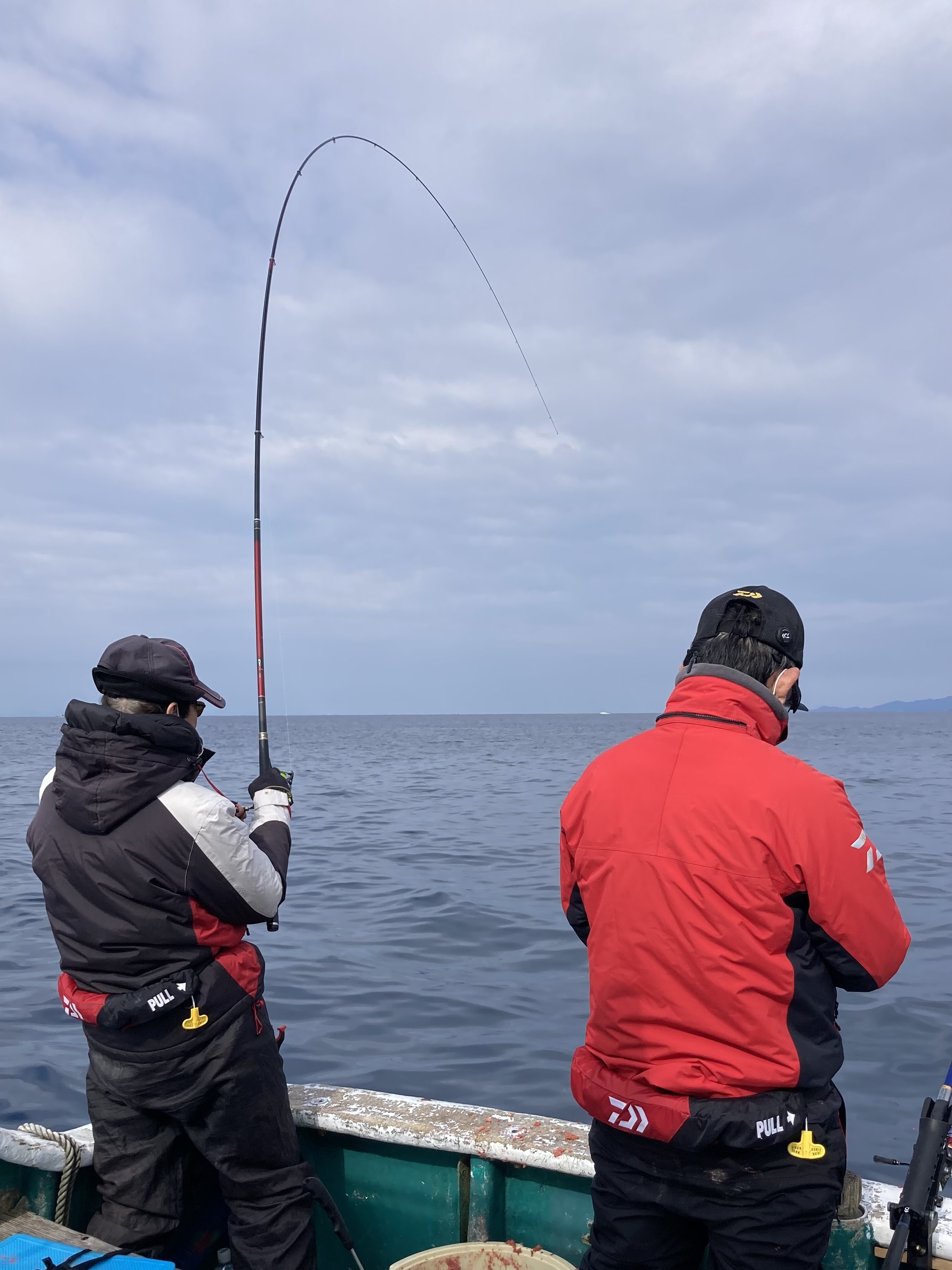 重たい仕掛けで船から離すよう仕掛けを遠投して、早く沈んで馴染むのが良かった感じでした。お疲れさまでした。