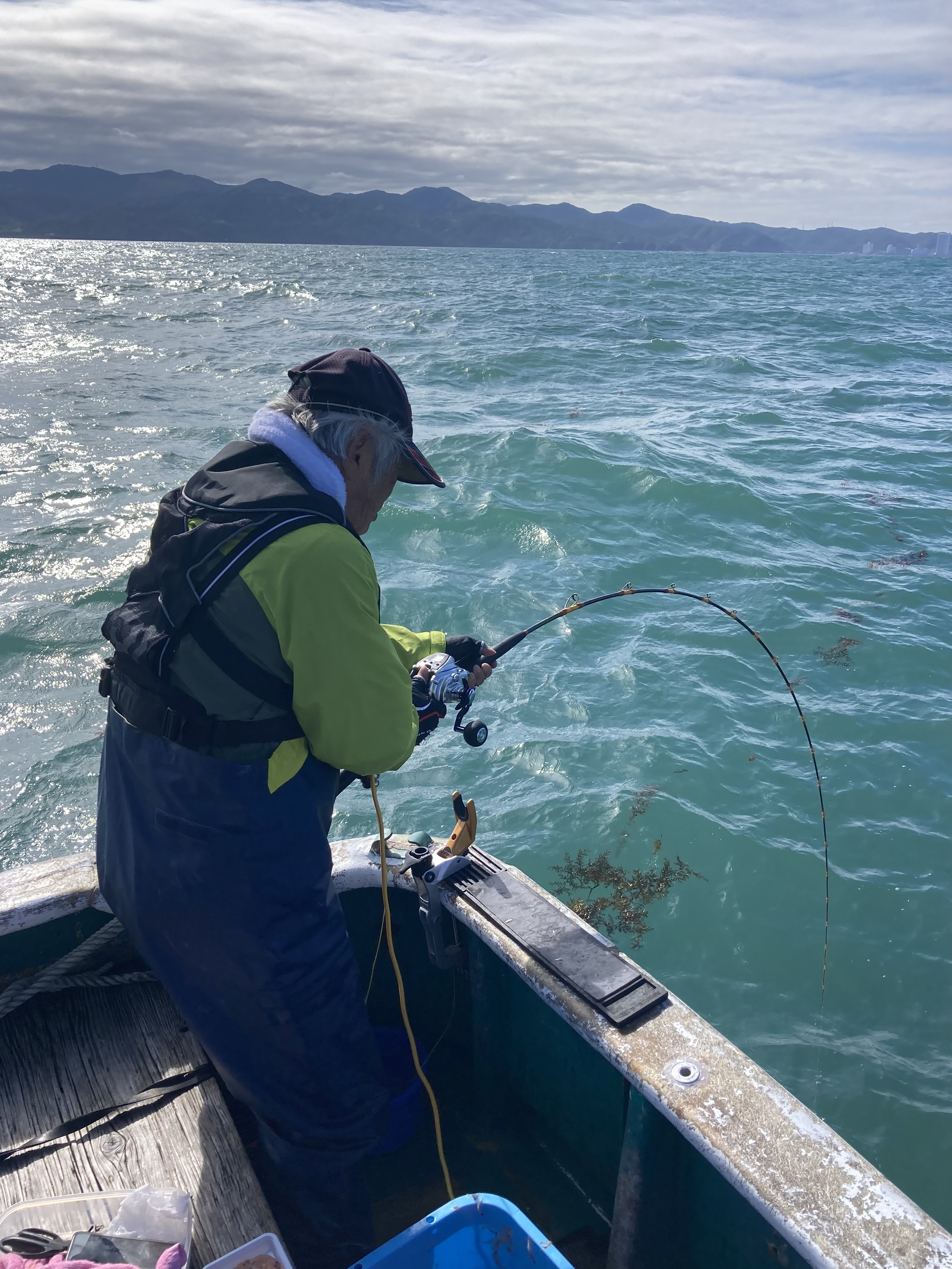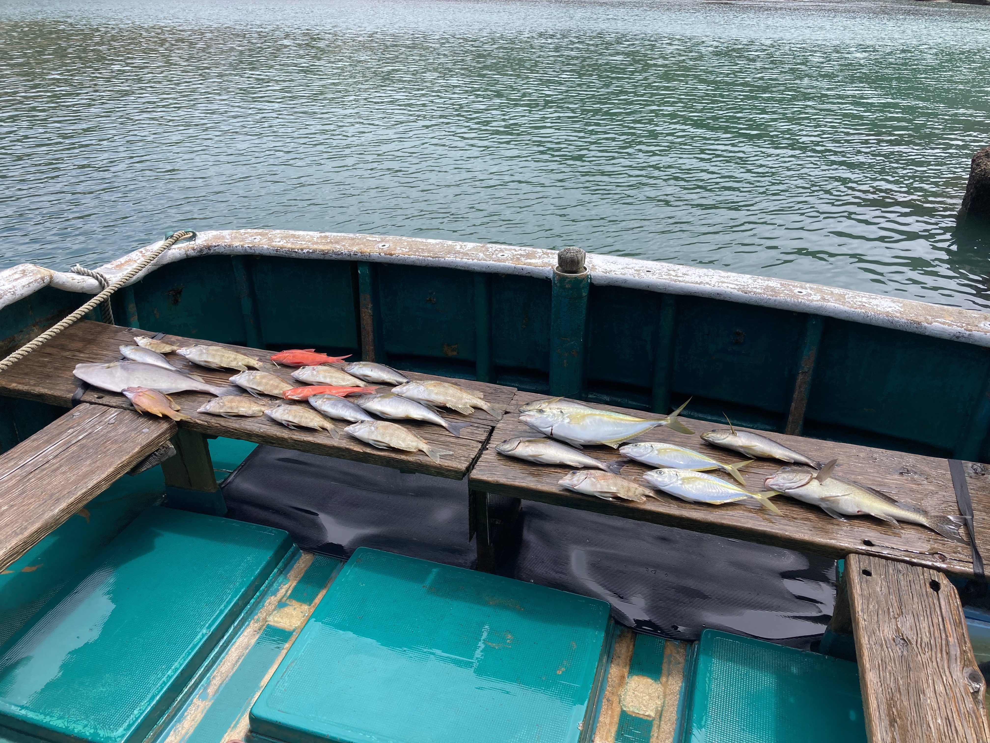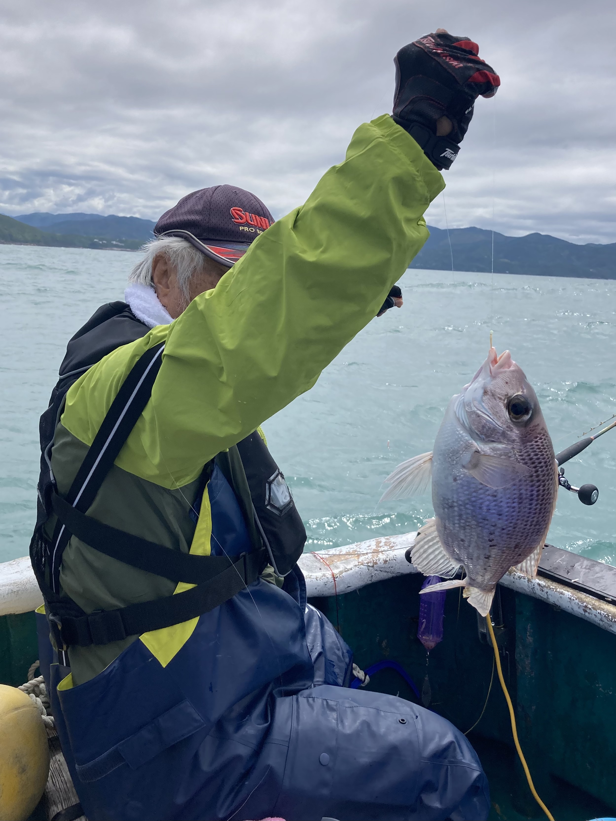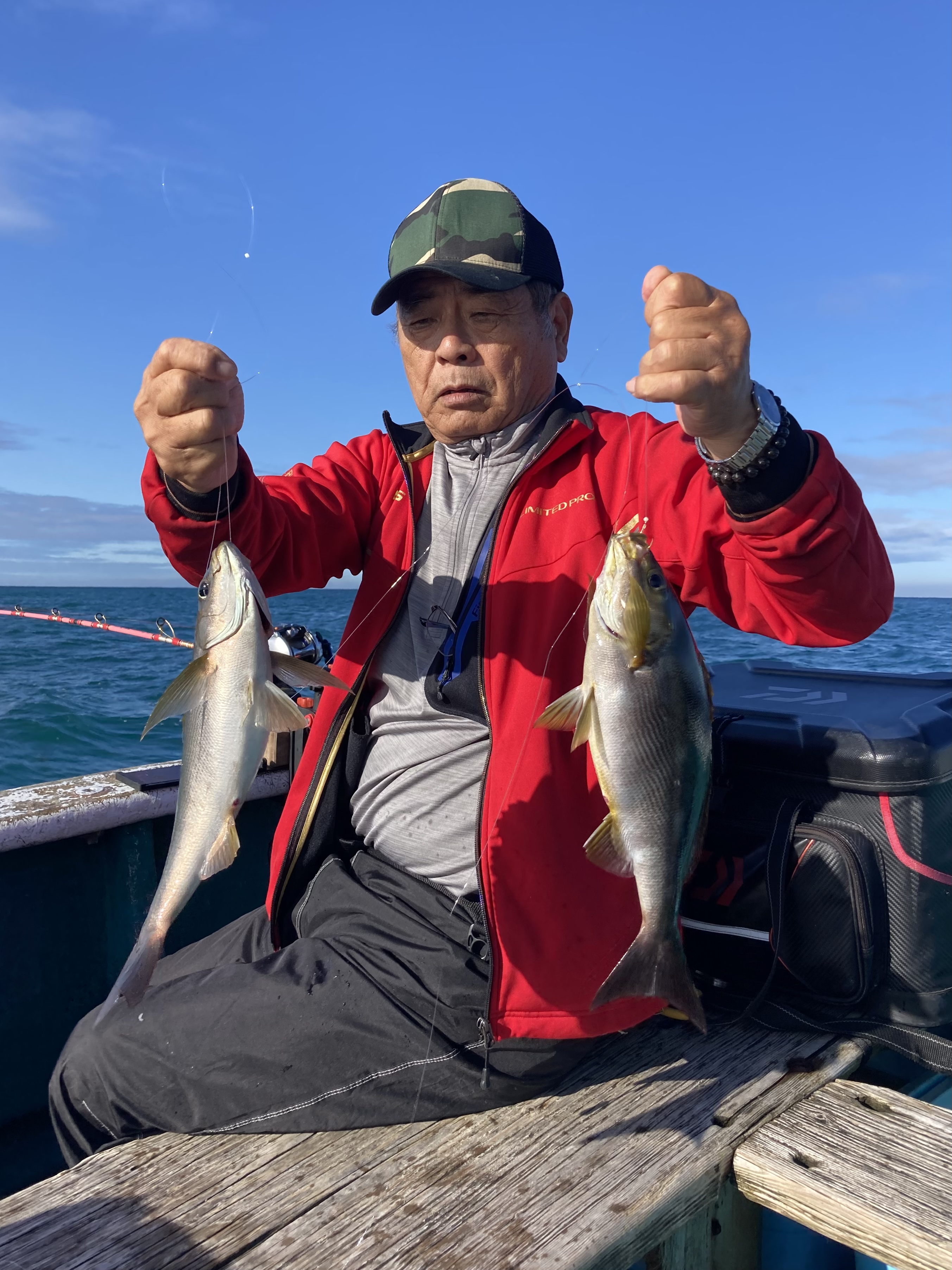 移動後はメイチダイが多く、シマアジの48cmも上がりました。暫くすると潮の流れが上り潮になり後半はローリングが大きく、釣り辛い状況でした。