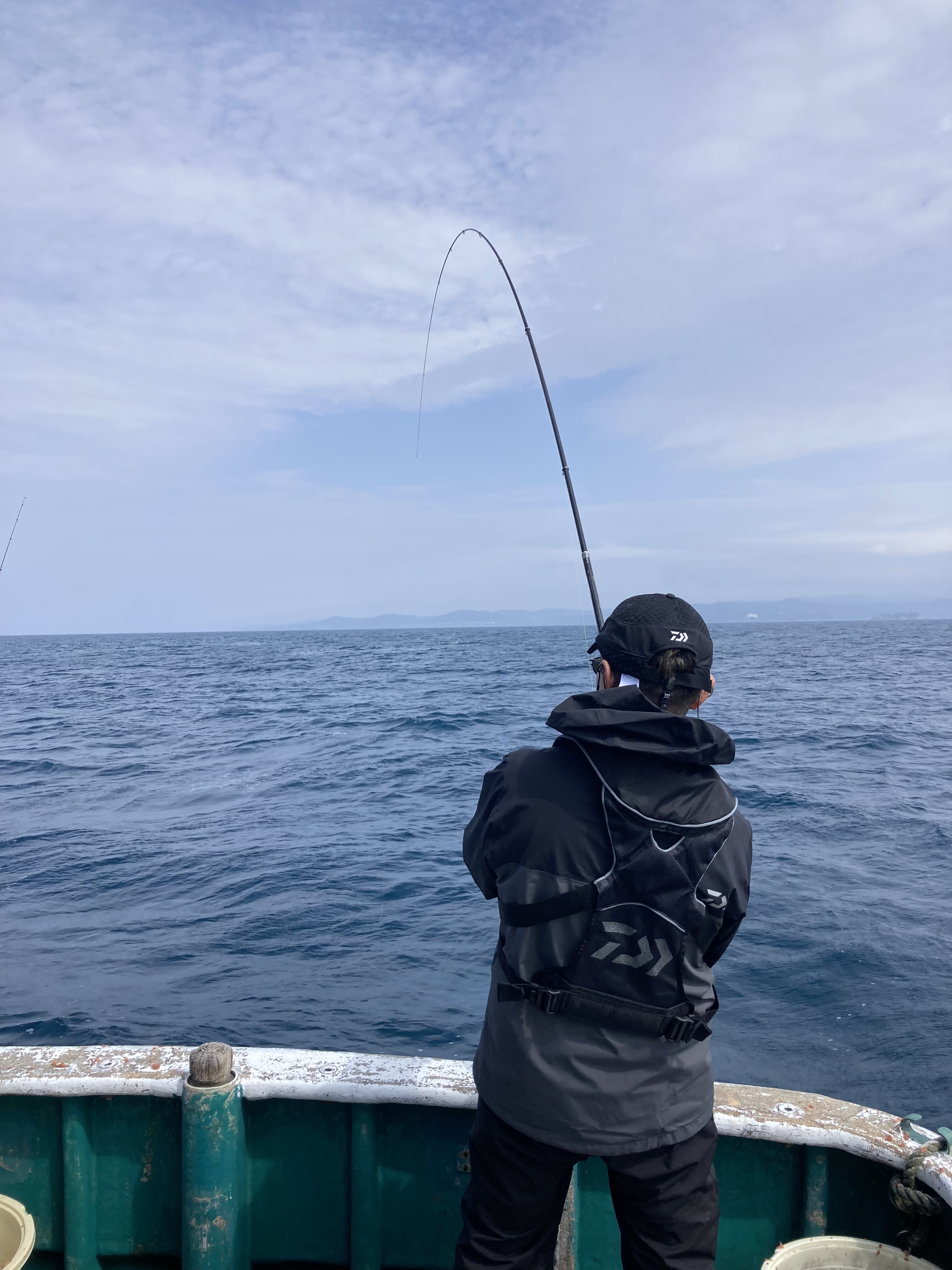 上り潮になり錨を打ちかえ釣っていると、居着いてる小ぶりのメジロが喰いつきましたが、あともうすこしで海面に上がらずでした。その後はグレもgetできましたが、青物が撒き餌に近寄りグレを追い出すのかわかりませんが、連続したアタリは続かずでした。