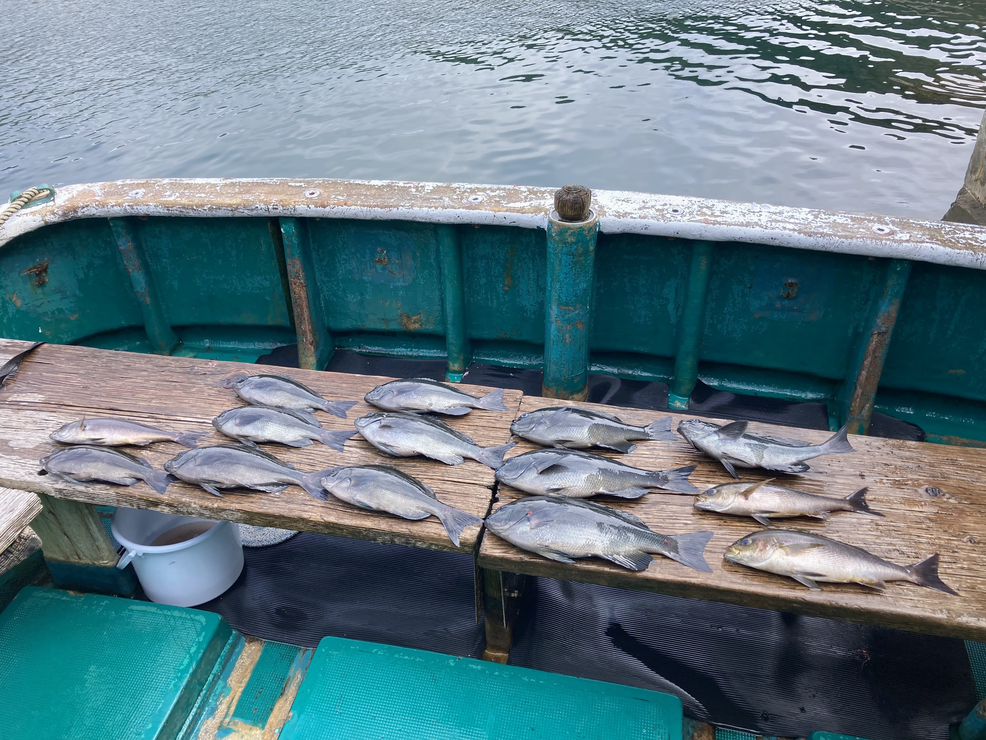 きょうは海面が穏やかでしたが、潮の流れがコロコロ変わり、船尾の向きもコロコロと、仕掛けもあっちこっちと流れて行きましたが、喰いは良くたくさん釣れて良かったです。