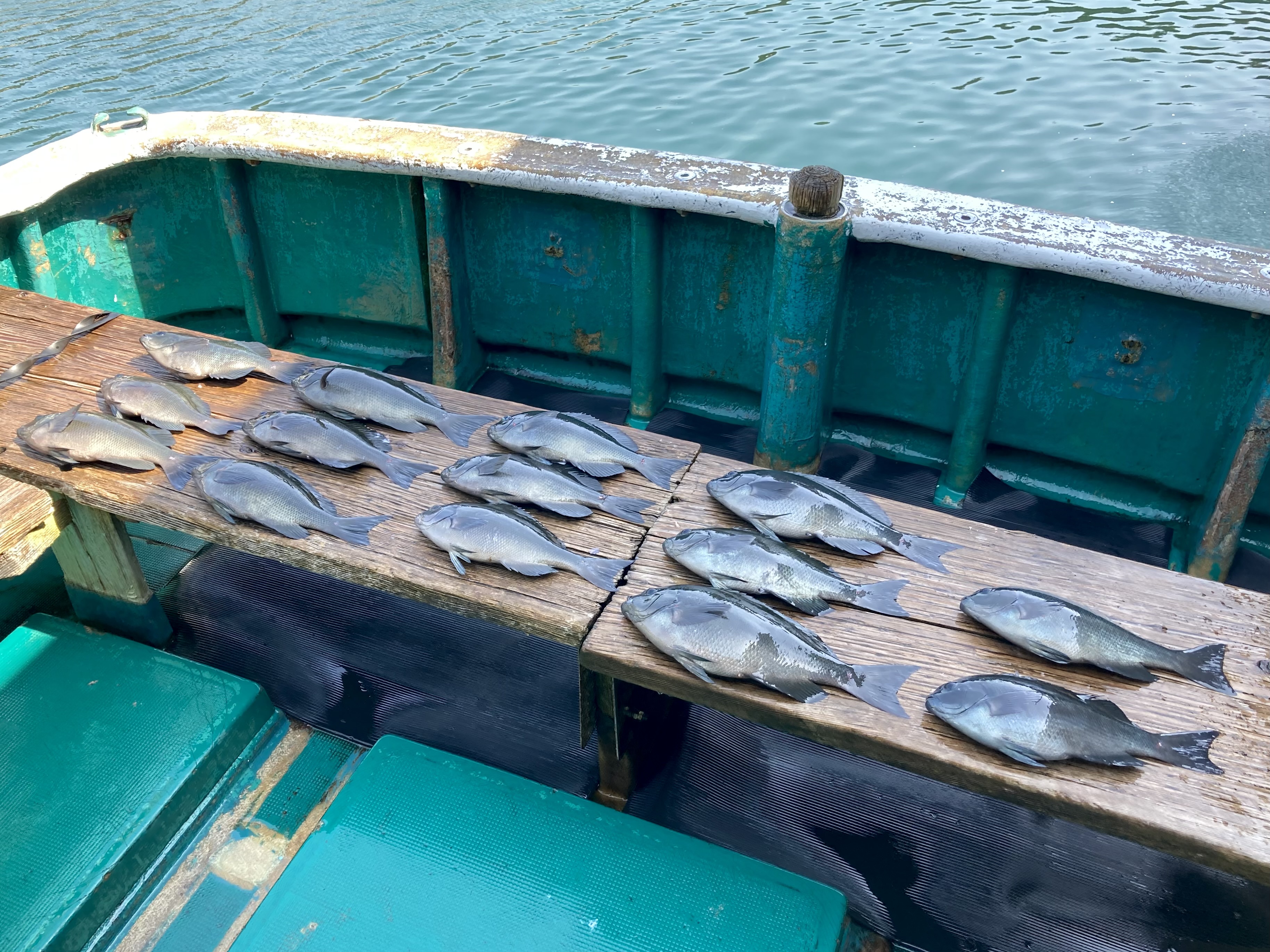 潮は止まっていたので、どうかな?とは思いましたが、早くから喰いも良くグレが上がり出しました。途中、風が強く吹いてきて西寄りの風になりましたが、ポツポツと上がりました。風向きや潮の流れる方向が安定していたら、もっと釣果は上がった感じでした。お疲れさまでした。またよろしくお願いいたします。