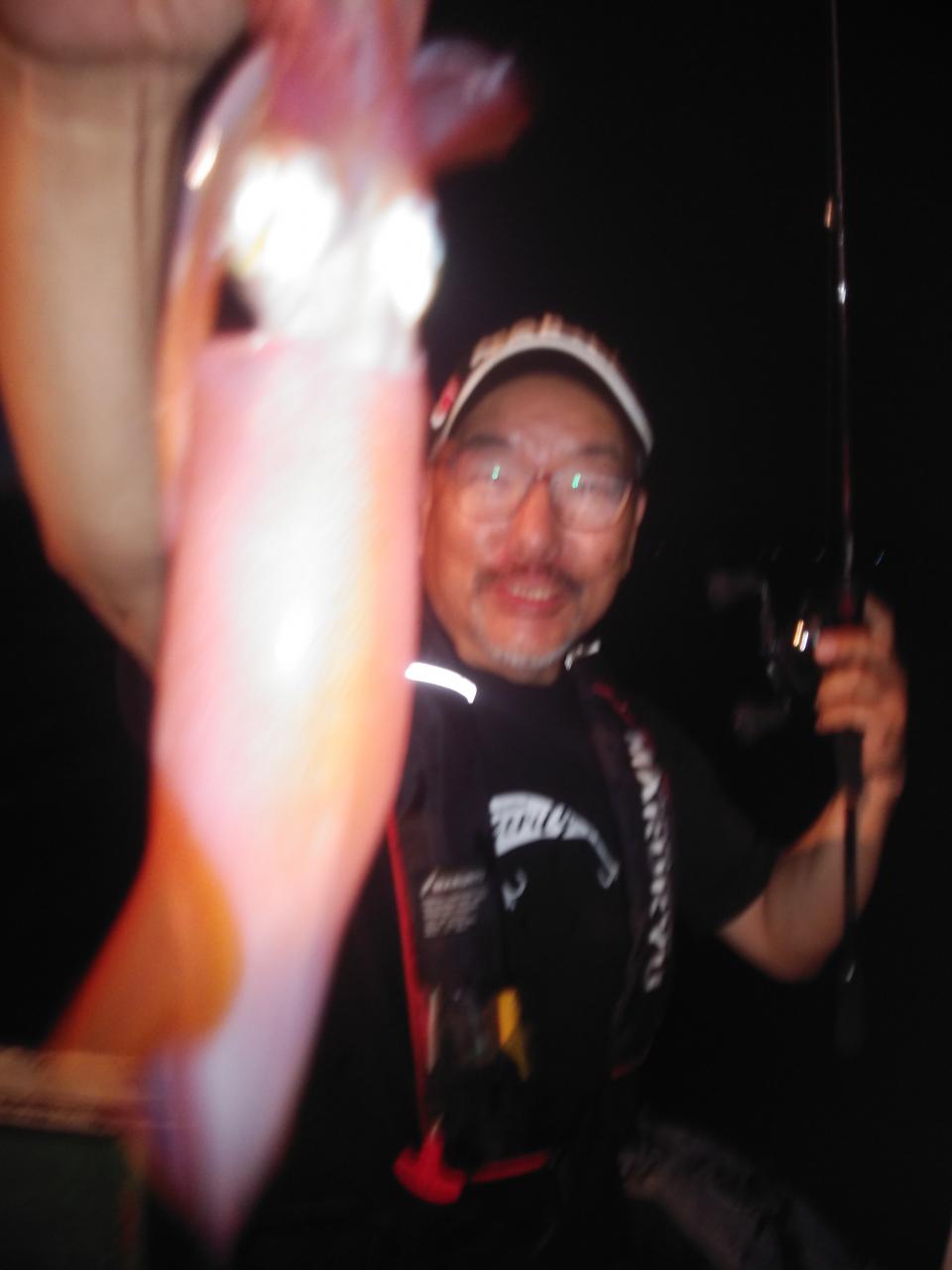 7月28日の釣果です。夜釣りのアカイカ釣りです。白浜沖で、天候は、晴れ。潮流、上り潮。水温、26、8度、波の高さ、50cm。